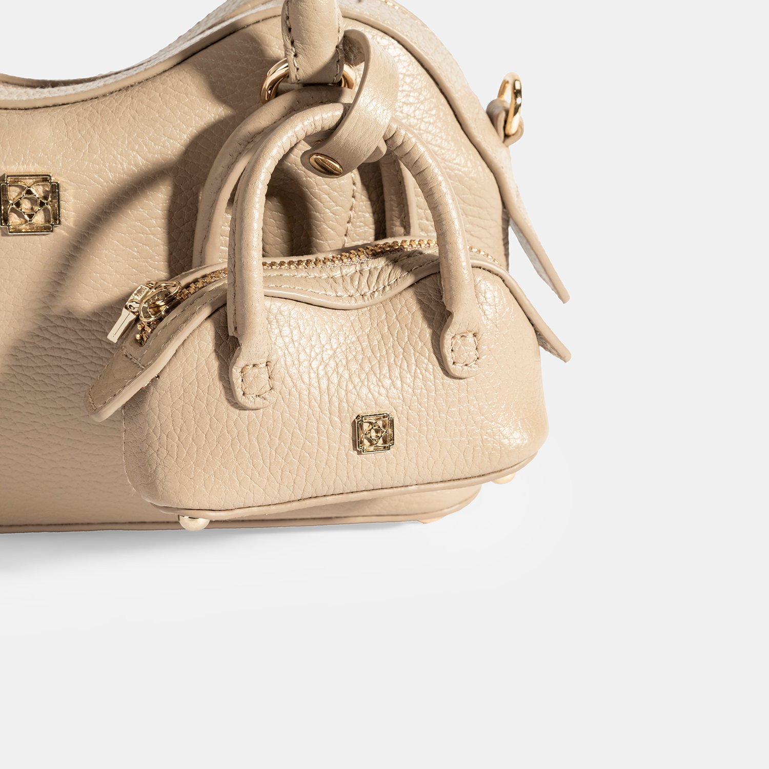 Kadın Vizon Deri Çanta Aksesuarlı Mini El Çantası