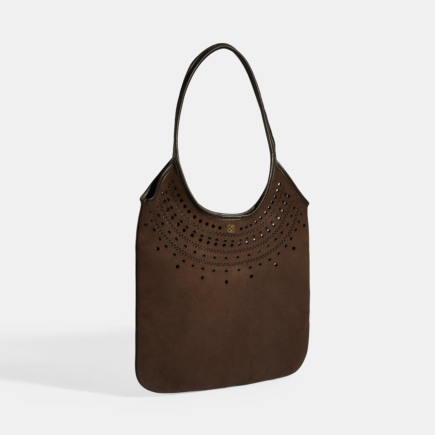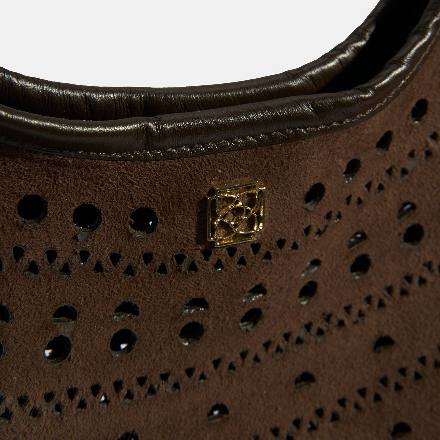Kadın Kahve Perforeli Süet Omuz Çantası