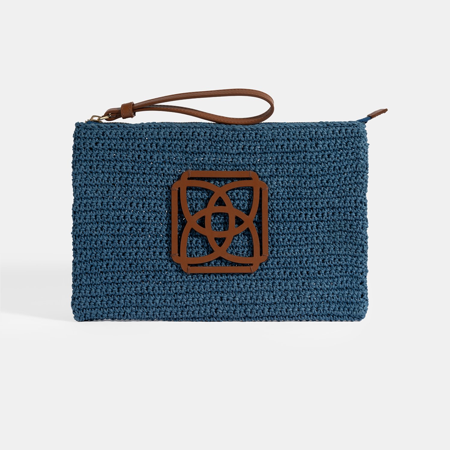 Kadın Mavi Monogram Logolu Hasır El Çantası