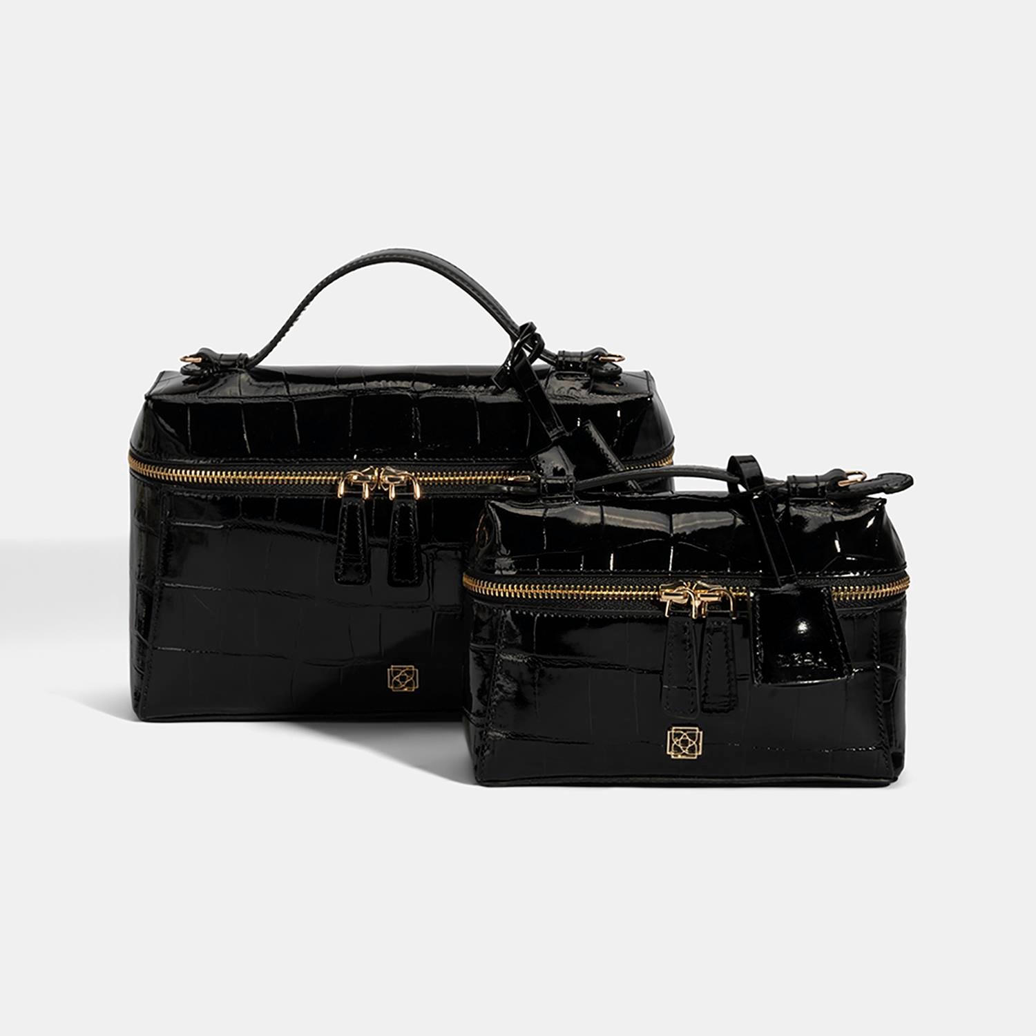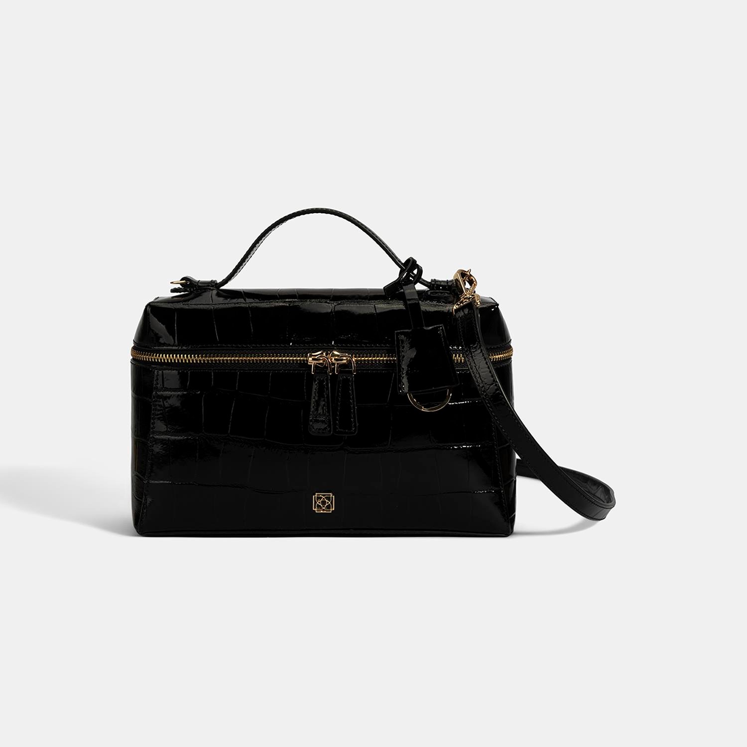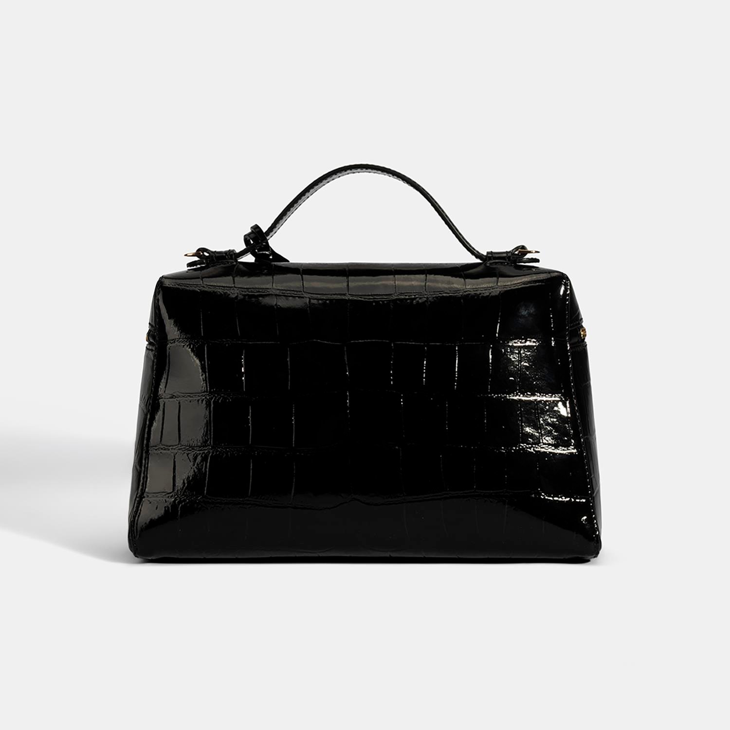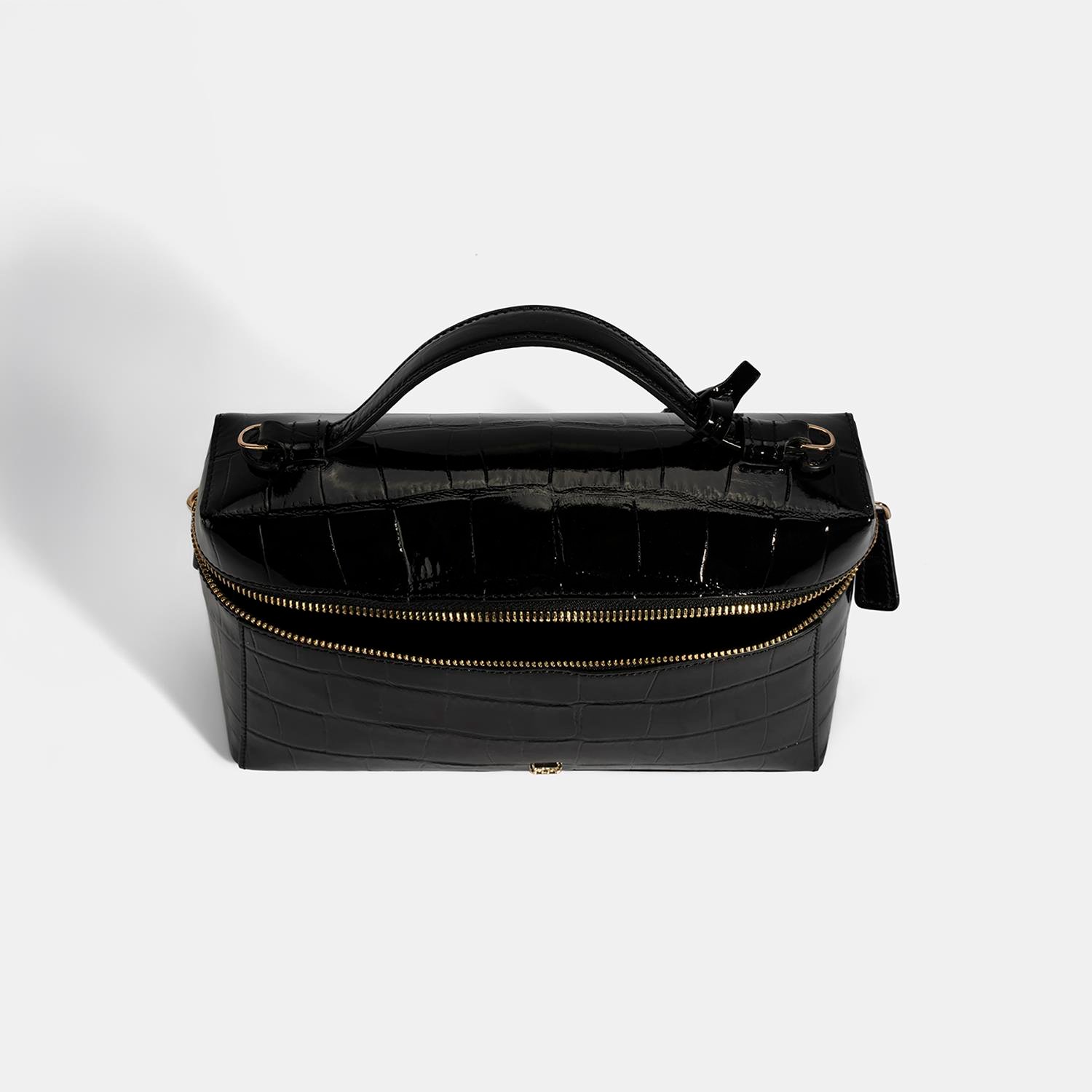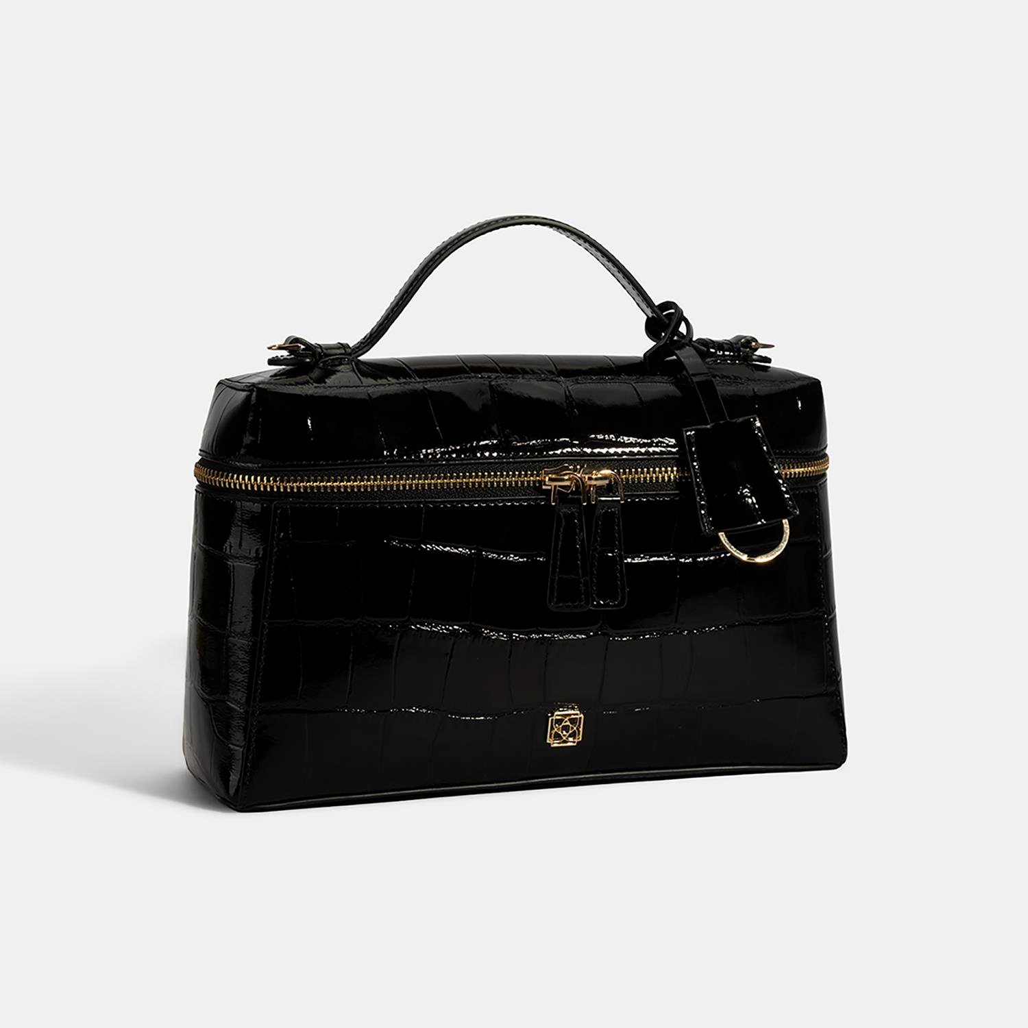 Kadın Siyah Kroko Baskılı Rugan Deri El Çantası