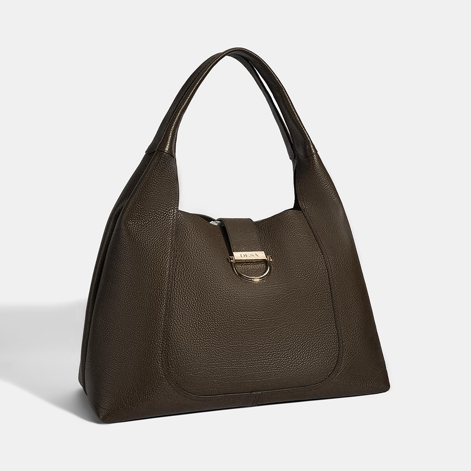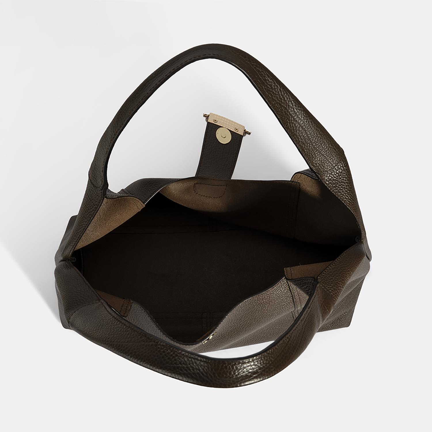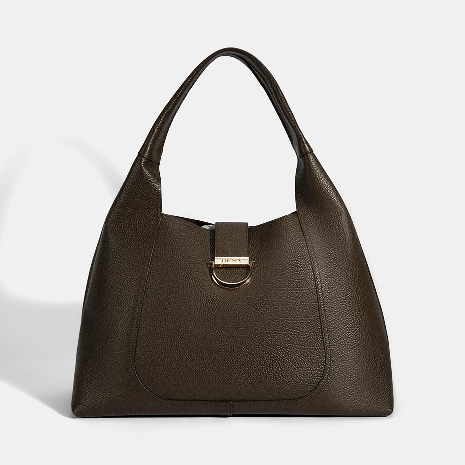 Hobo bag tarzında tasarlanmıştır. Ön ve arka gövdede yer alan U formundaki parçalar, çantaya form ve hacim kazandırırken bu parçaları birleştirmek için atılan makine dikişi, kavisli hatlarıyla dekoratif bir etki katar.