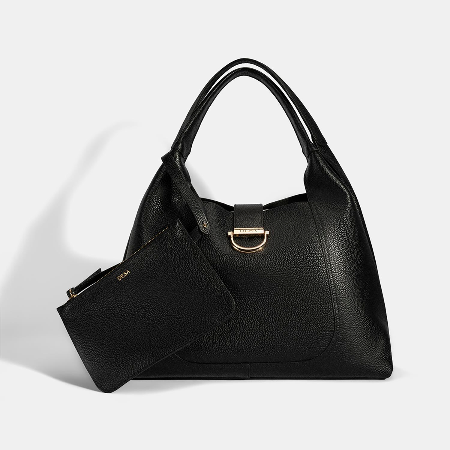 Kadın Siyah Cüzdan Aksesuarlı Deri Omuz Çantası
