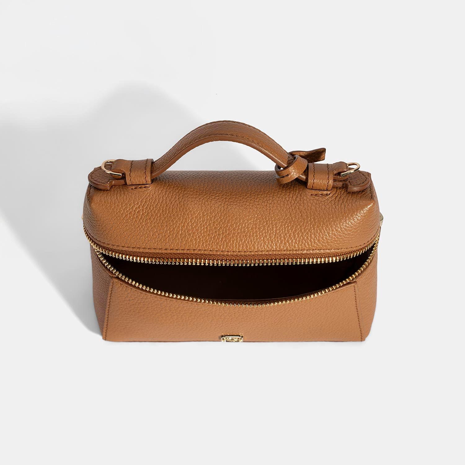 Deriden üretilmiş, kompakt bir kadın el ve omuz çantasıdır.