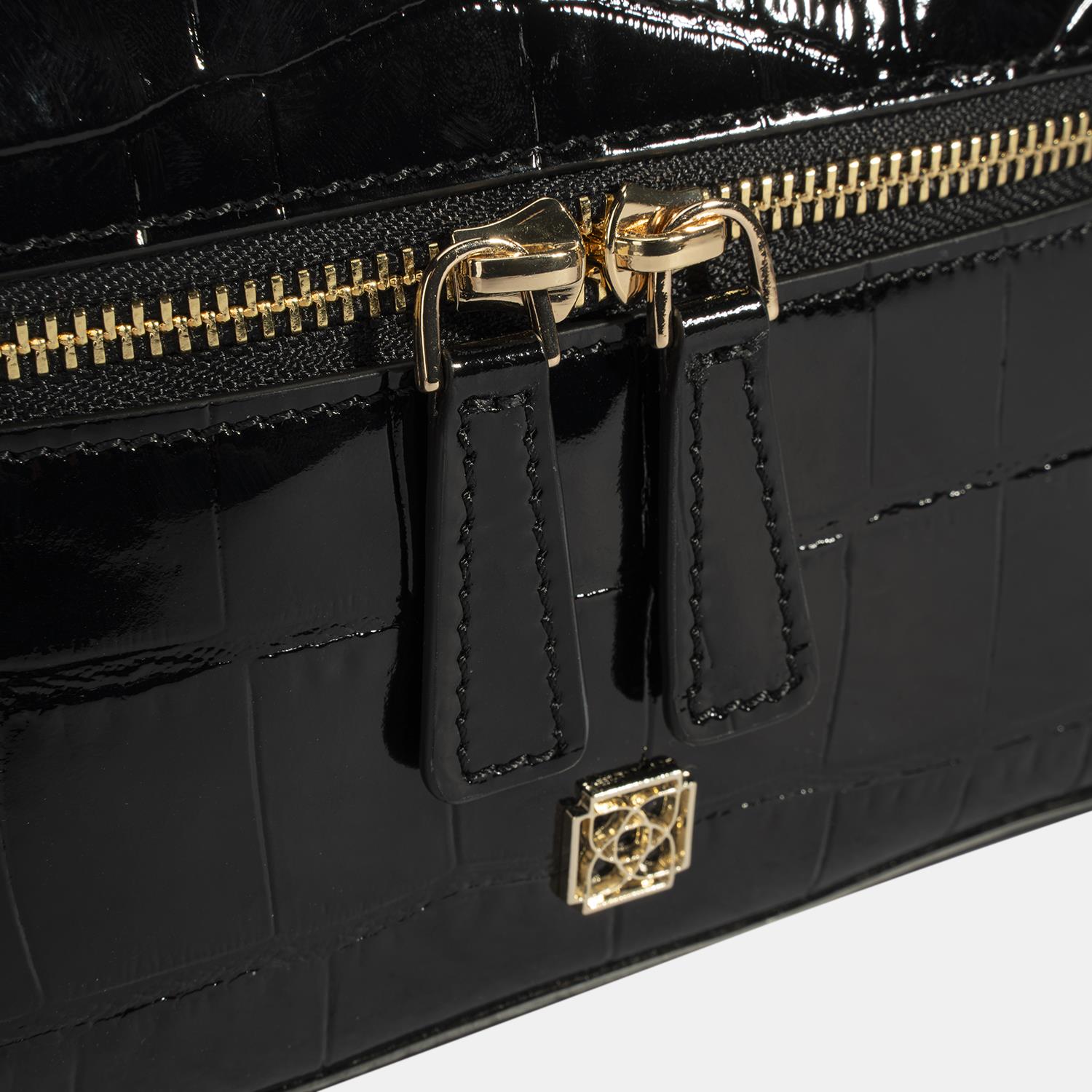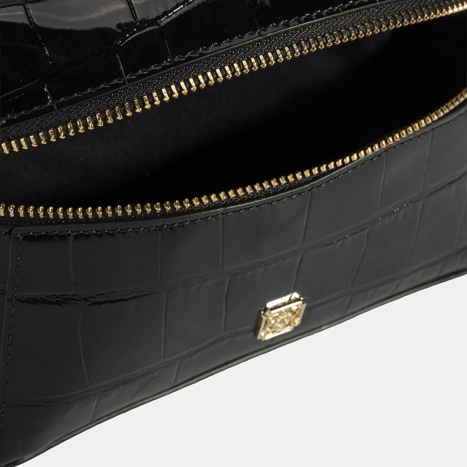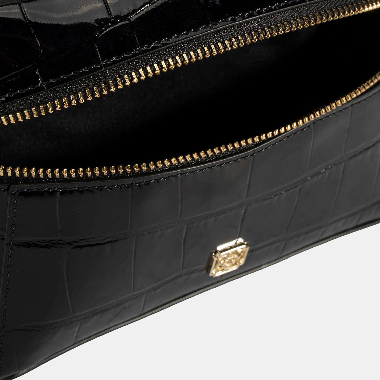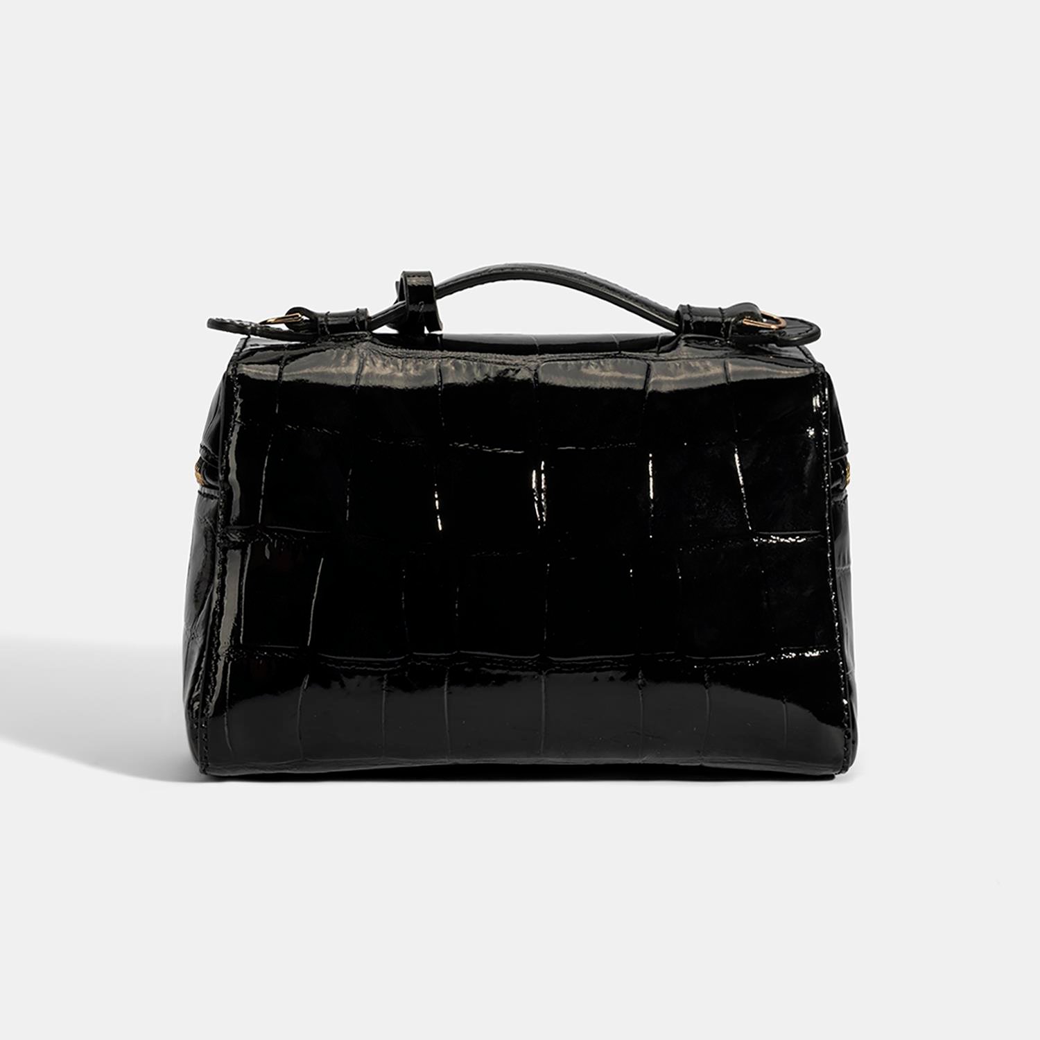 Kadın Siyah Kroko Baskılı Mini Deri El Çantası
