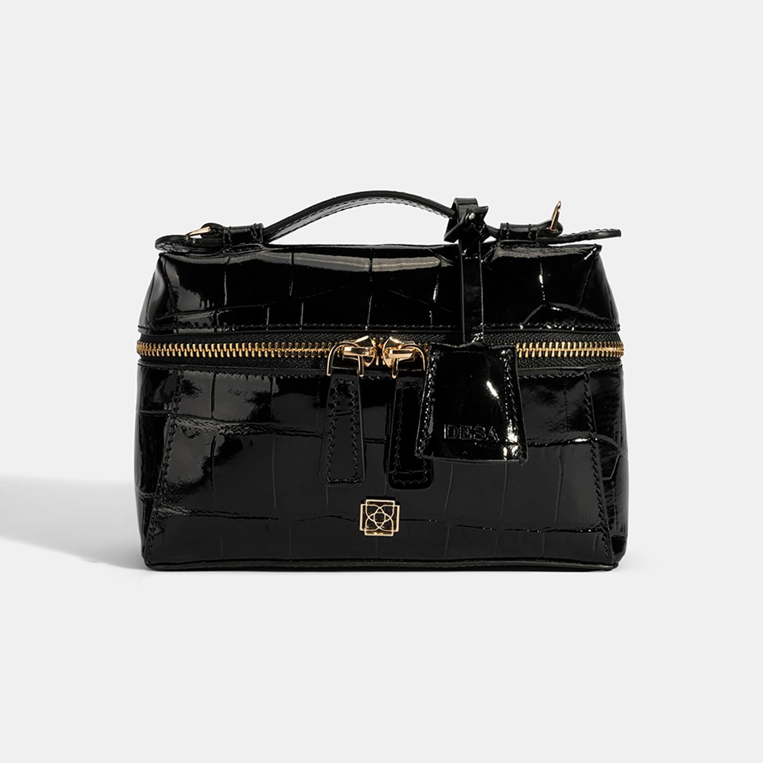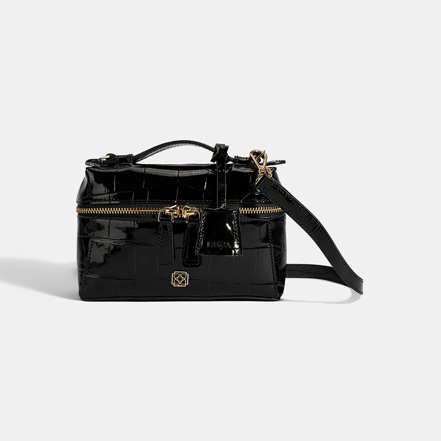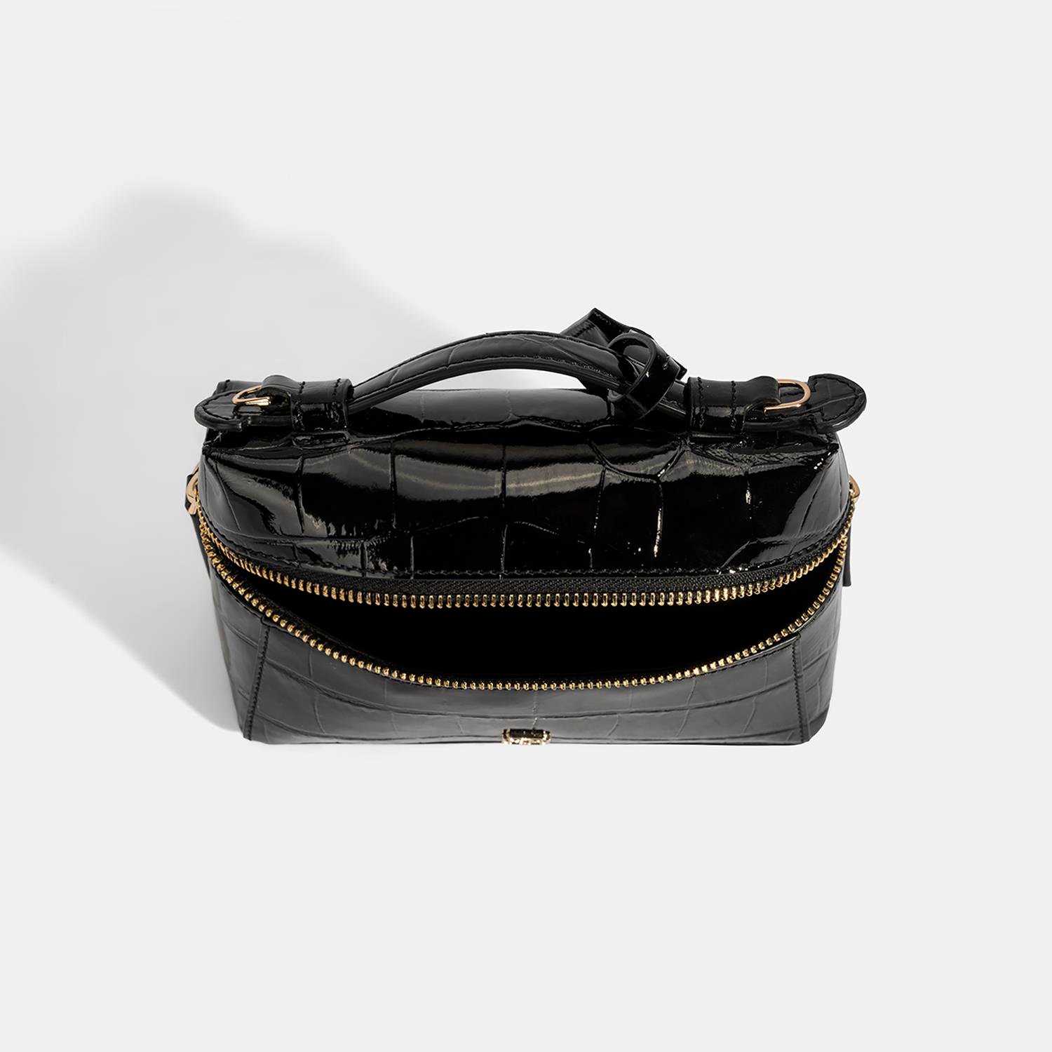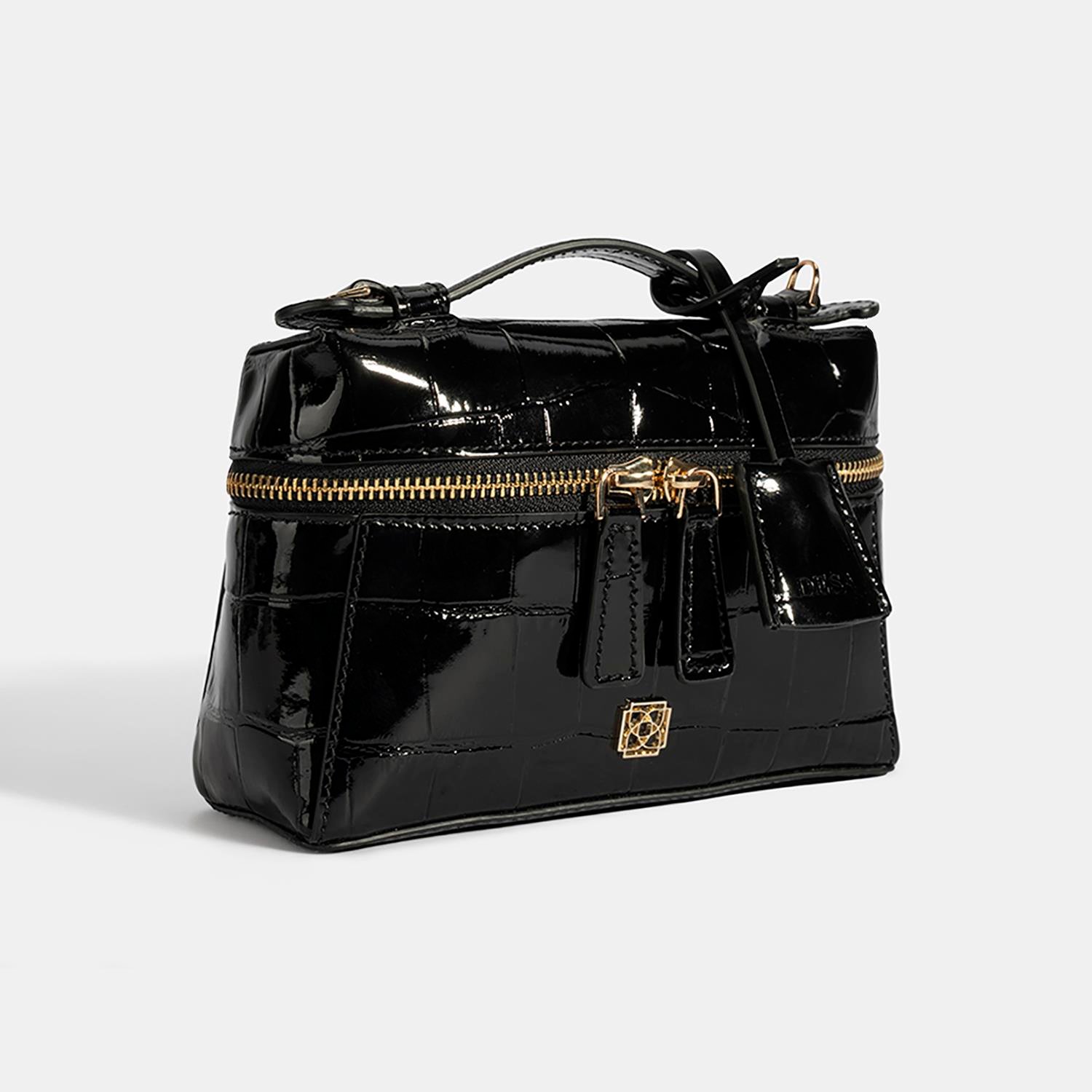 Kadın Siyah Kroko Baskılı Mini Deri El Çantası