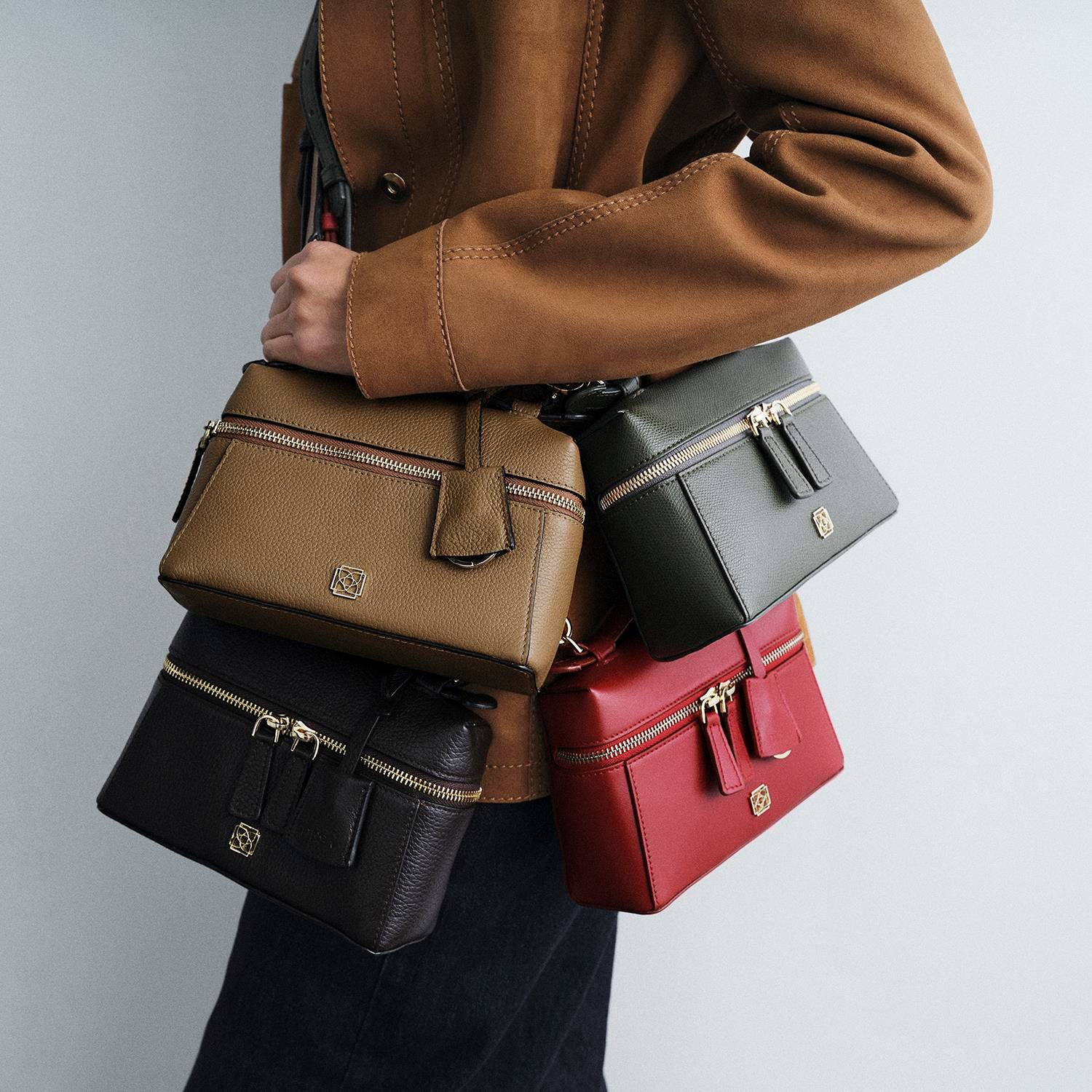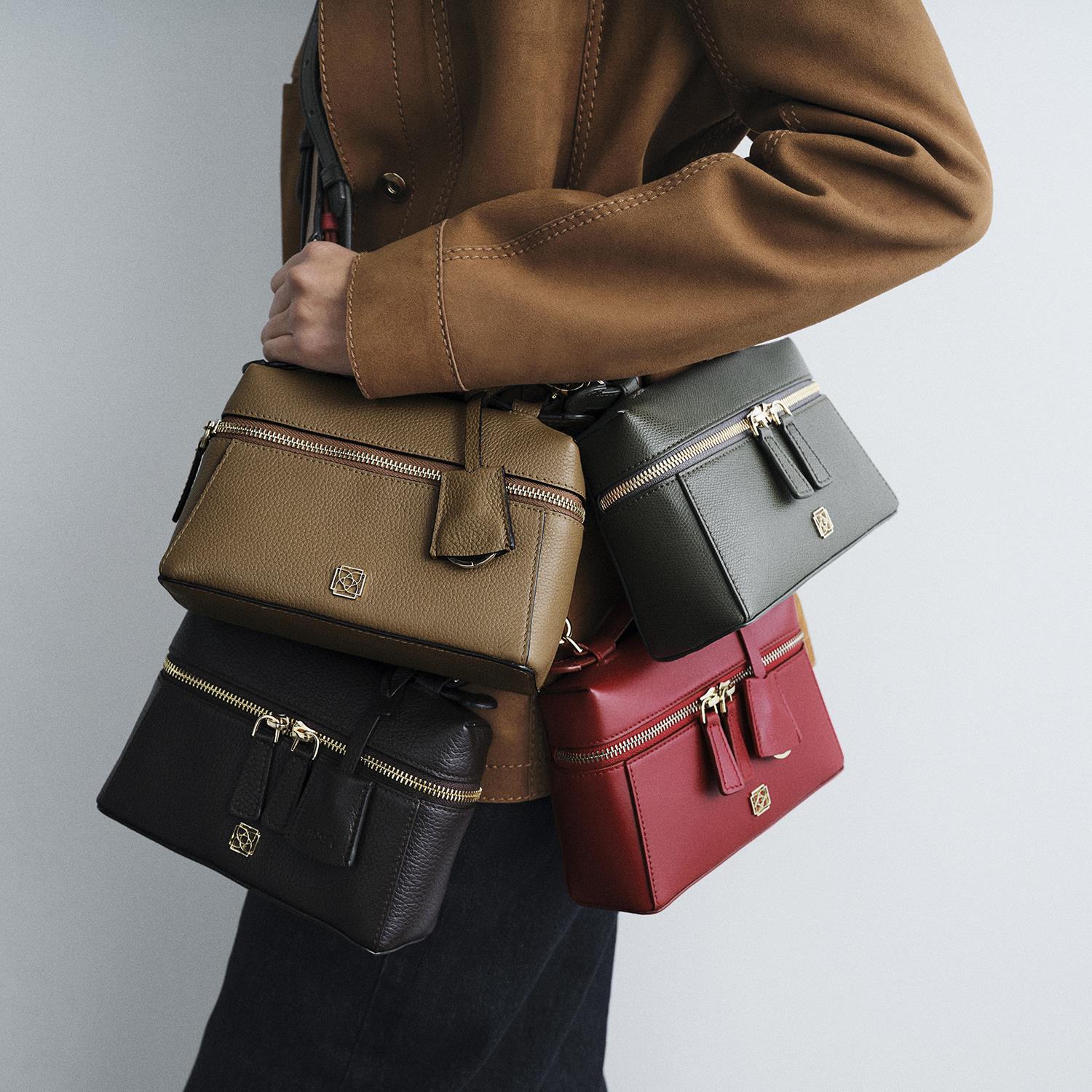 Deriden üretilmiş, kompakt bir kadın el ve omuz çantasıdır.