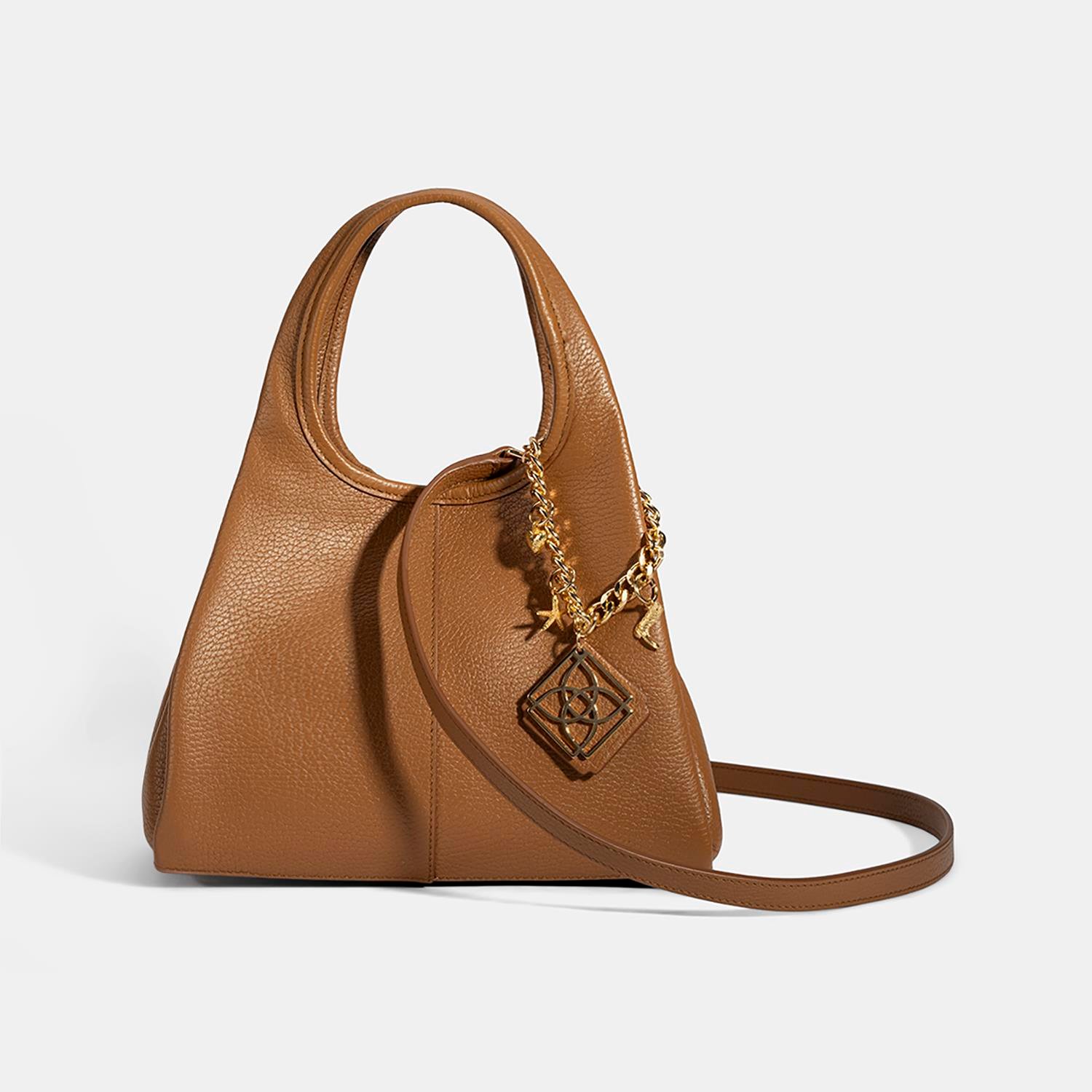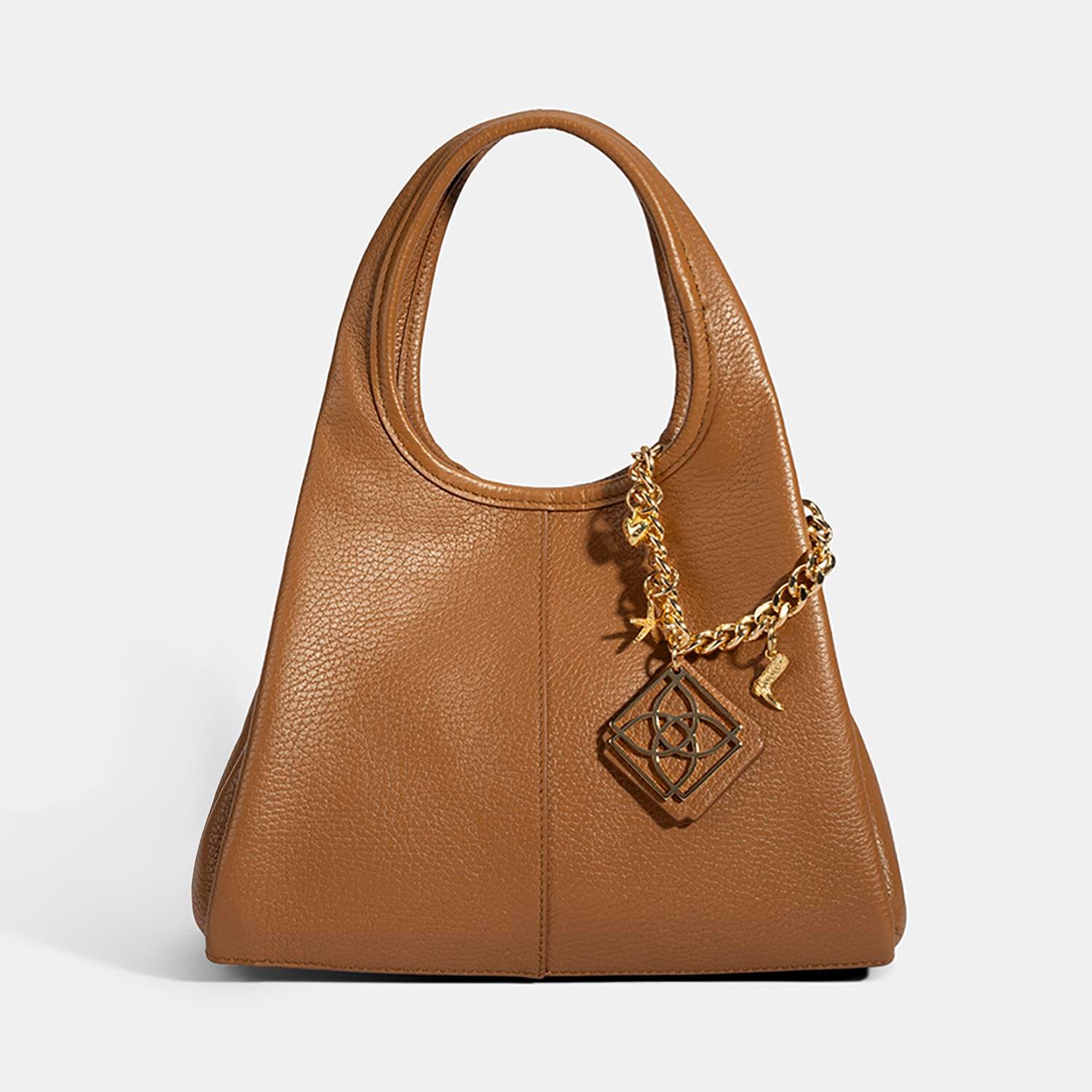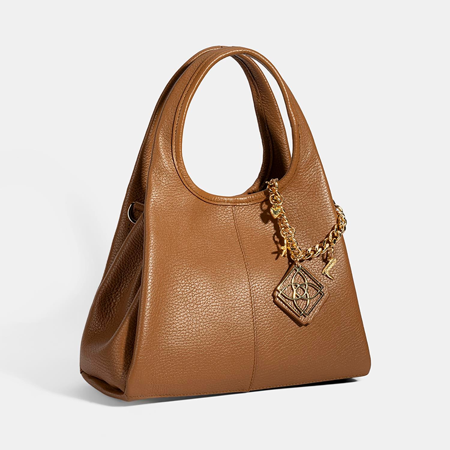 Kadın Taba Charm Aksesuarlı Deri El Çantası