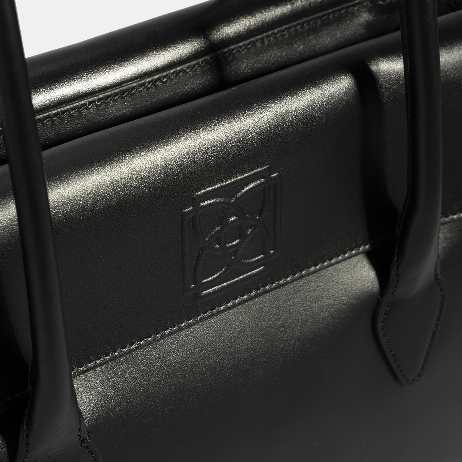 Kadın Siyah Monogram Baskılı Deri Omuz Çantası