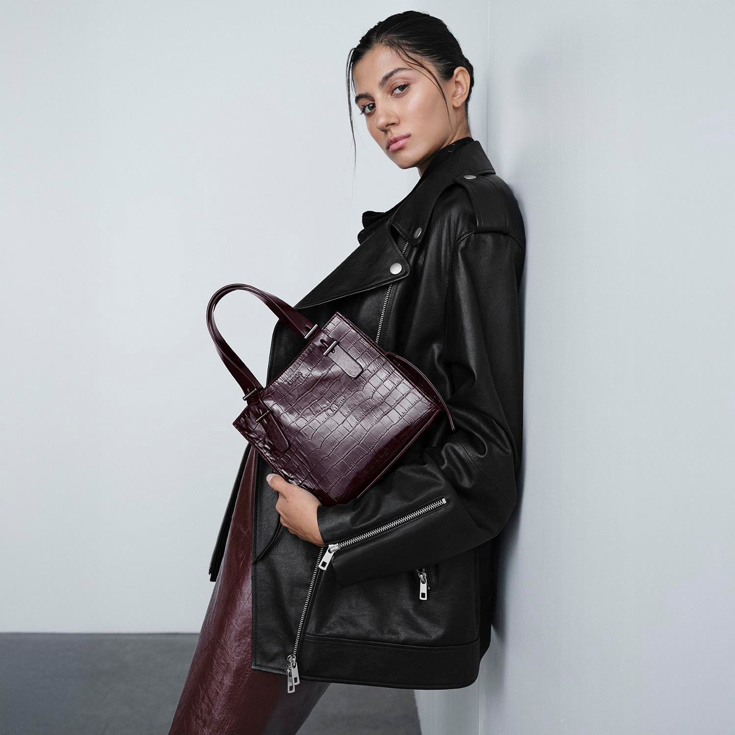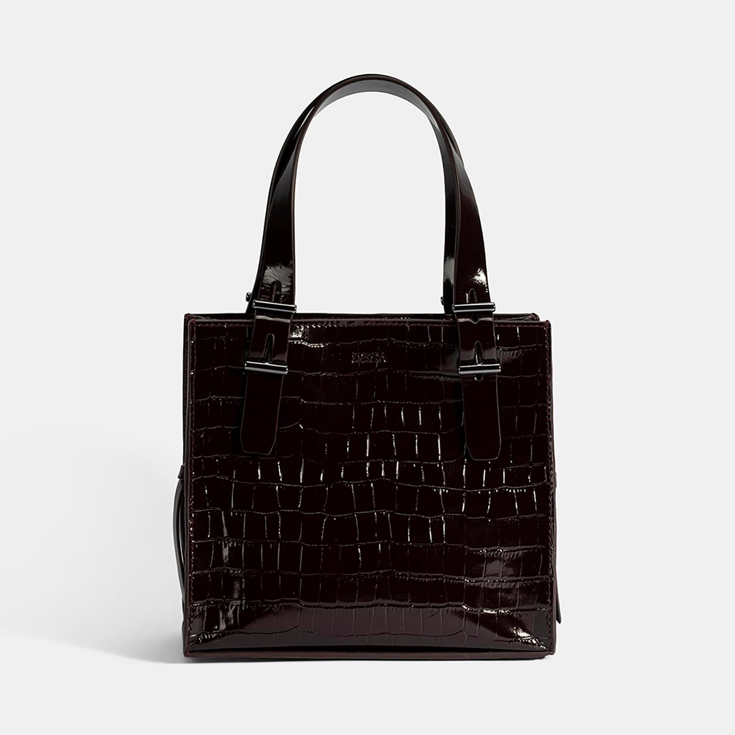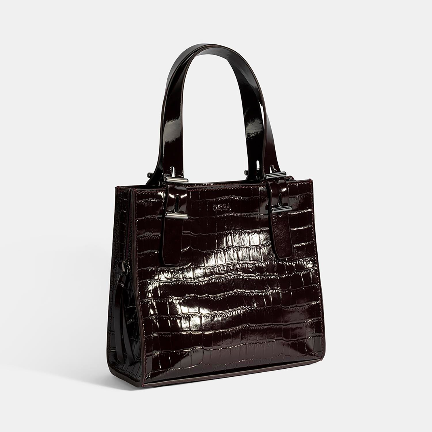 Kadın Bordo Kroko Baskılı Rugan Deri El Çantası