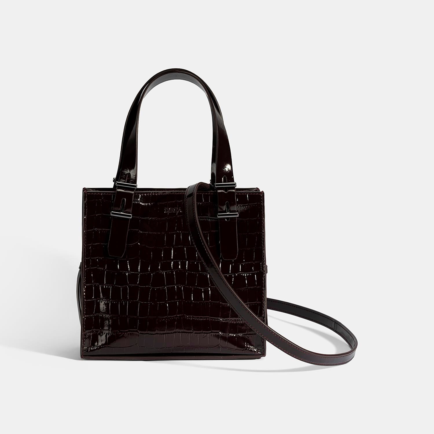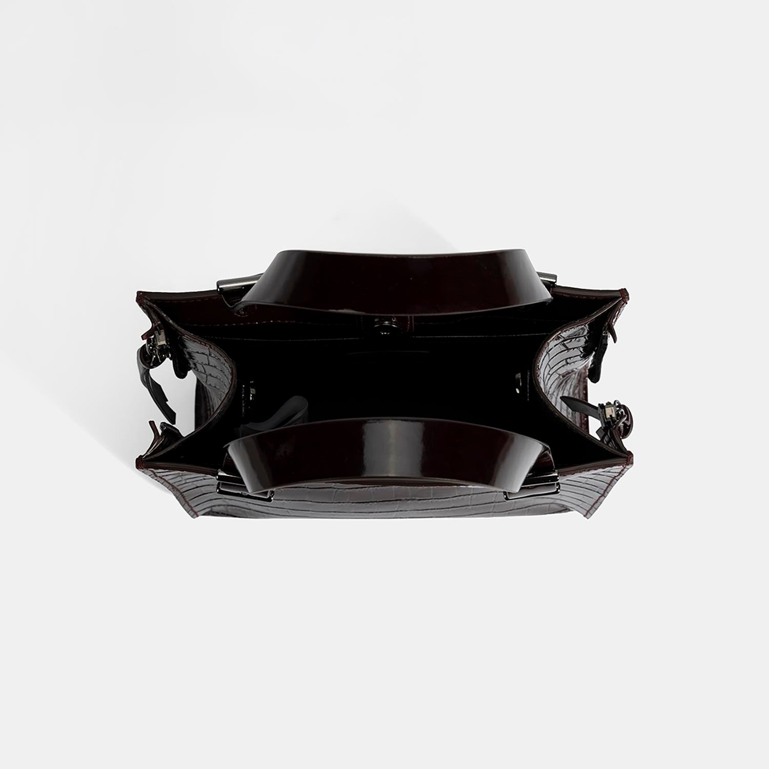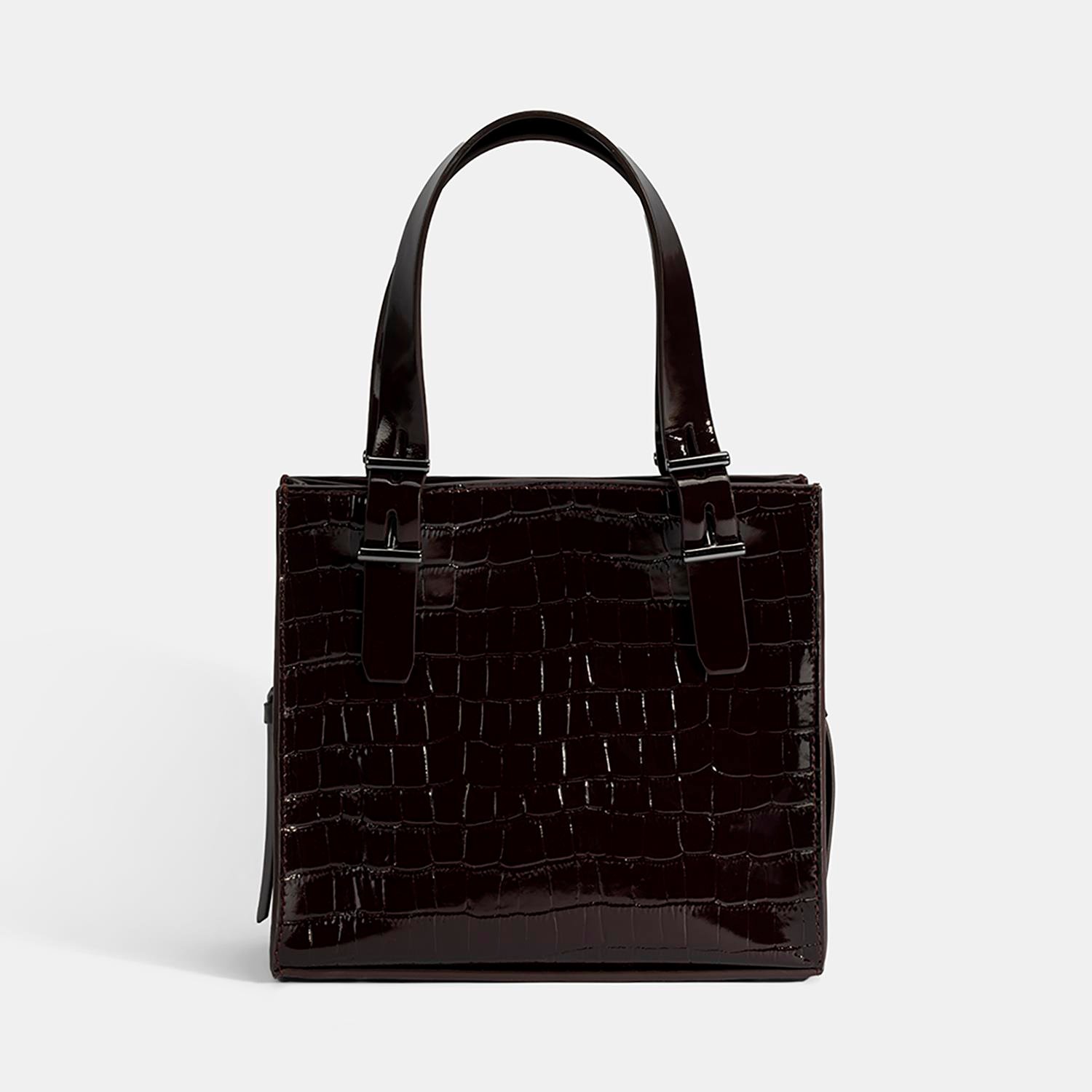 Kadın Bordo Kroko Baskılı Rugan Deri El Çantası