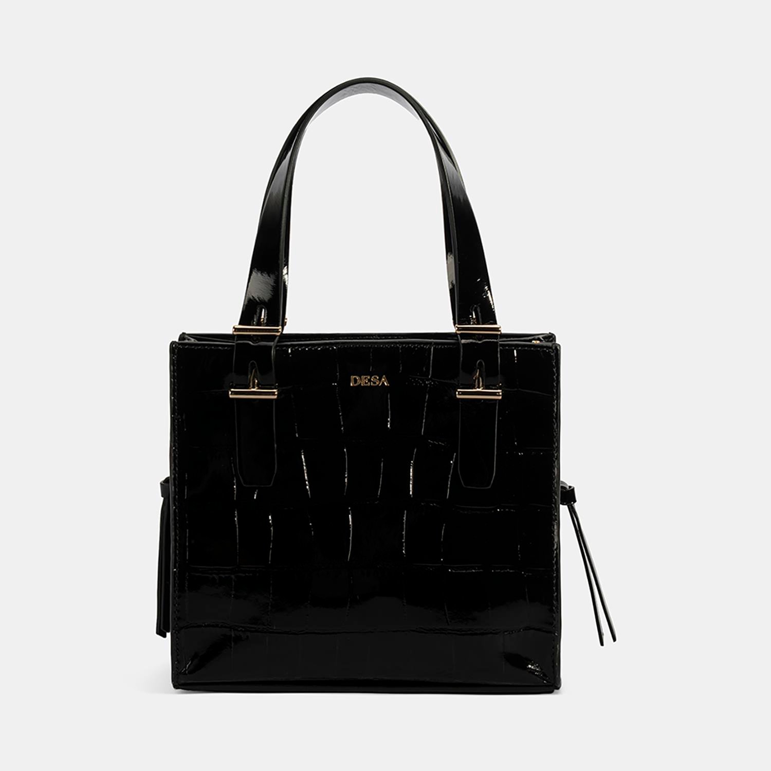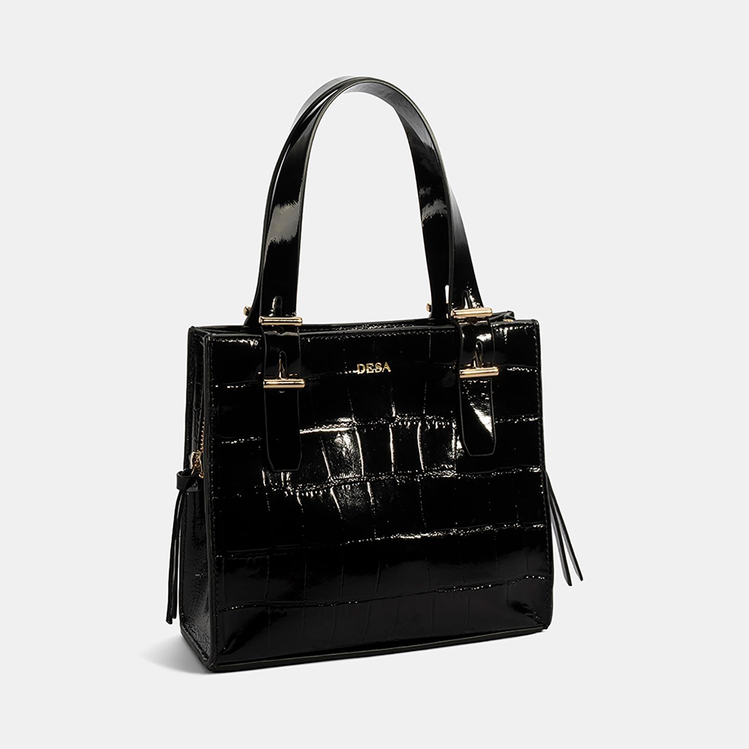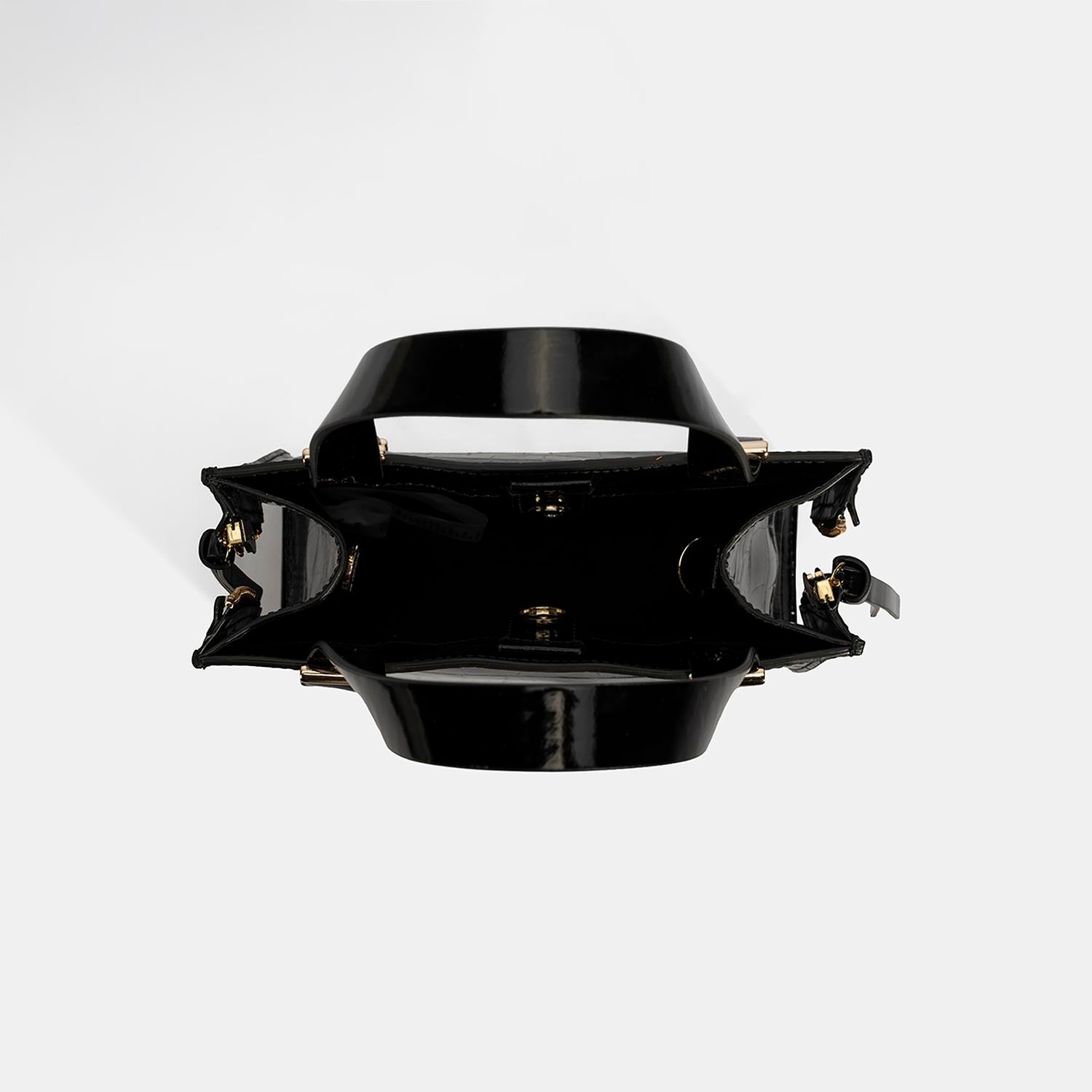 Kadın Siyah Kroko Baskılı Rugan Deri El Çantası
