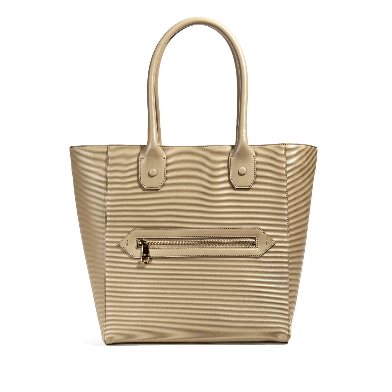 Önde fermuarlı cebi olan omuz çantası.