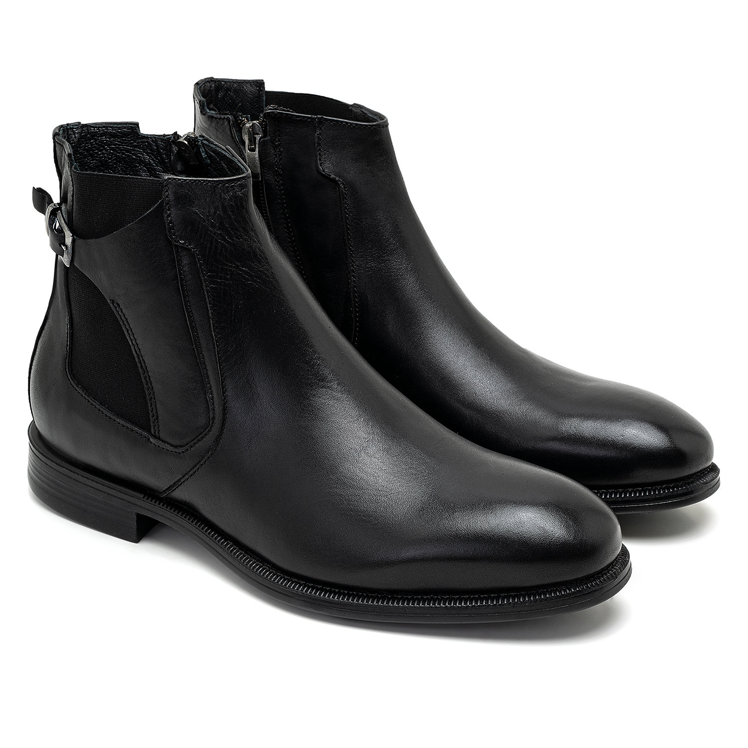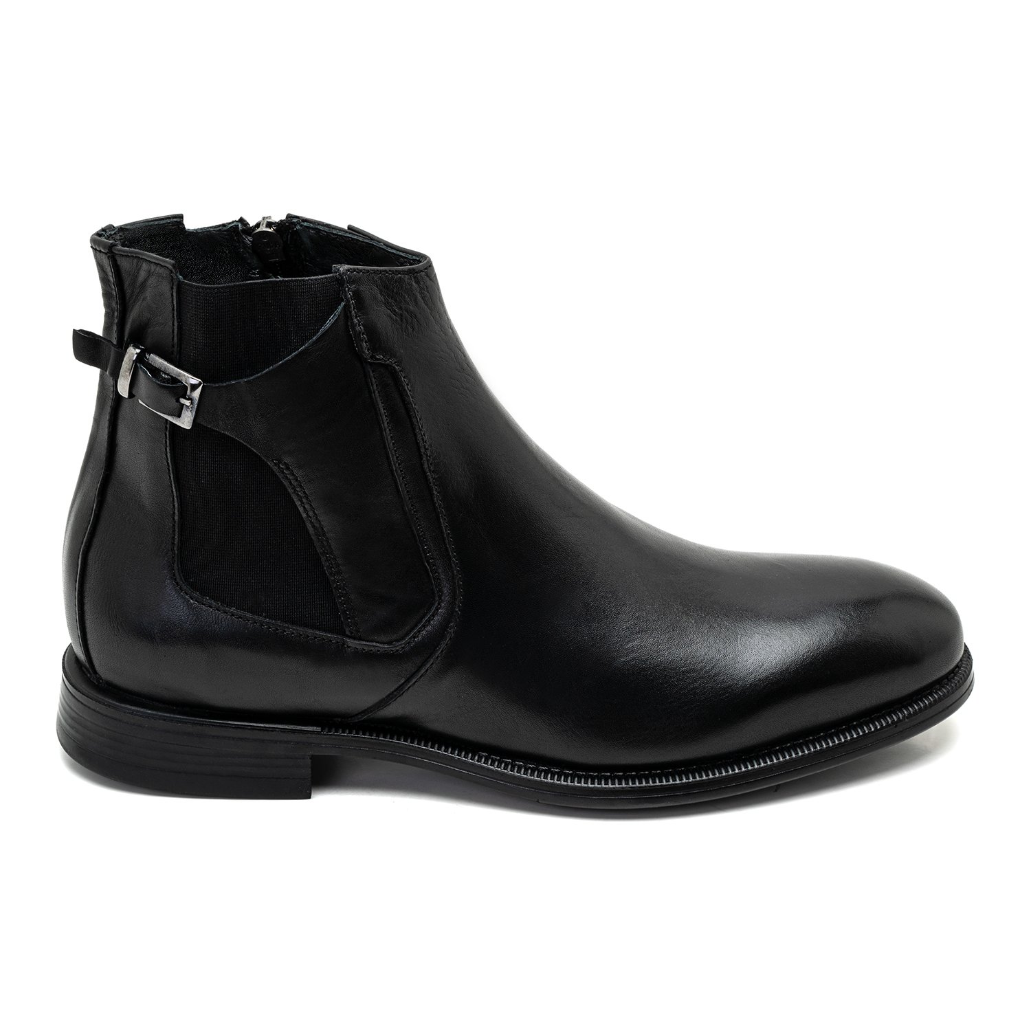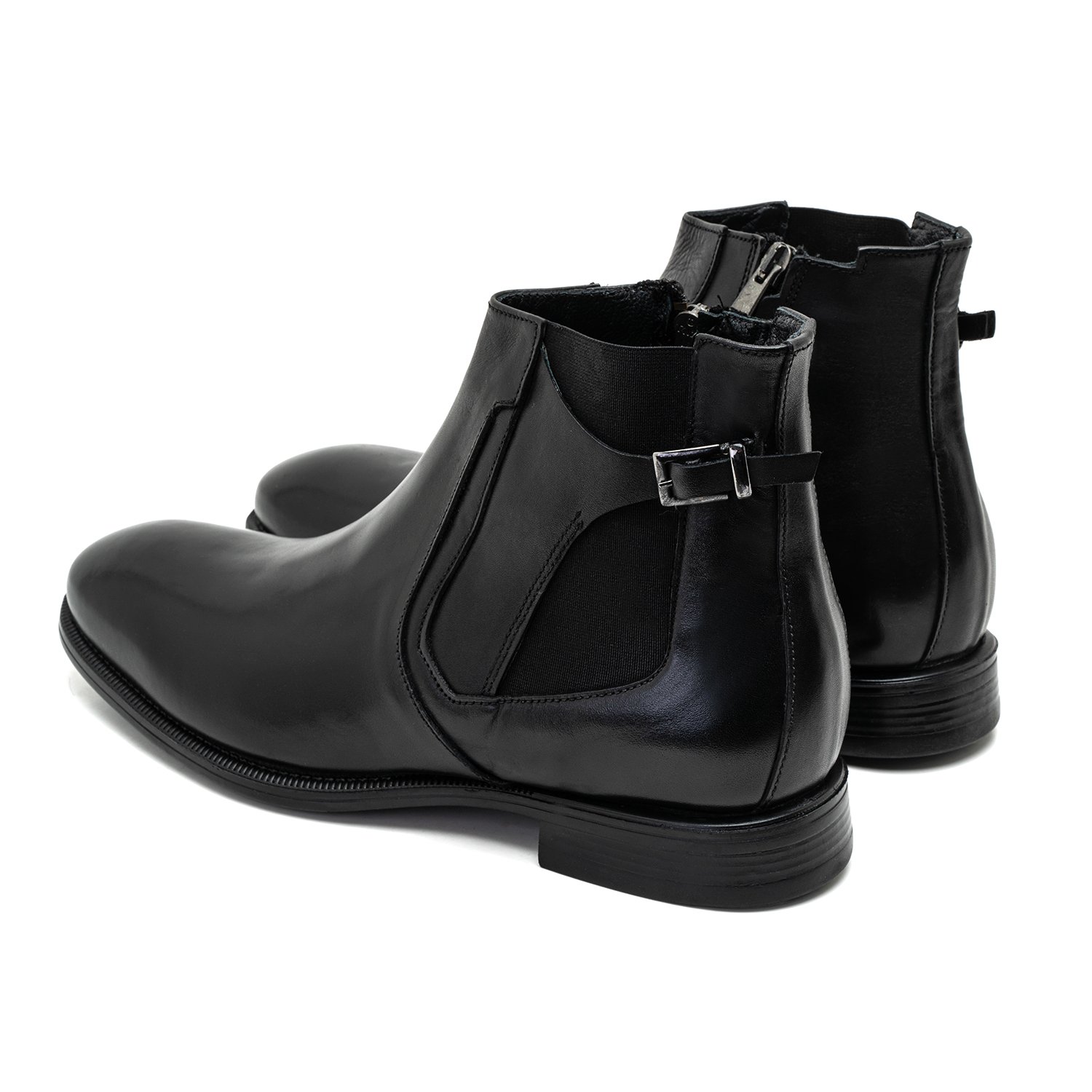 %100 deri, deri iç tabanlı, tekstil iç astarlı, kauçuk tabanlı, ayarlanabilir metal toka detaylı, lastikli erkek bot.