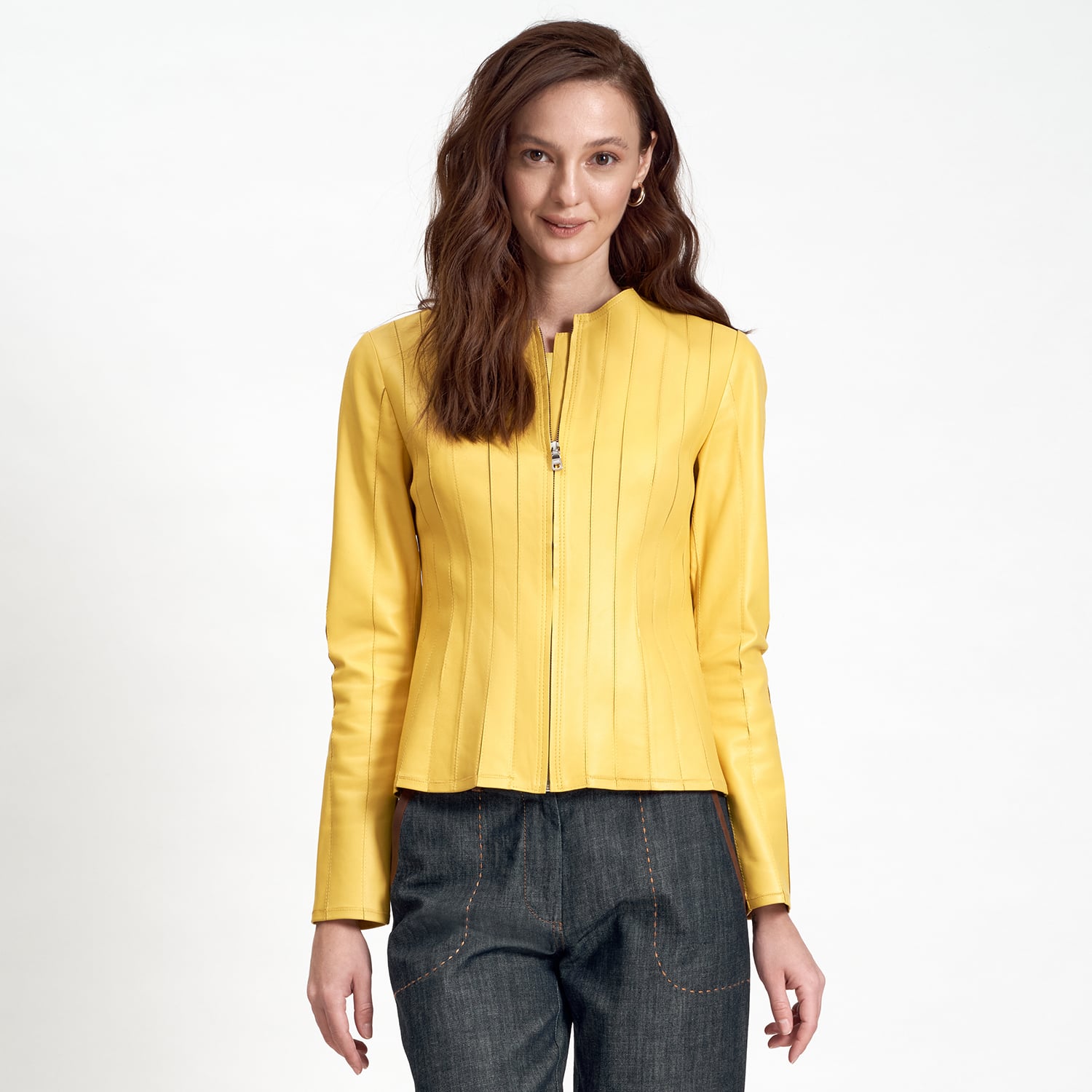 Deundria Kadın Fit Panelli Deri Ceket