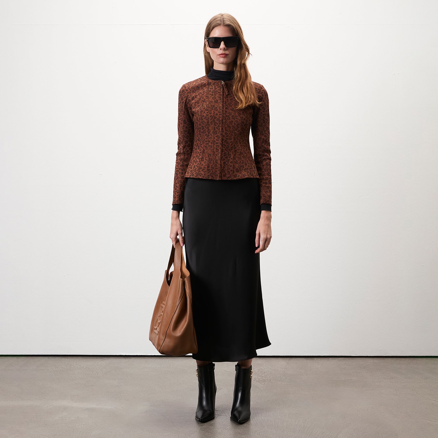 Deundria Leopar Kadın Panelli Fit Süet Ceket