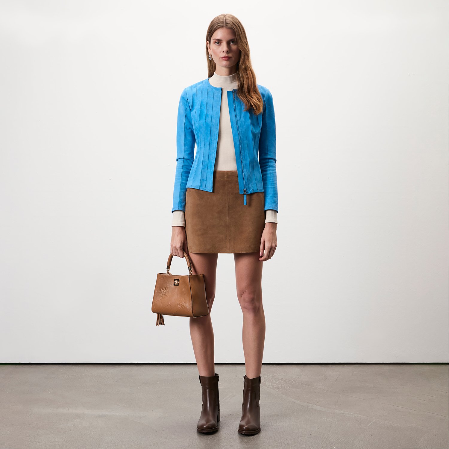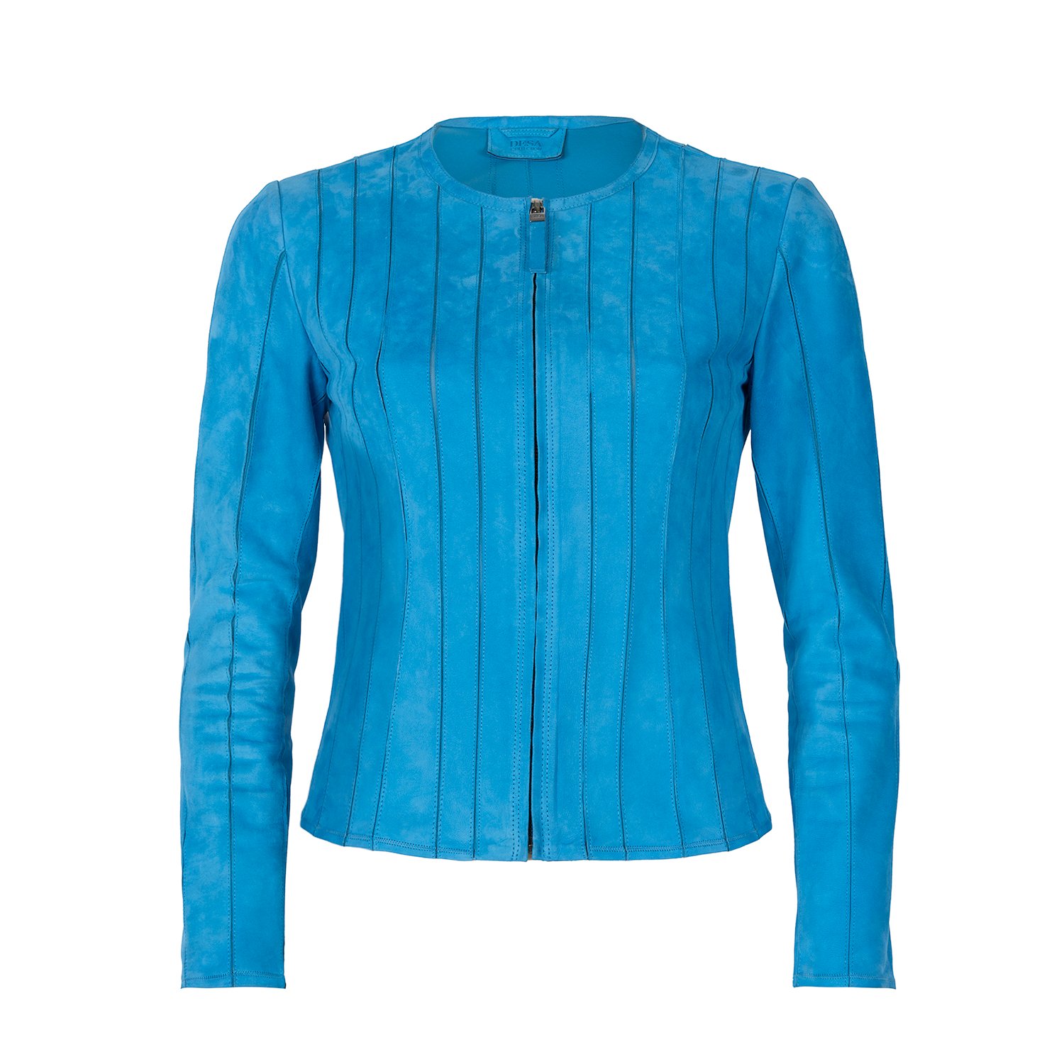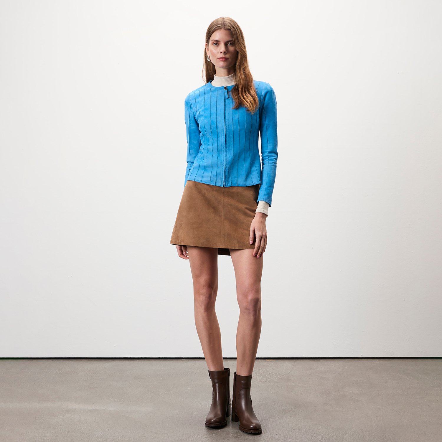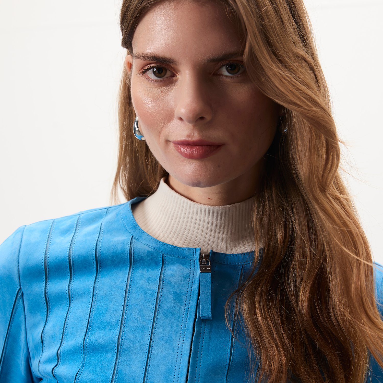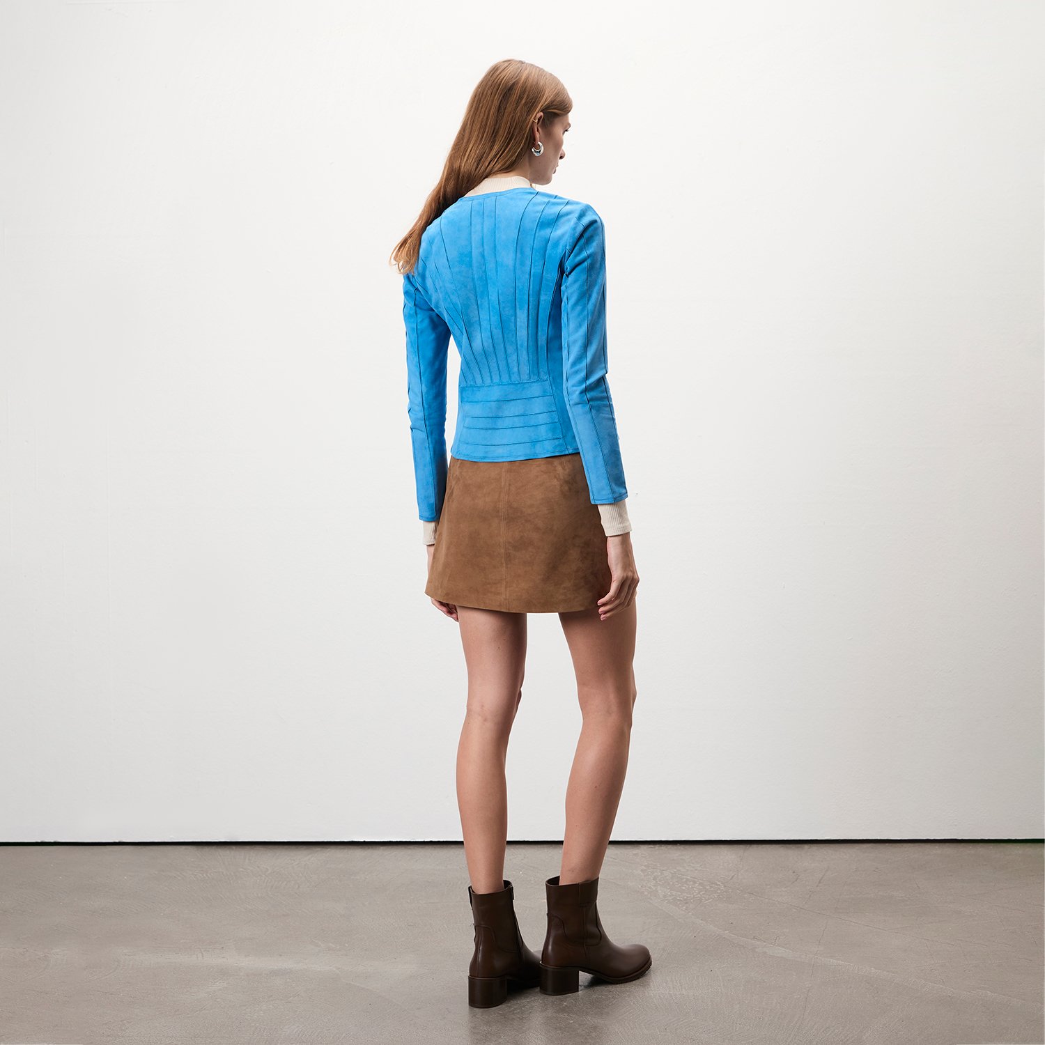 Deundria Mavi Kadın Panelli Fit Süet Ceket