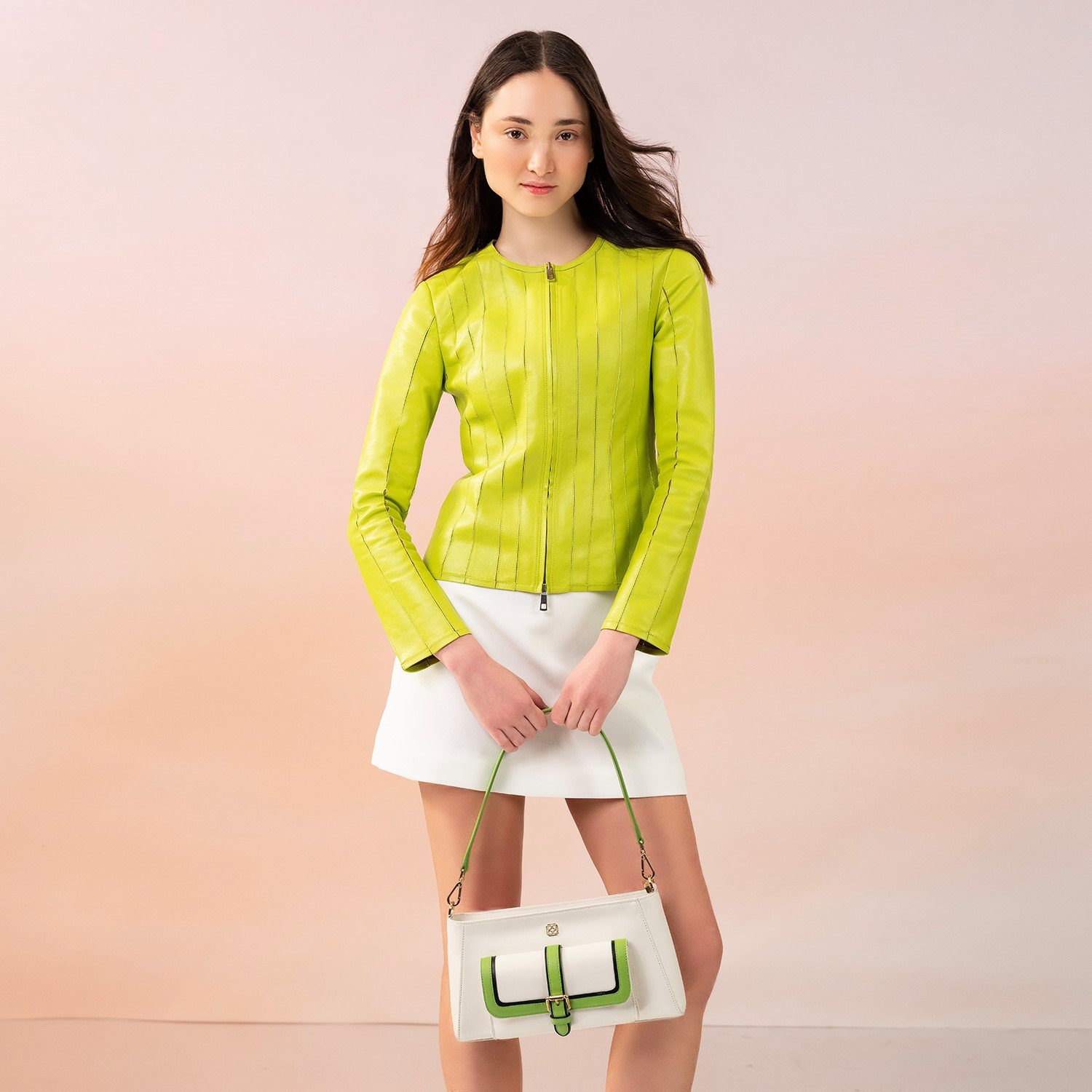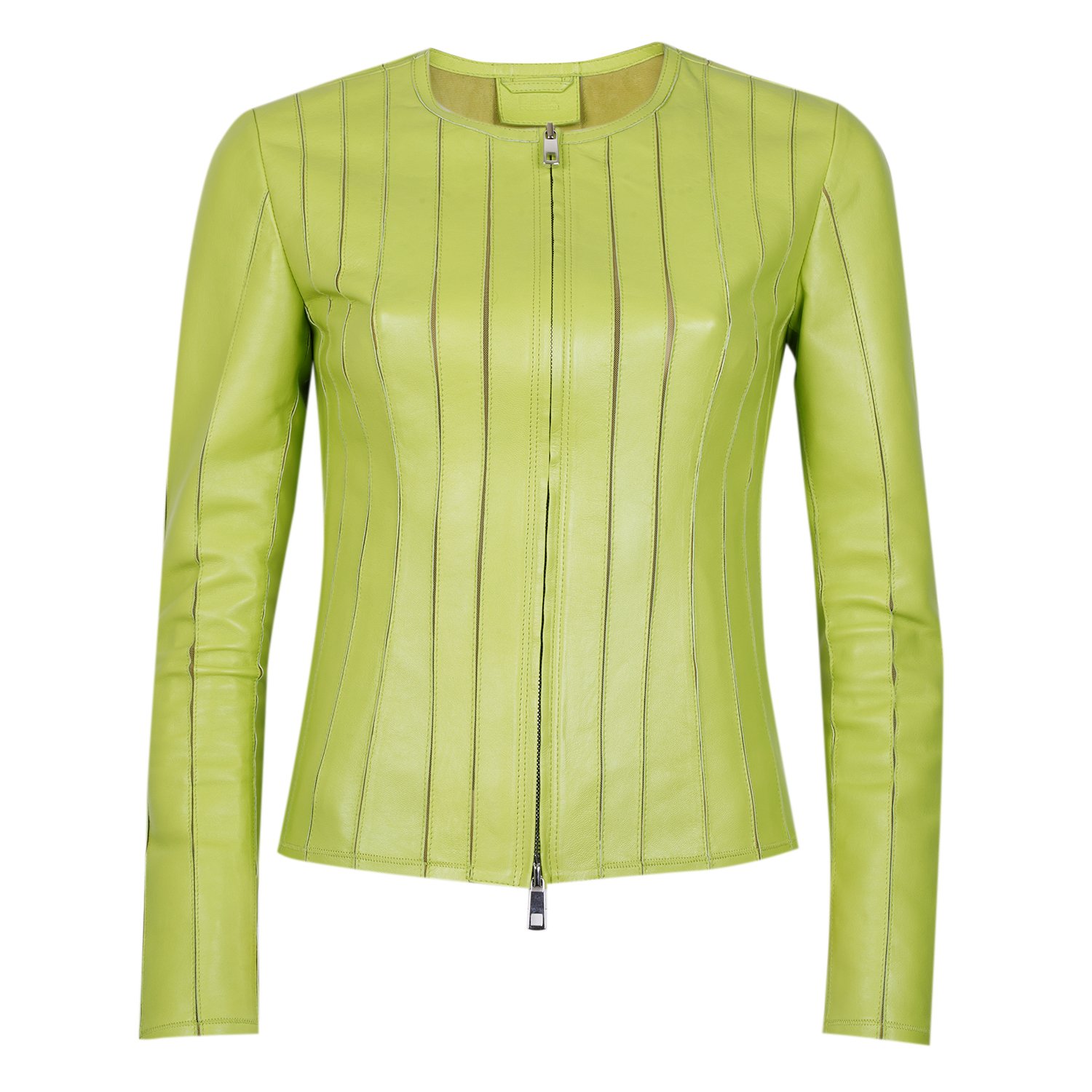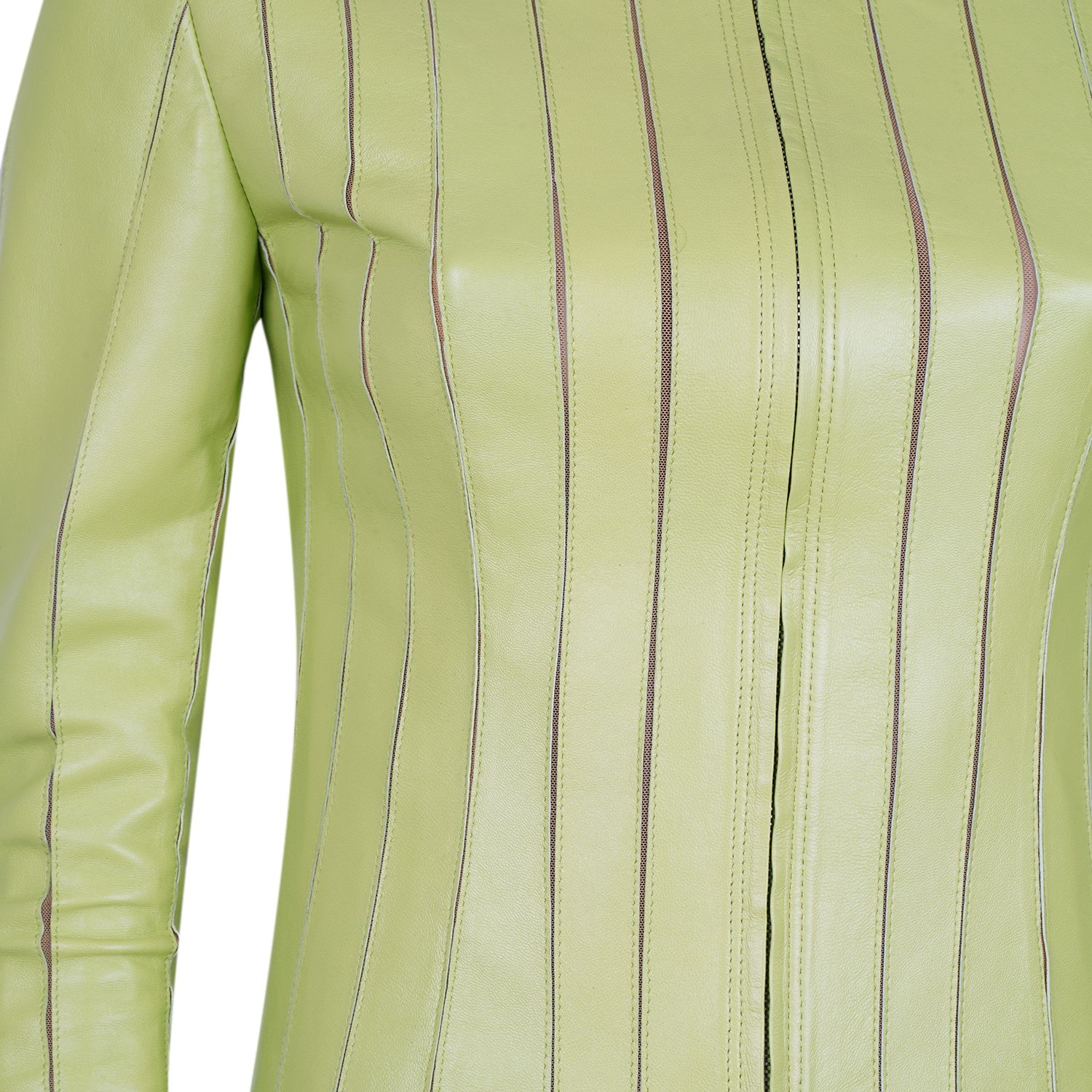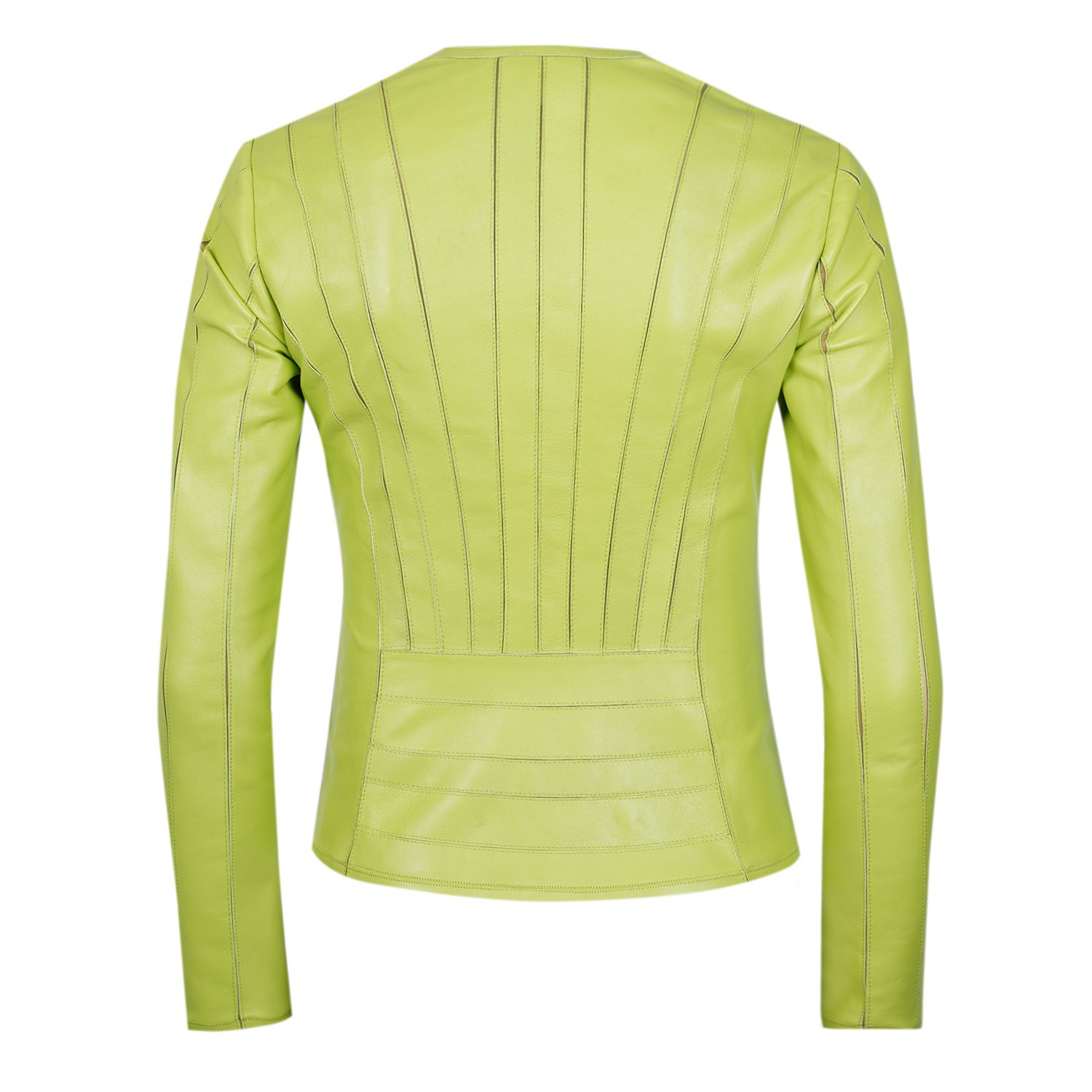 Deundria Yeşil Kadın Fit Panelli Deri Ceket