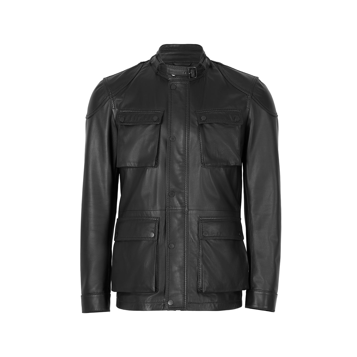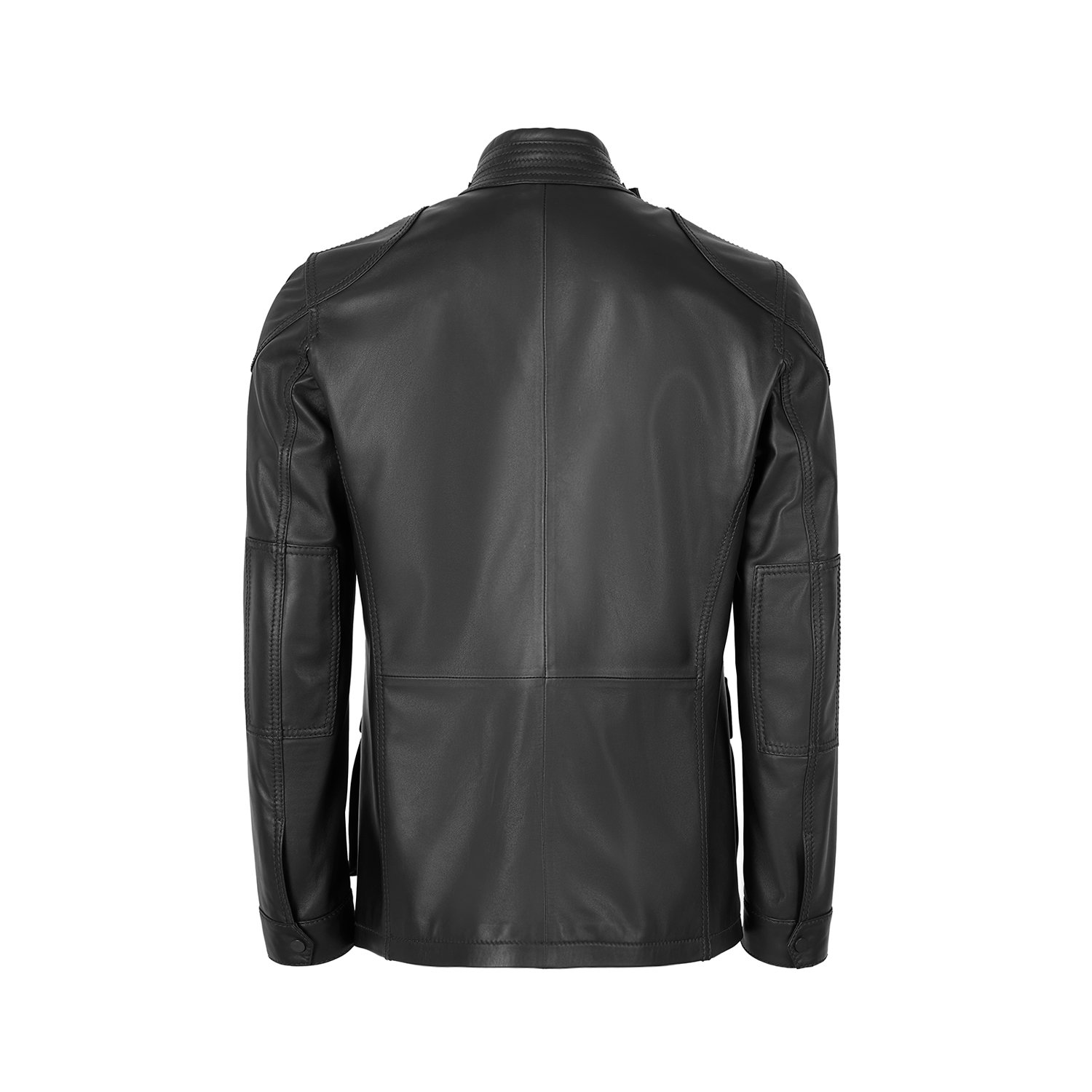 Erkek hakim yakalı vintage deri ceket, önden metal fermuar kapamalıdır.