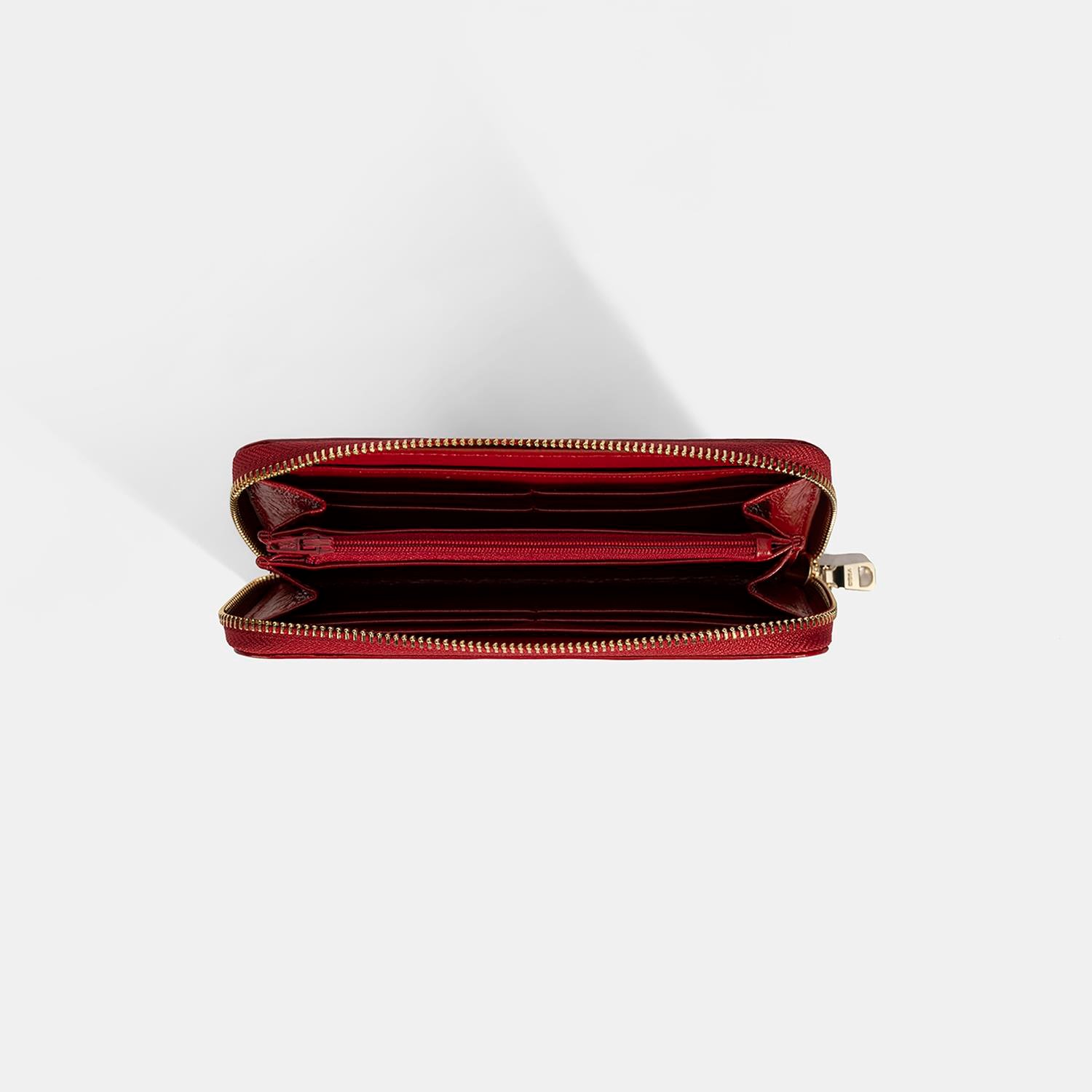 İçinde 8 kredi kartı için bölme, ikili kağıt para bölmesi ve fermuarlı bozuk para bölmesi vardır.