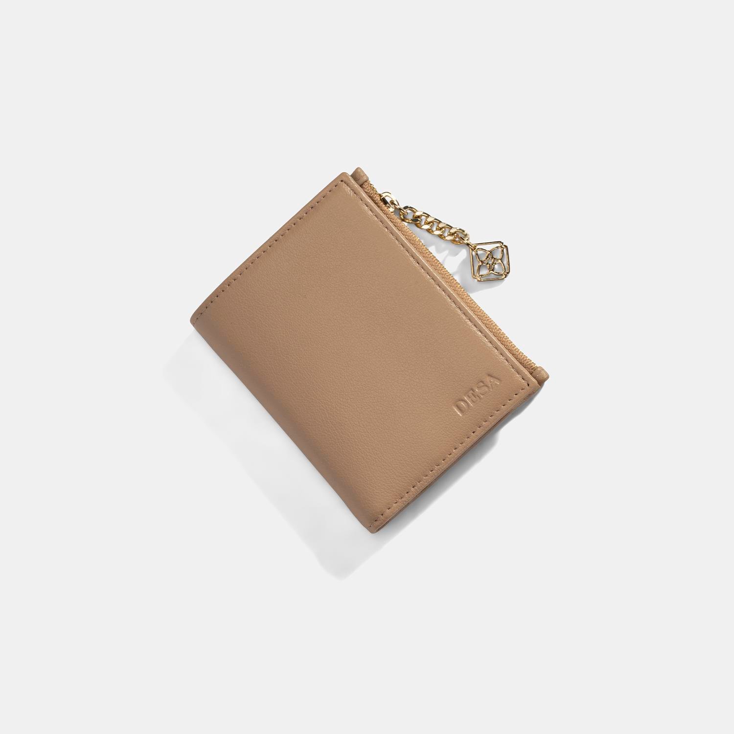 Kadın Bej Zincir Detaylı Deri Cüzdan