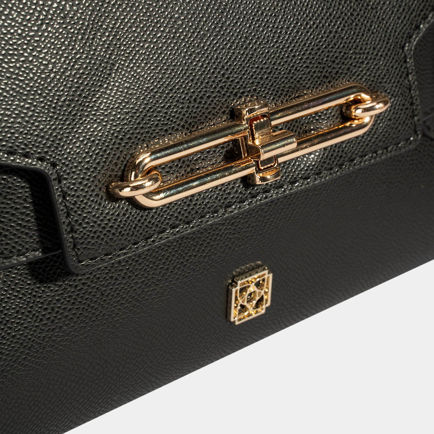 Bu zarif çanta, kilitli kapama sistemiyle güvenli ve kolay kullanım sağlar.
