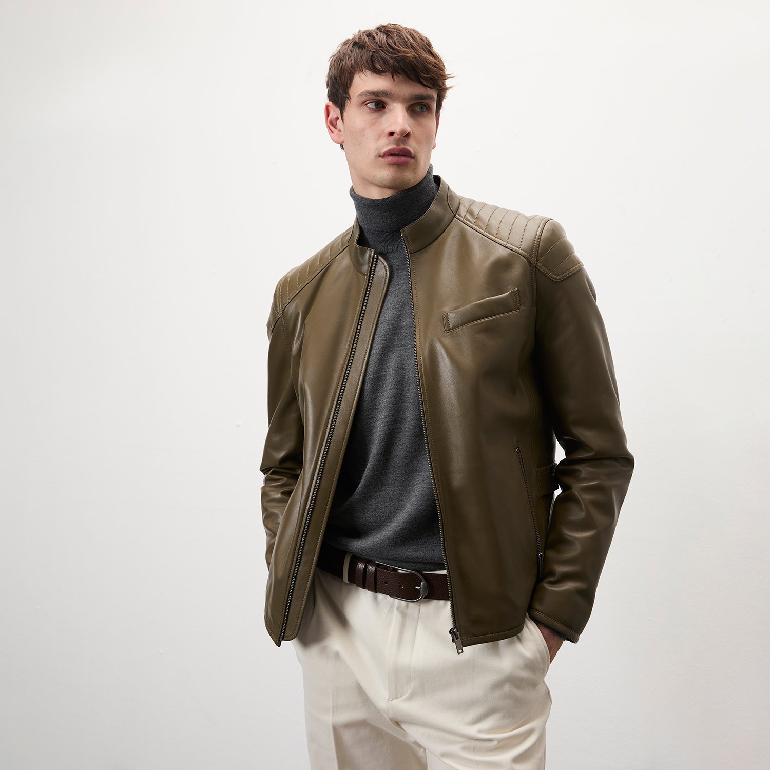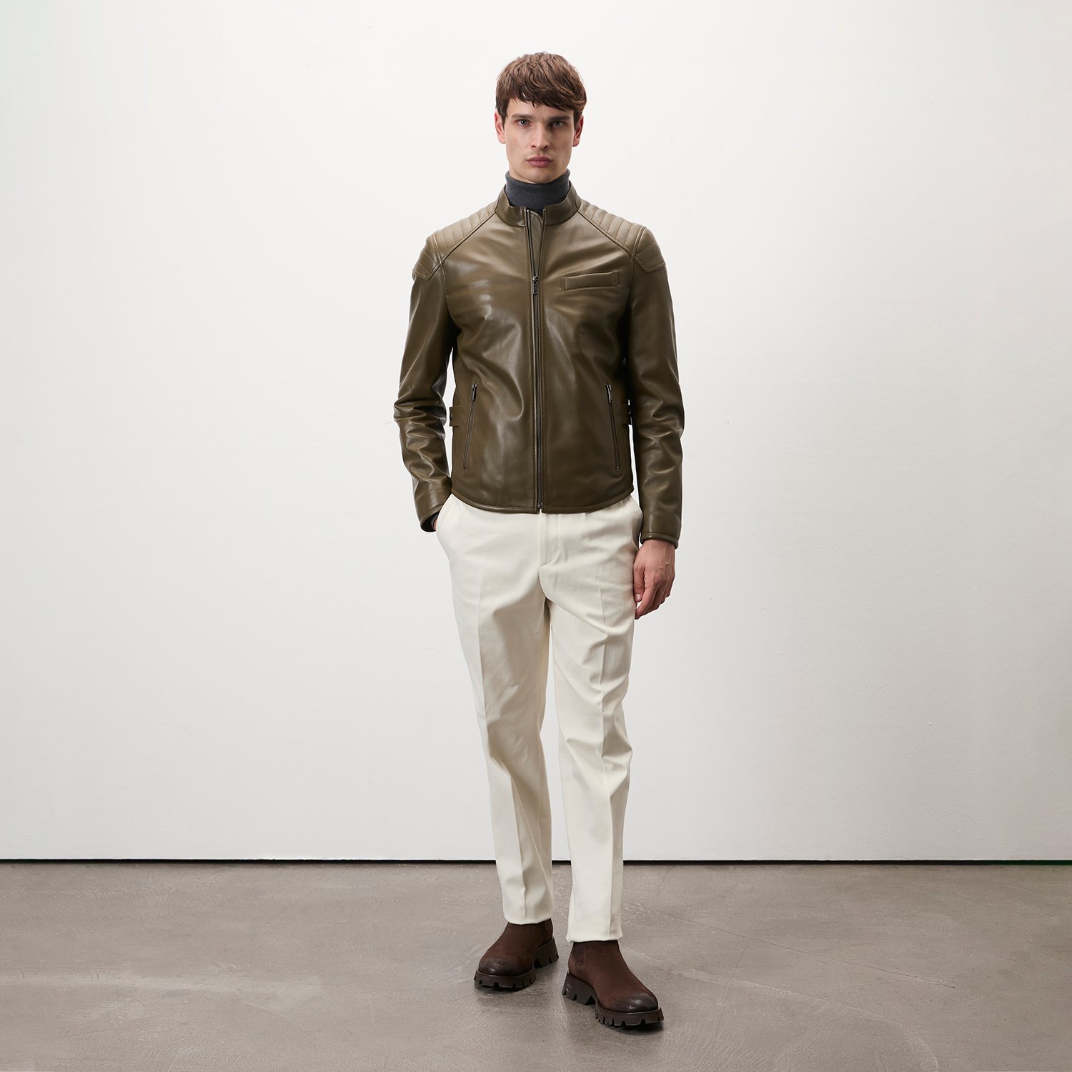 Dugan Yeşil Erkek Deri Mont