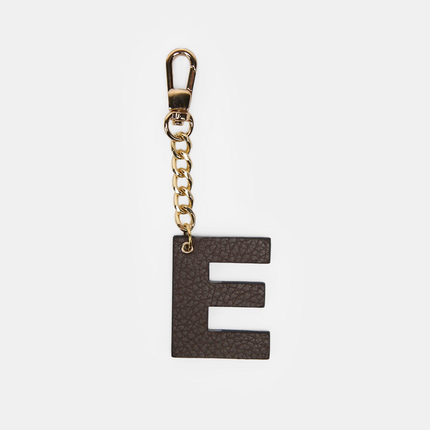 E Harfi Kahve Hakiki Deri Charm Anahtarlık