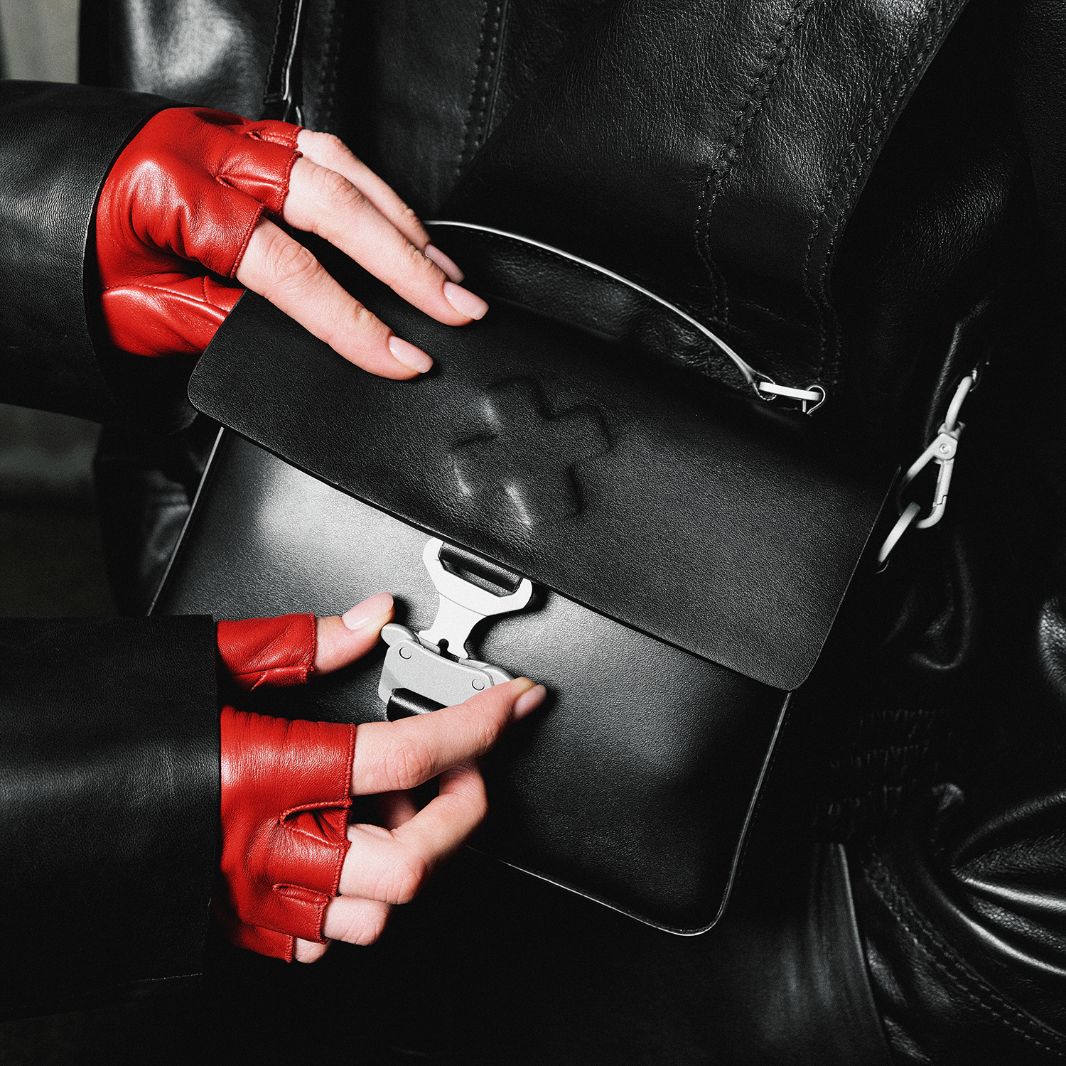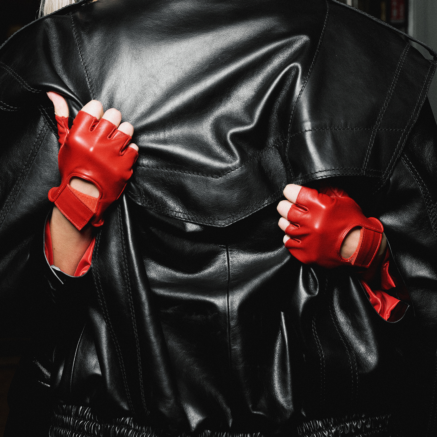 Doğal derinin güçlü dokusu, açık parmak tasarımıyla özgürlüğü ve hareketi ön plana çıkarırken; cesur kırmızı tonu görünümü tek başına dönüştüren bir imza etkisi yaratıyor.