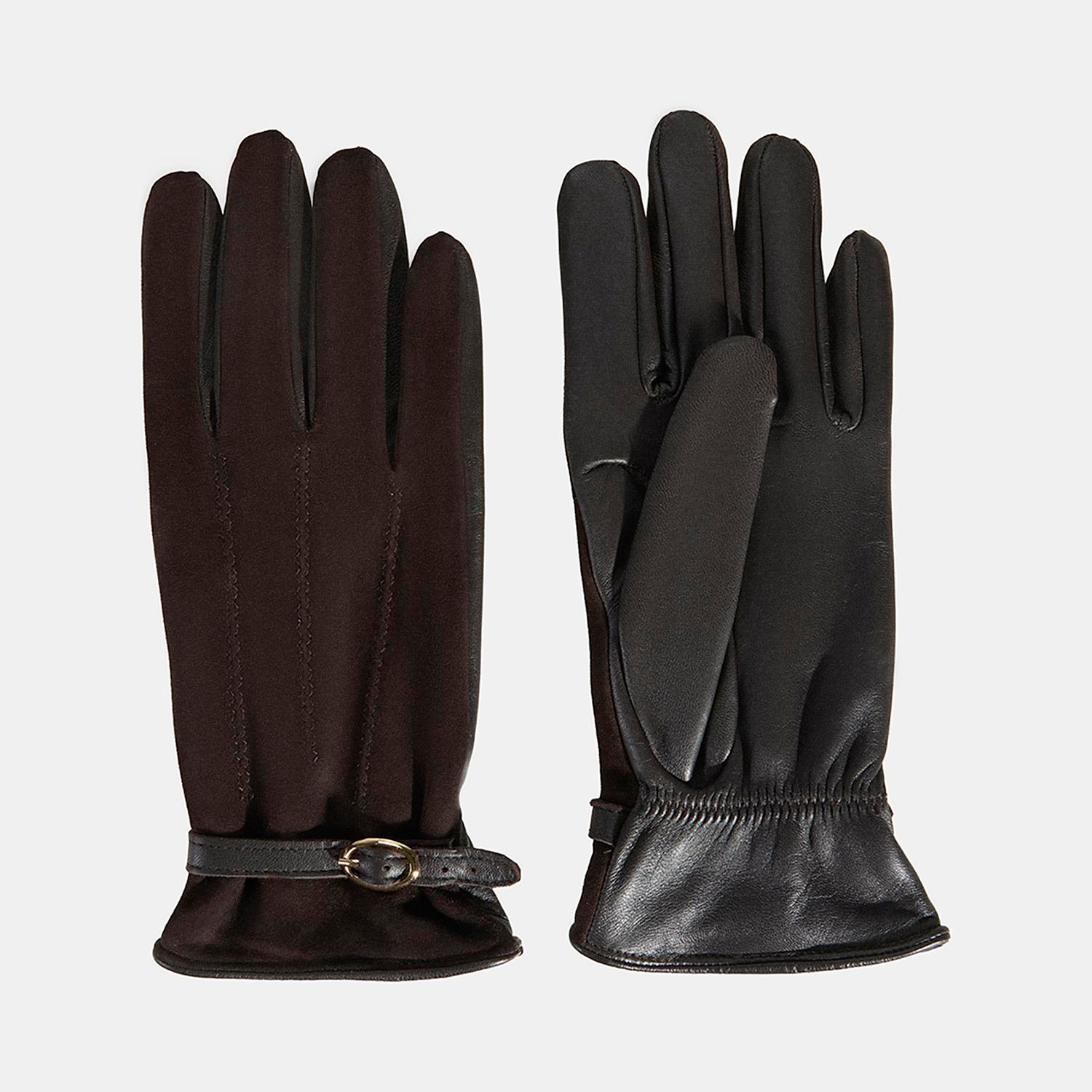 Kadın Kahve Tokalı Süet Deri Eldiven