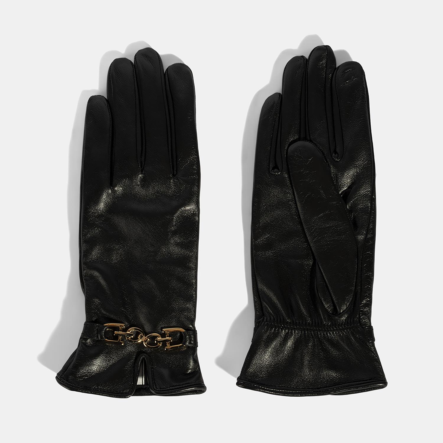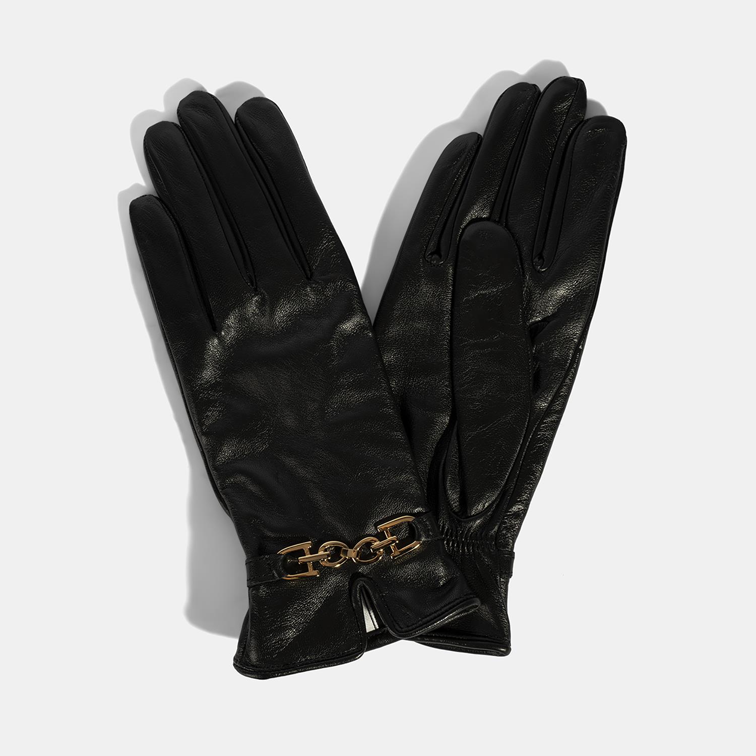 Kadın Siyah Zincir Aksesuarlı Deri Eldiven