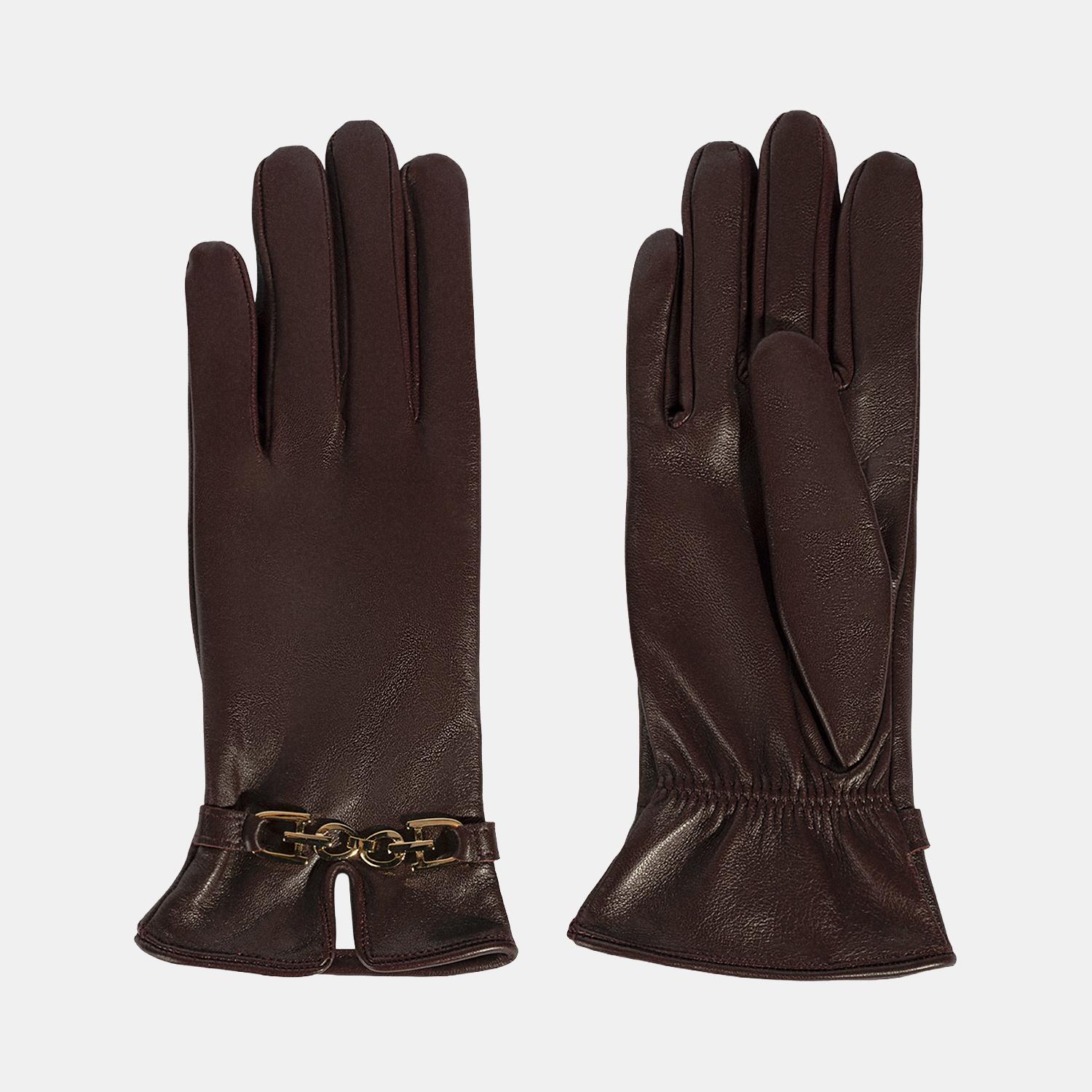 Kadın Bordo Zincir Aksesuarlı Deri Eldiven
