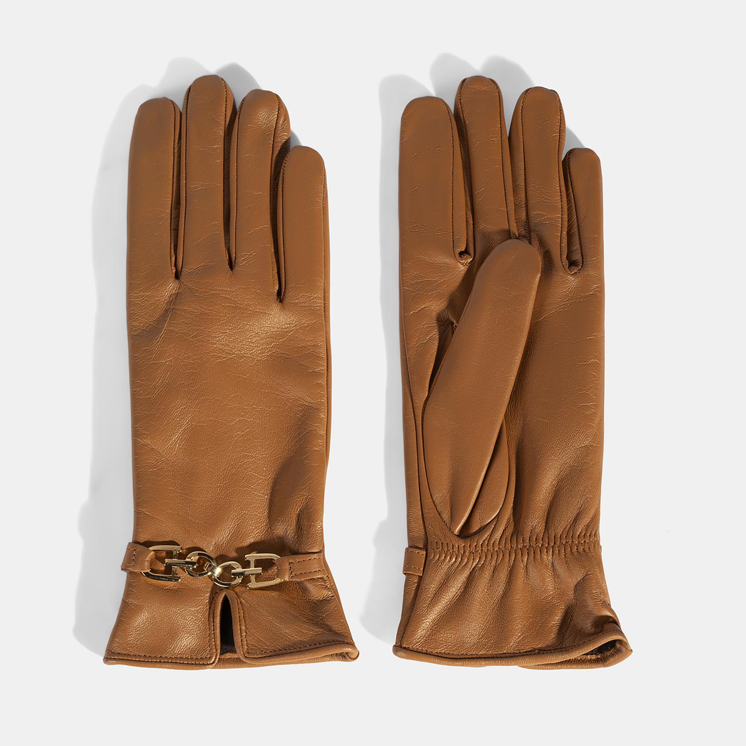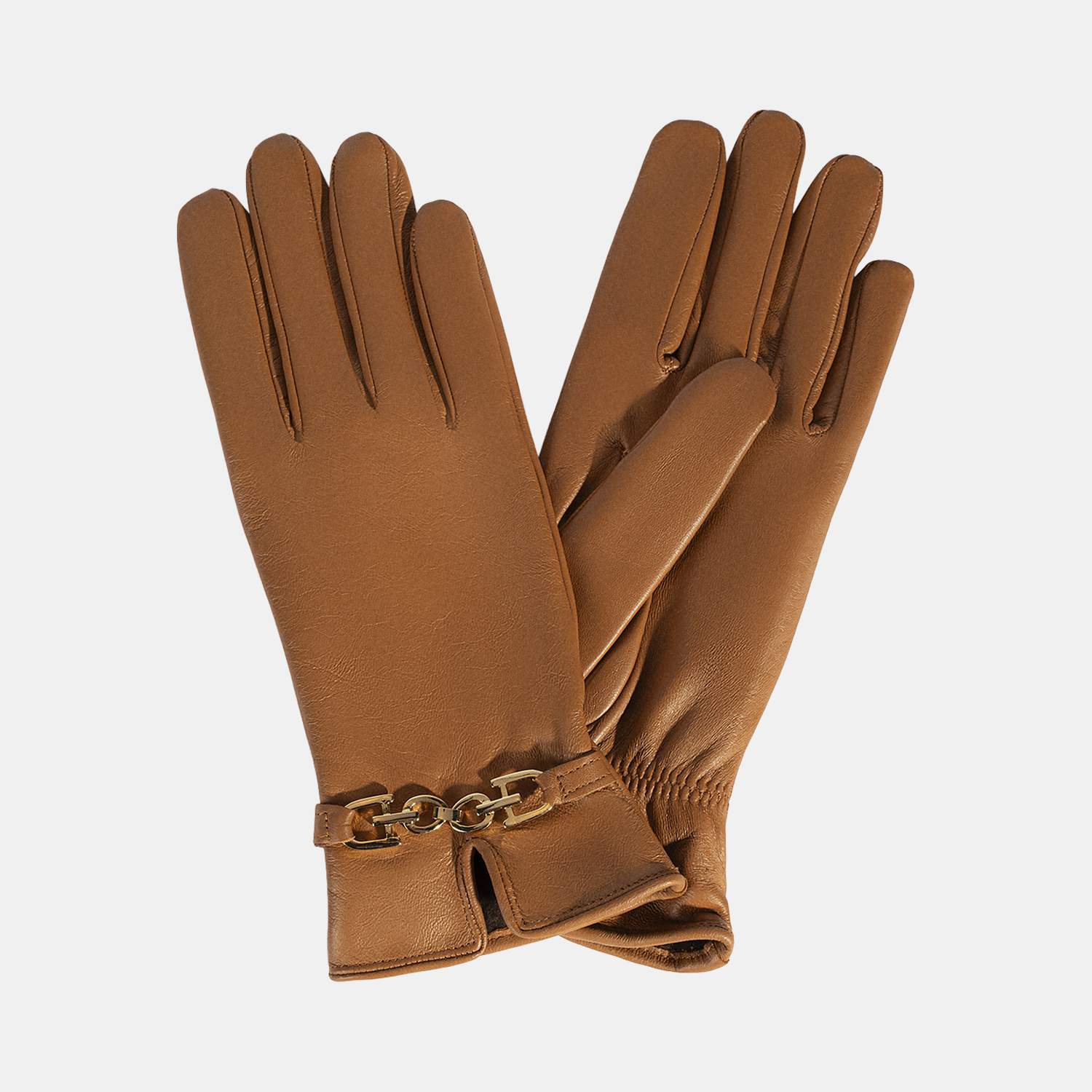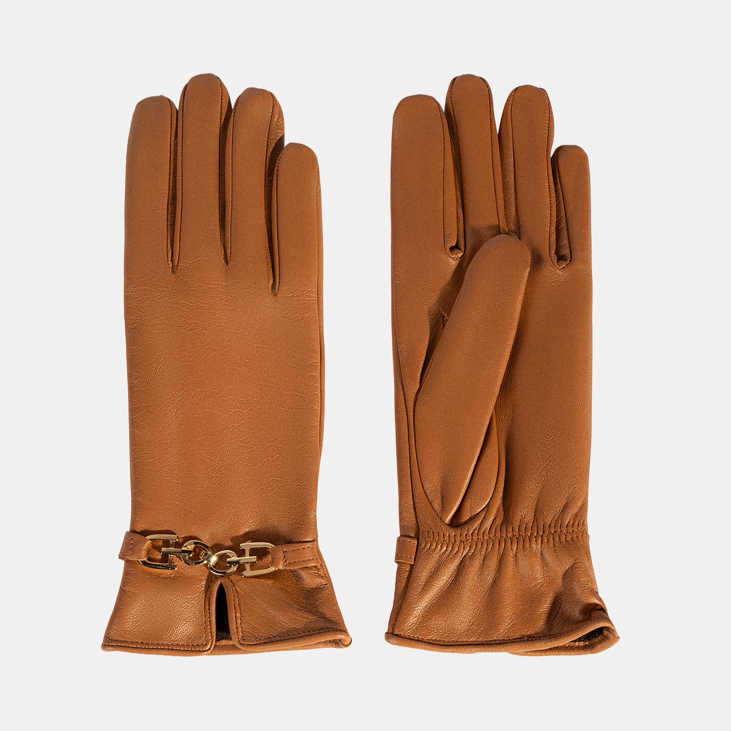 Kadın Taba Zincir Aksesuarlı Deri Eldiven