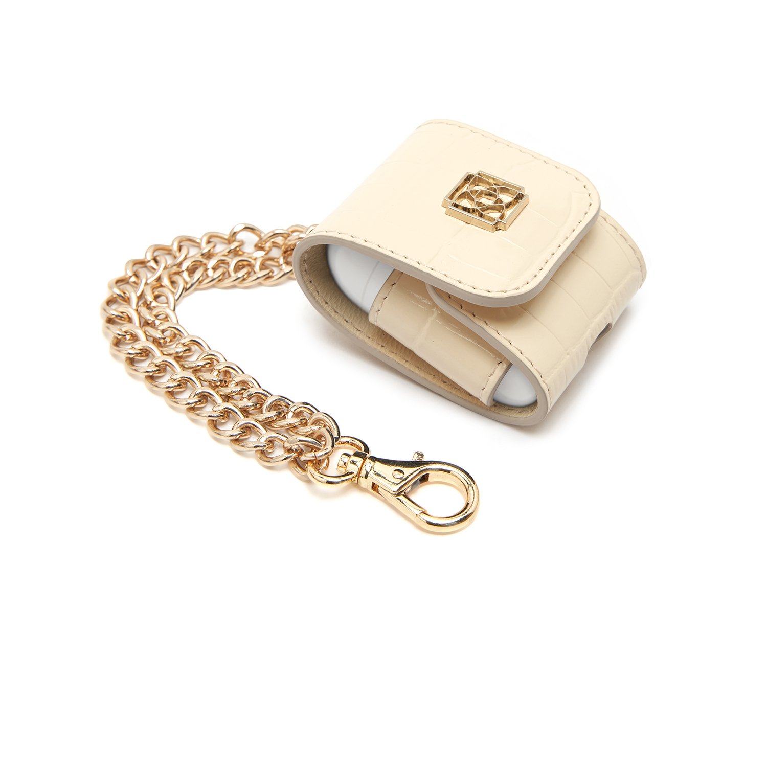 Ekru Zincir Detaylı Deri Airpods Kılıfı