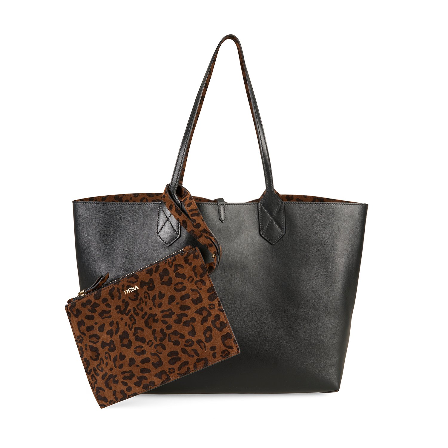 Emely Kahve Leopar Kadın Çift Taraflı Deri Omuz Çantası