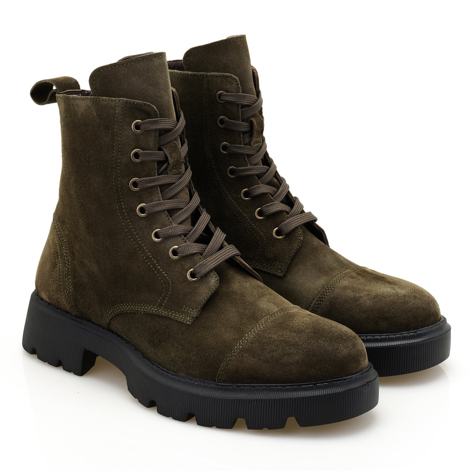 %100 süet deri, deri iç tabanlı, deri astarlı, eva tabanlı bağcıklı erkek bot.