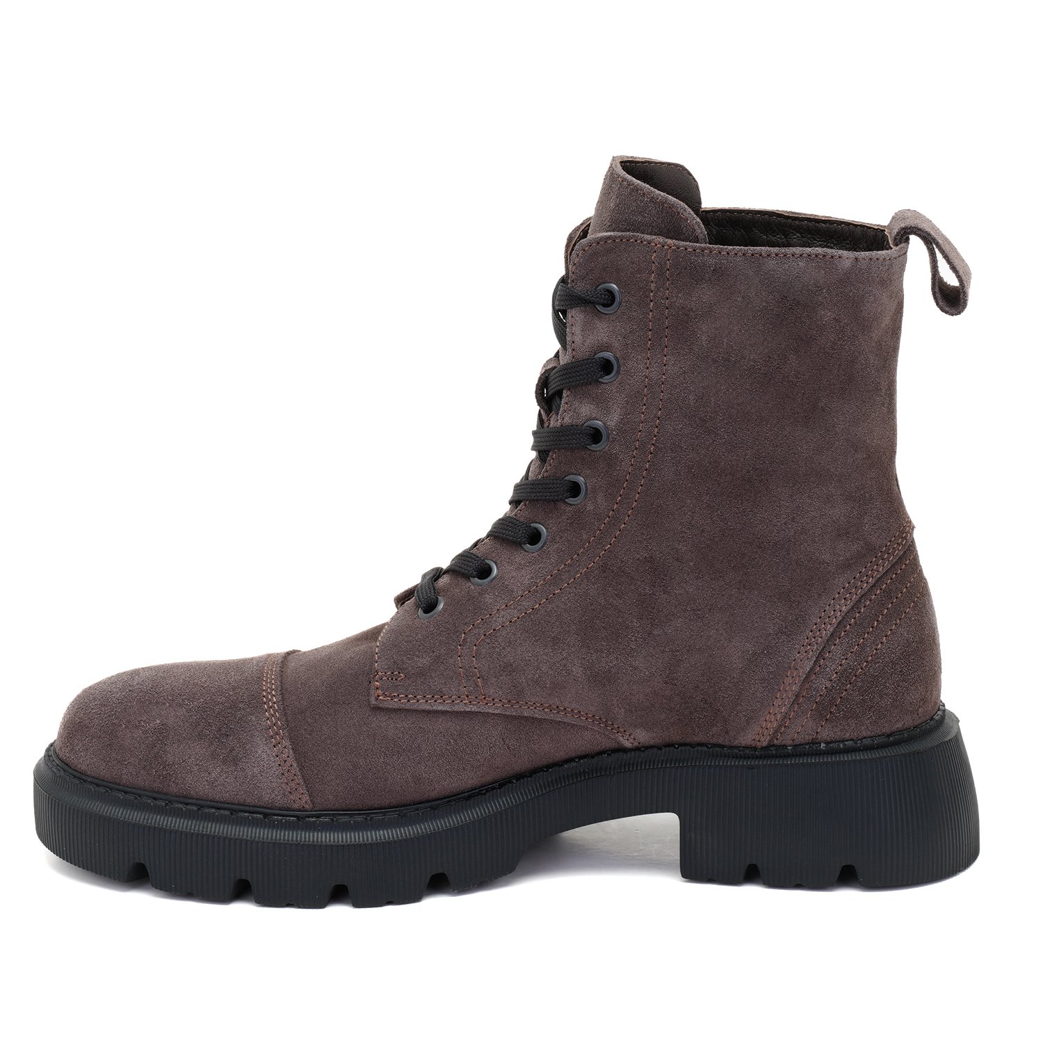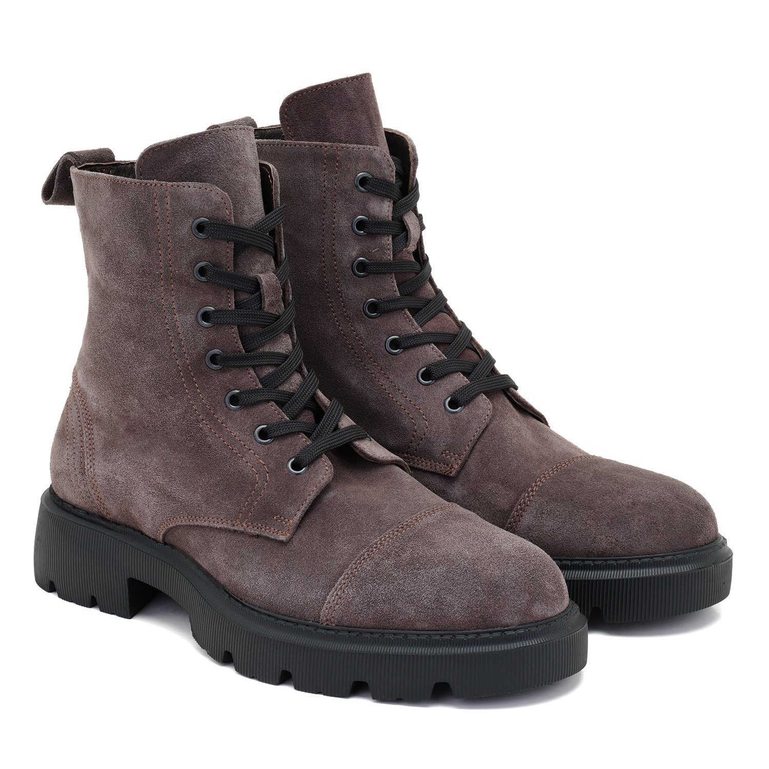 %100 süet deri, deri iç tabanlı, deri astarlı, eva tabanlı bağcıklı erkek bot.