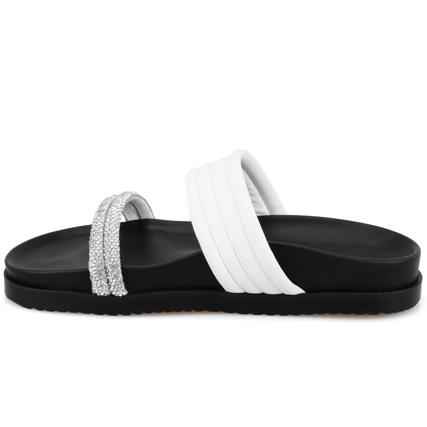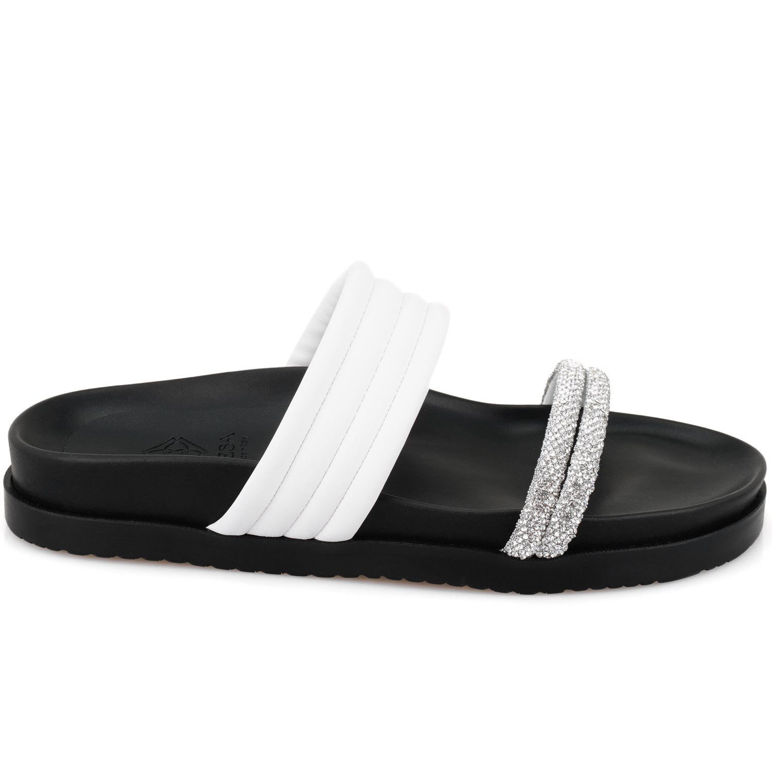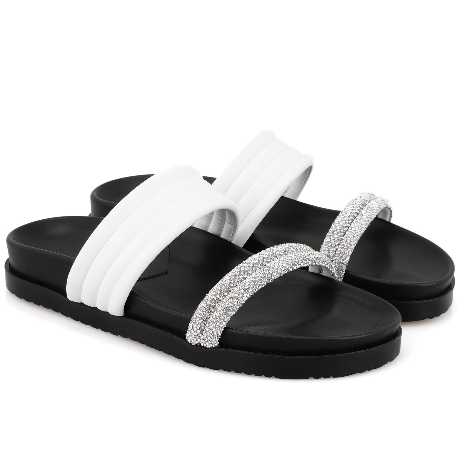 Deri iç tabanlı, parlak taş aksesuarlı, kapitone detaylı, pu + eva tabanlı, kadın terlik.