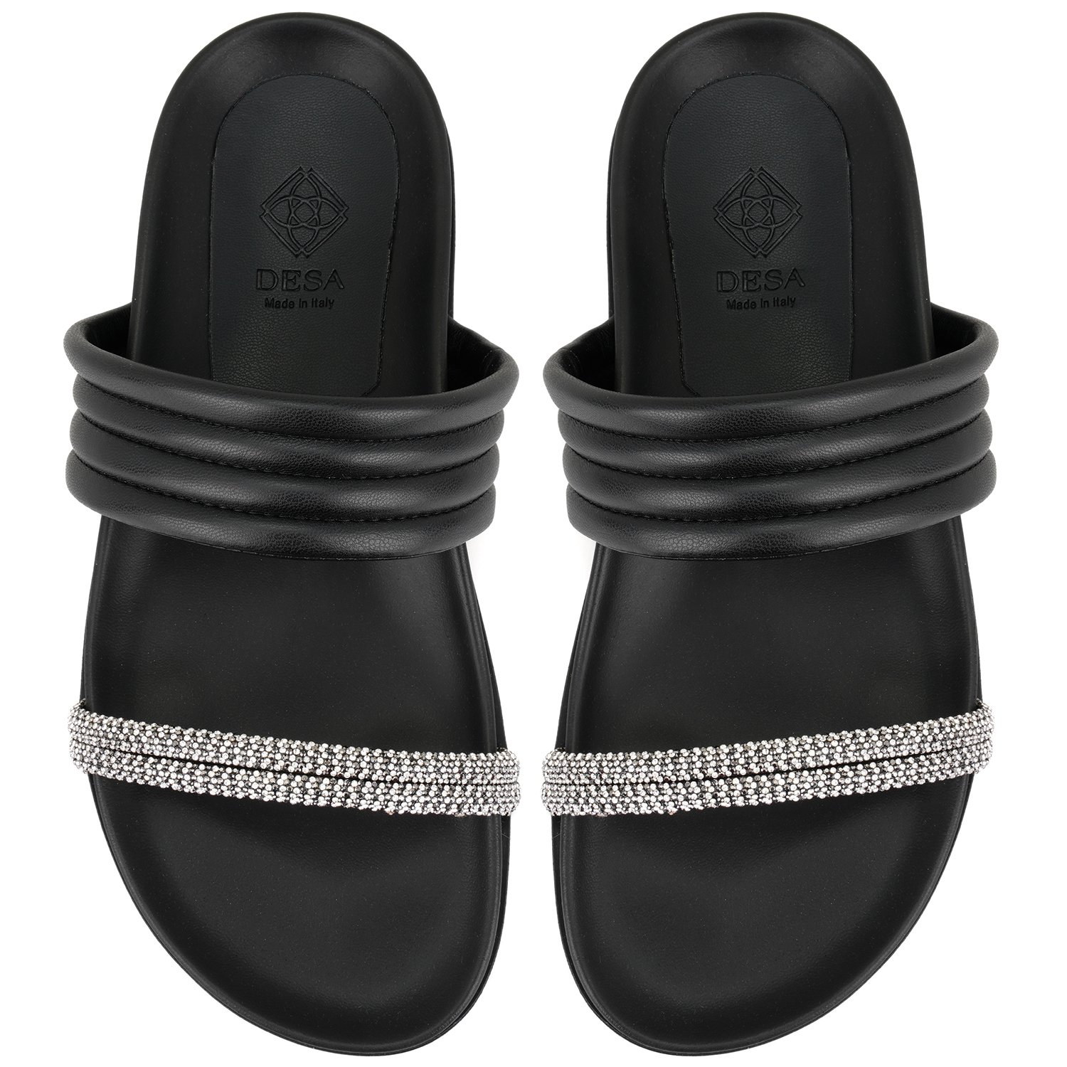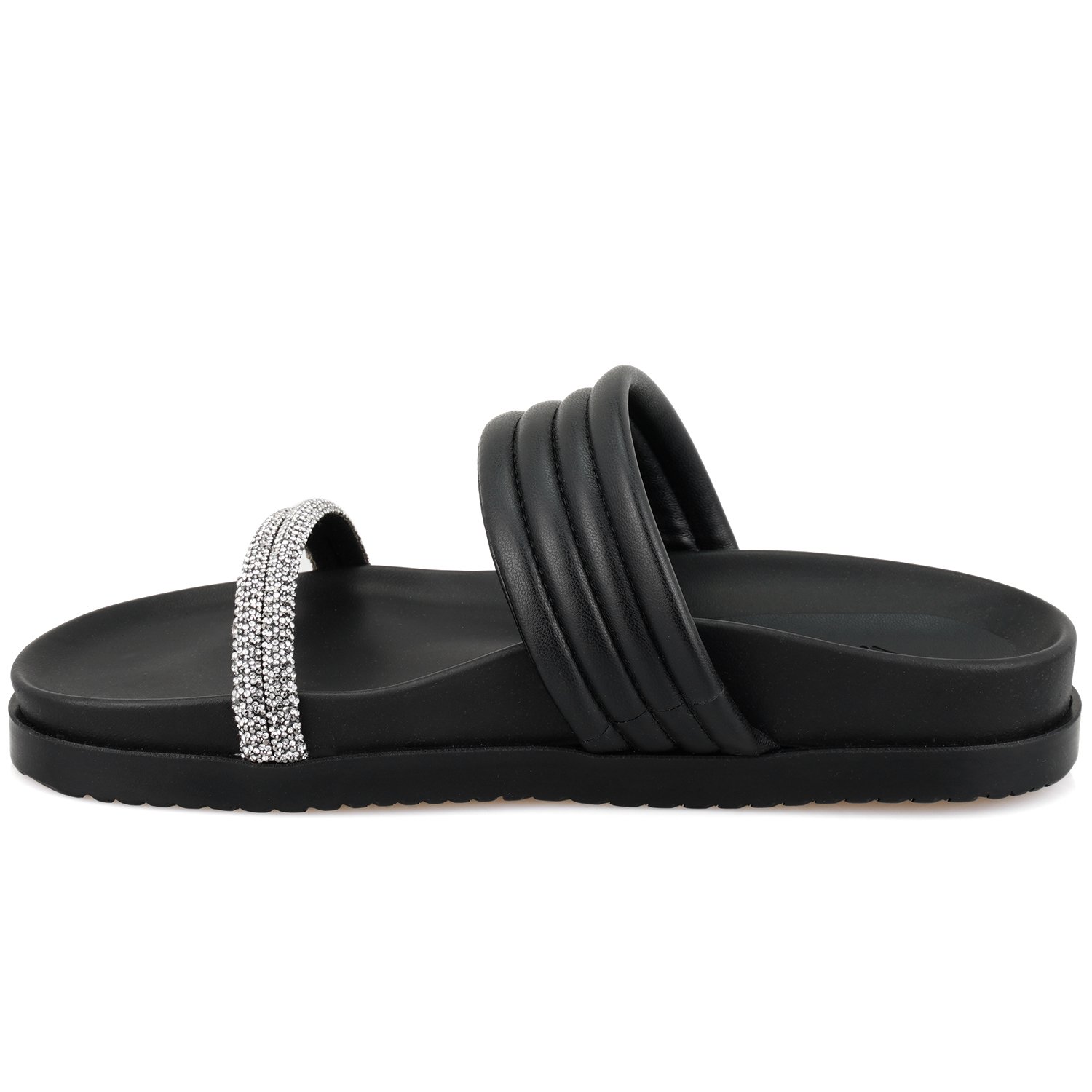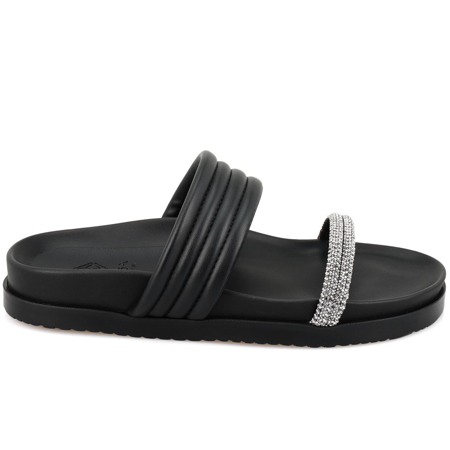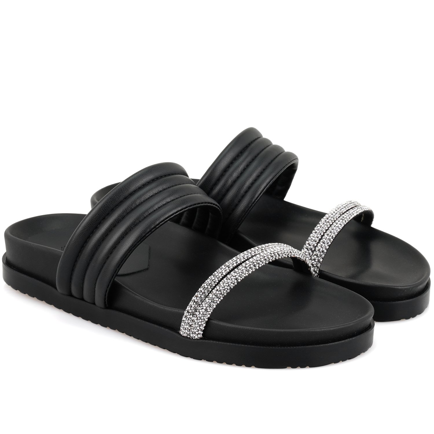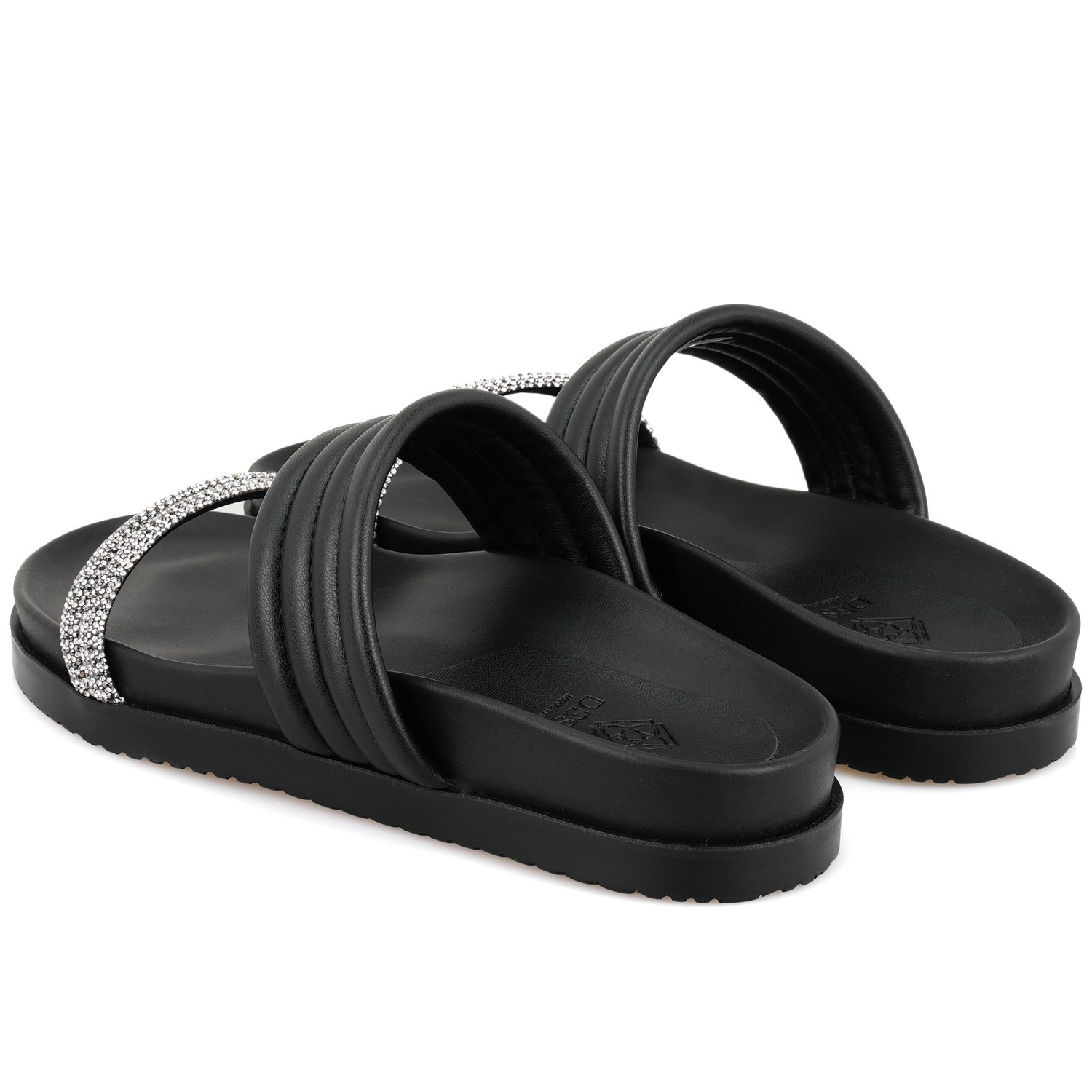 Deri iç tabanlı, parlak taş aksesuarlı, kapitone detaylı, pu + eva tabanlı, kadın terlik.