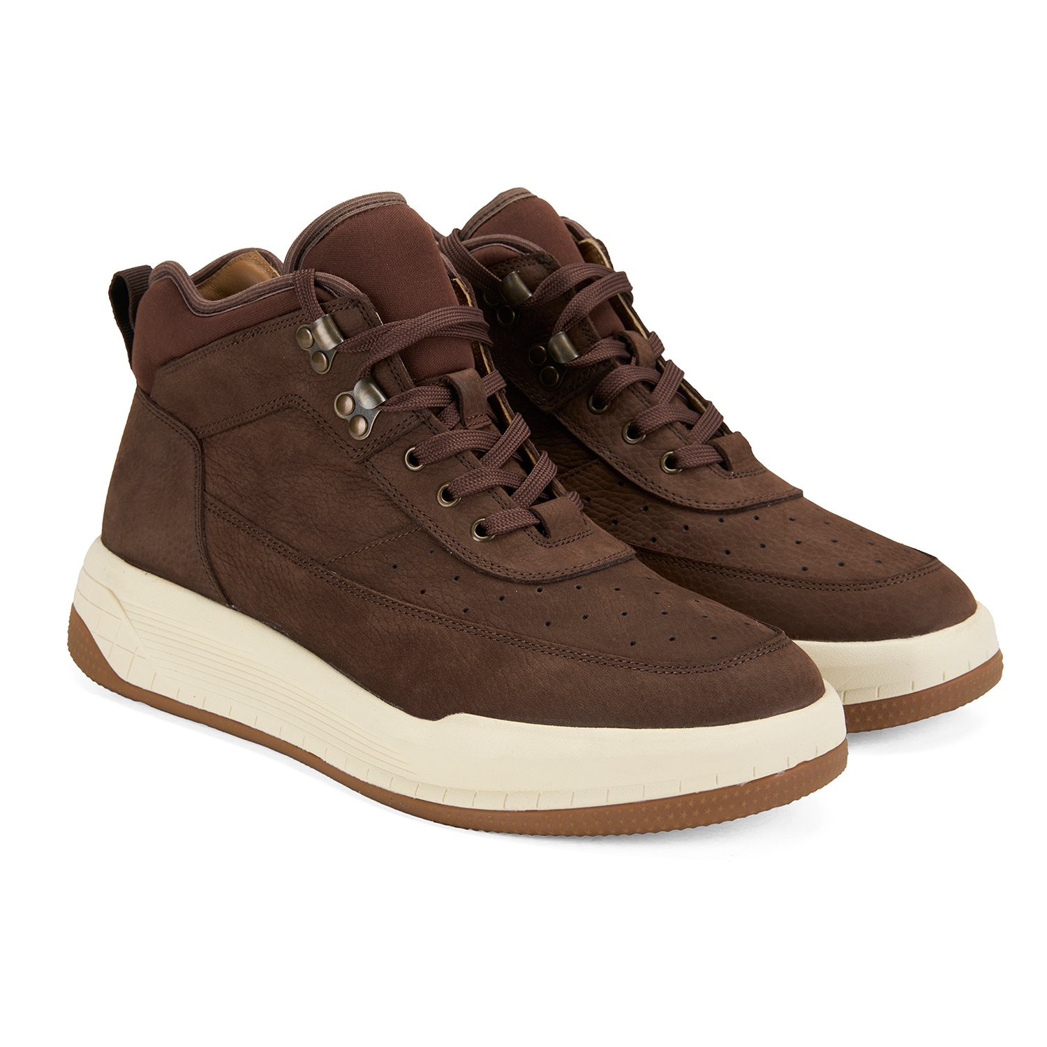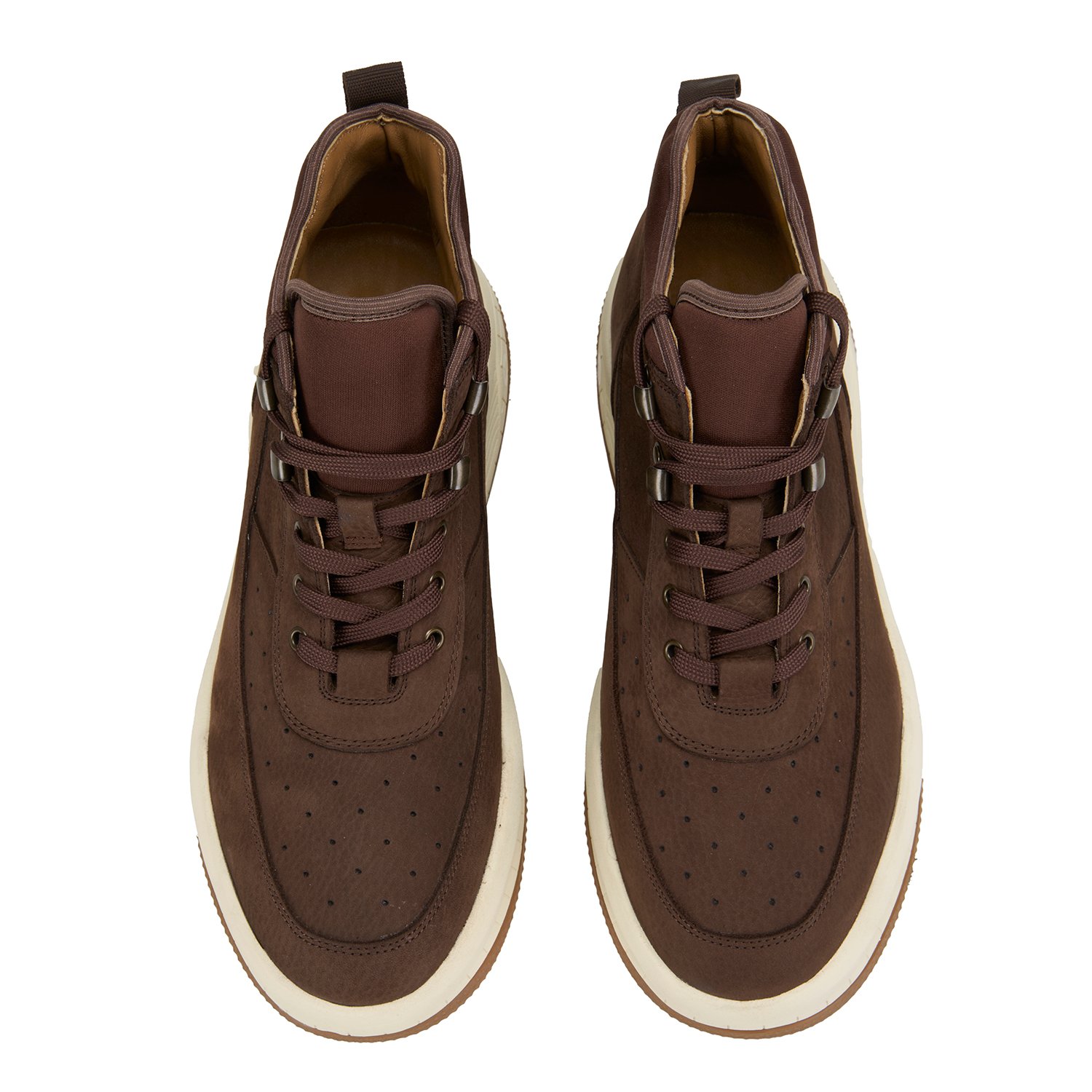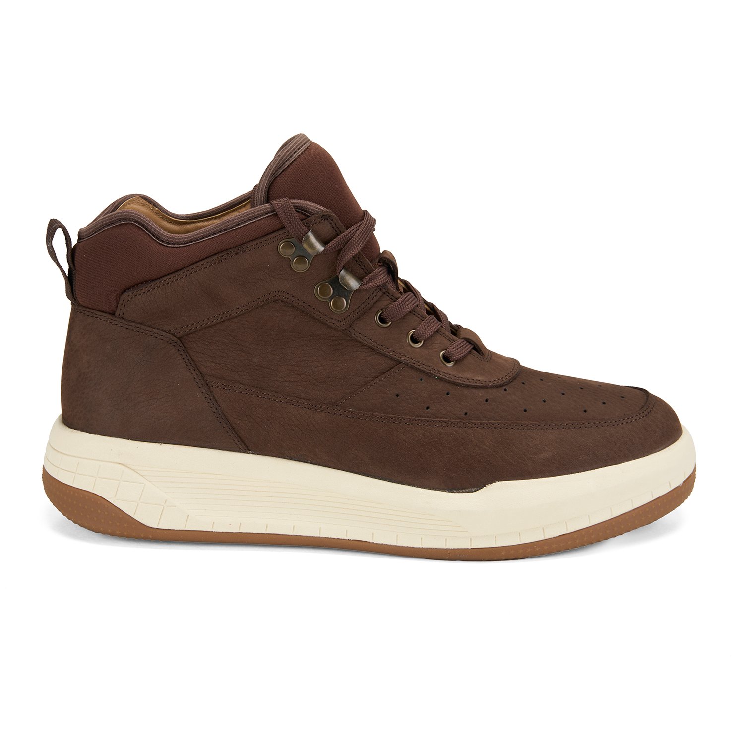 %100 nubuk deri, deri iç tabanlı, tekstil astarlı, kauçuk tabanlı, bağcıklı erkek bot.