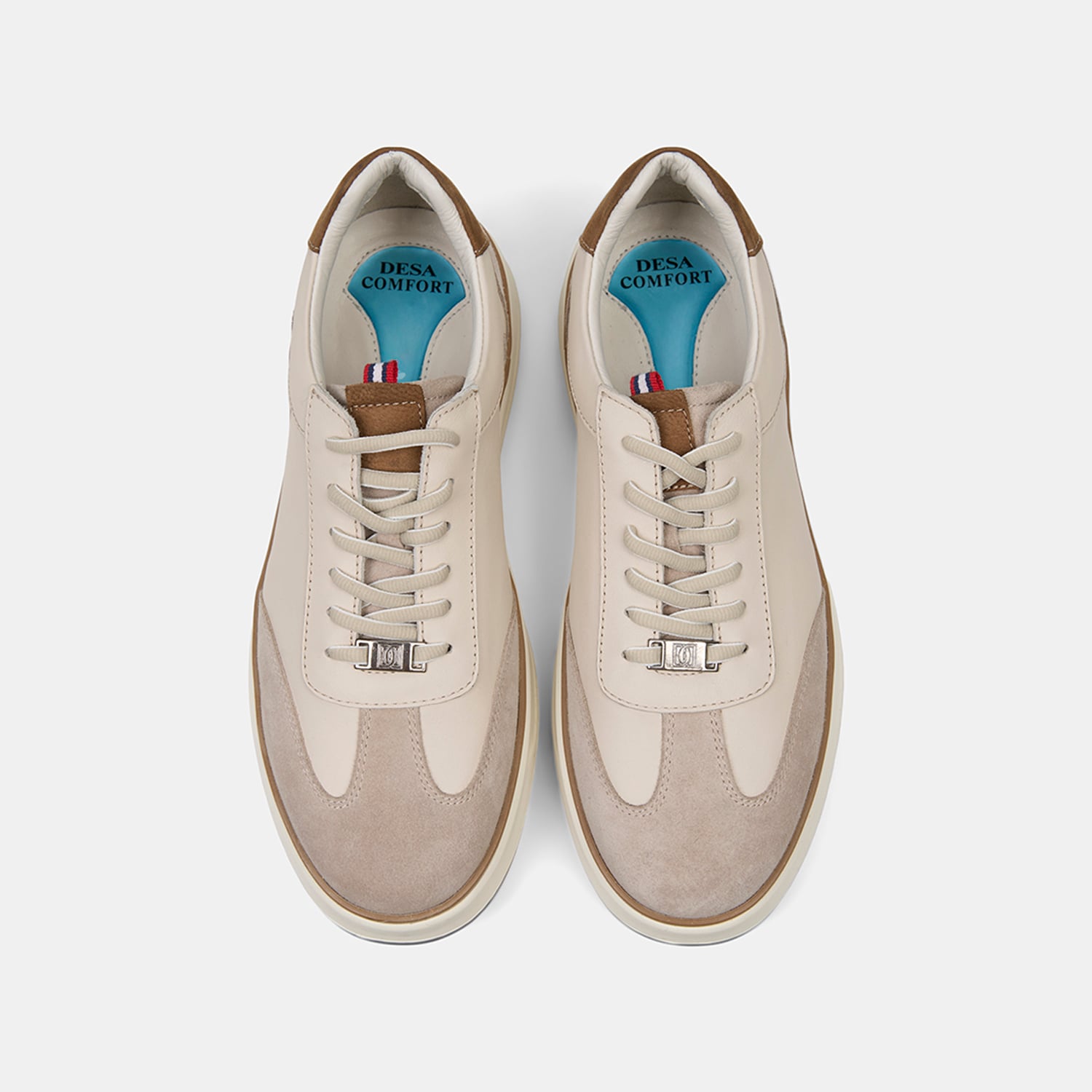 Erkek Bej DesaComfort Bağcıklı Deri Spor Ayakkabı