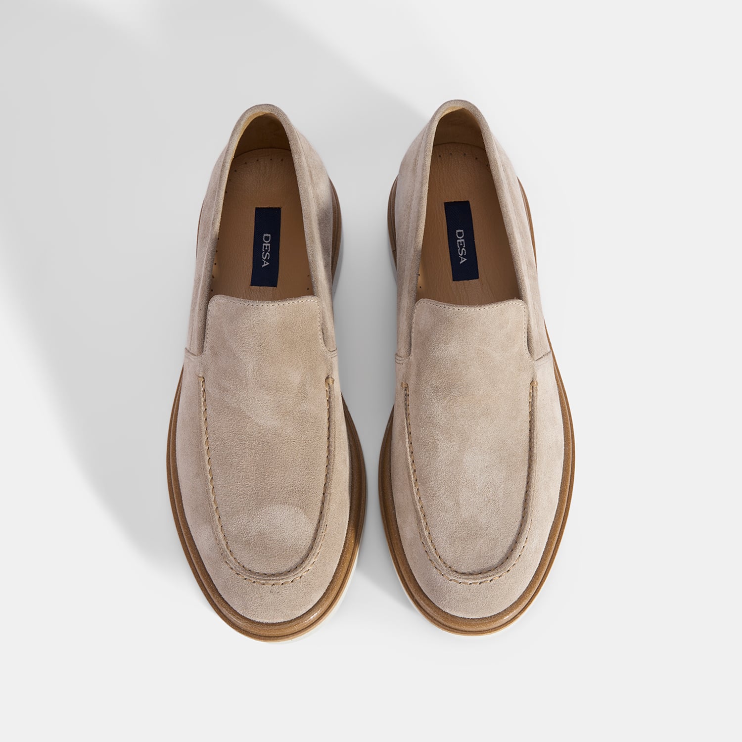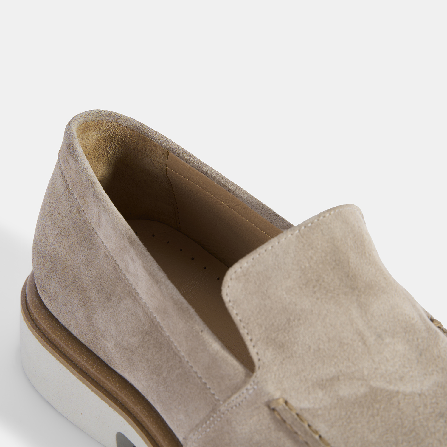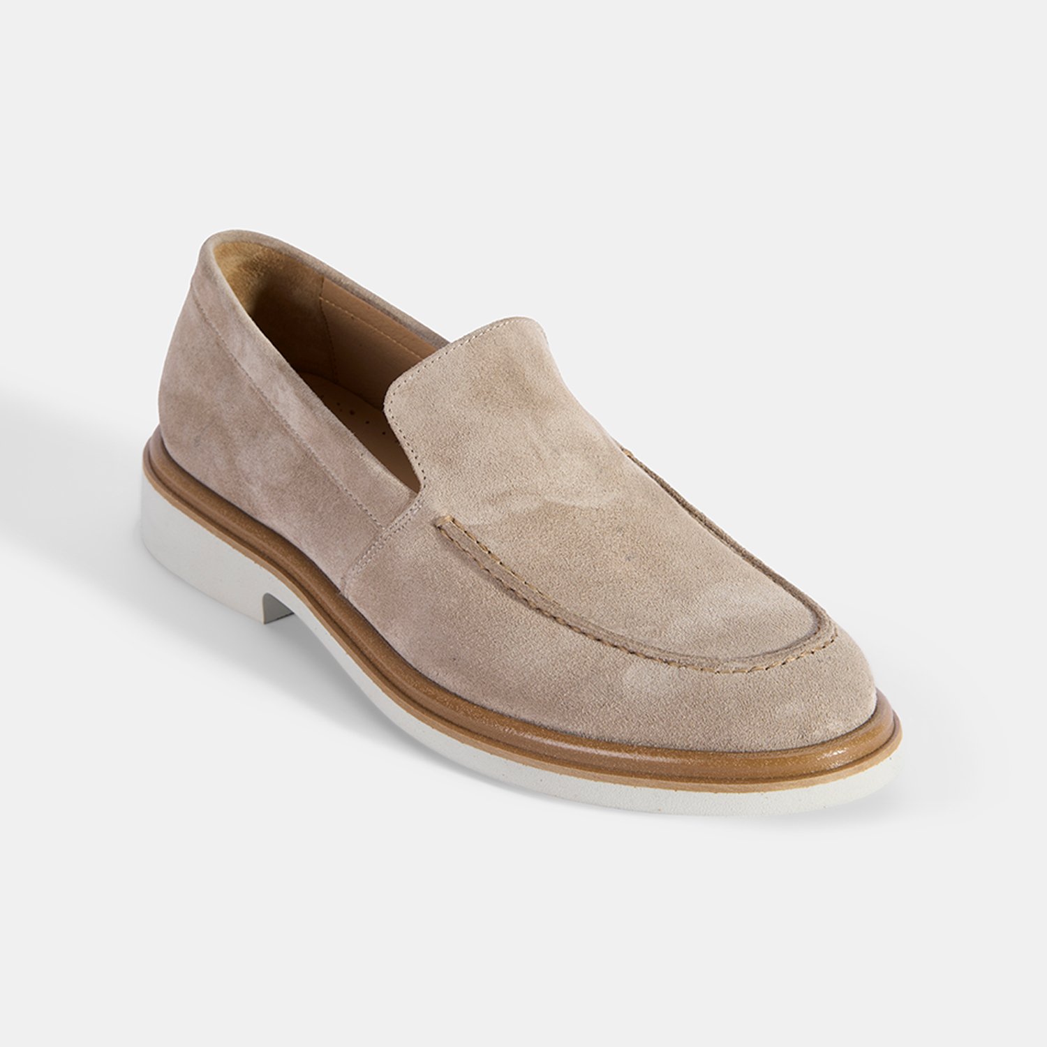Erkek Bej Klasik Beyaz Tabanlı Süet Loafer