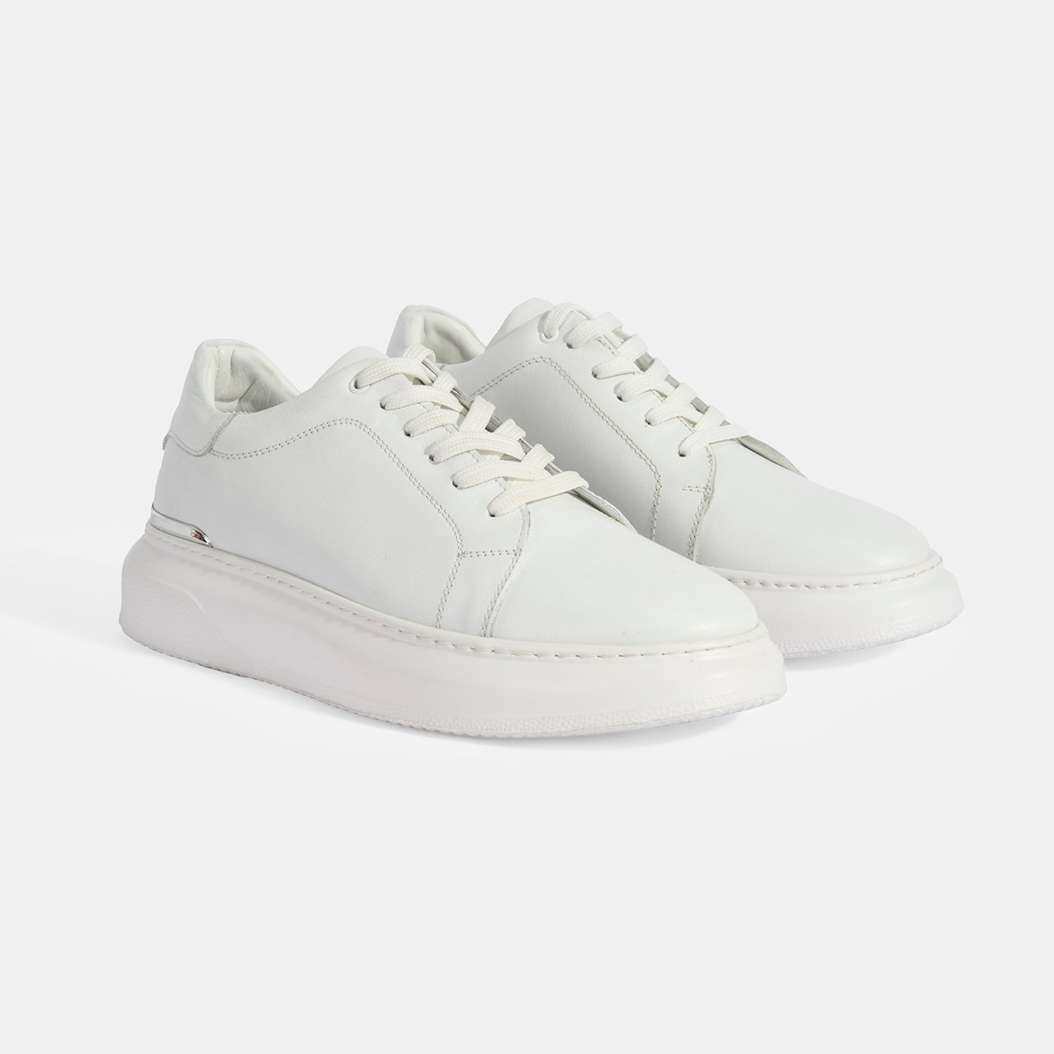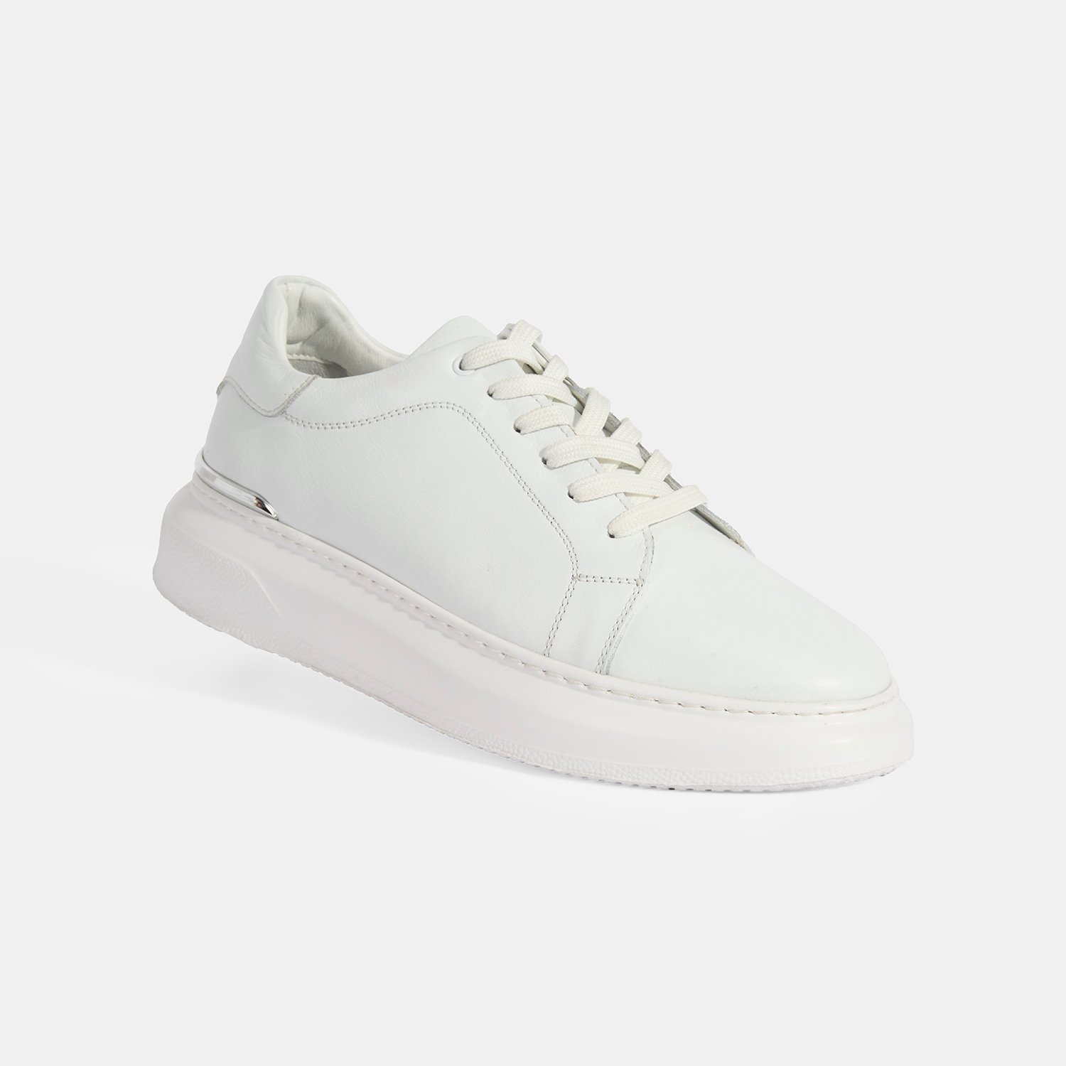 Erkek Beyaz Bağcıklı Deri Günlük Ayakkabı