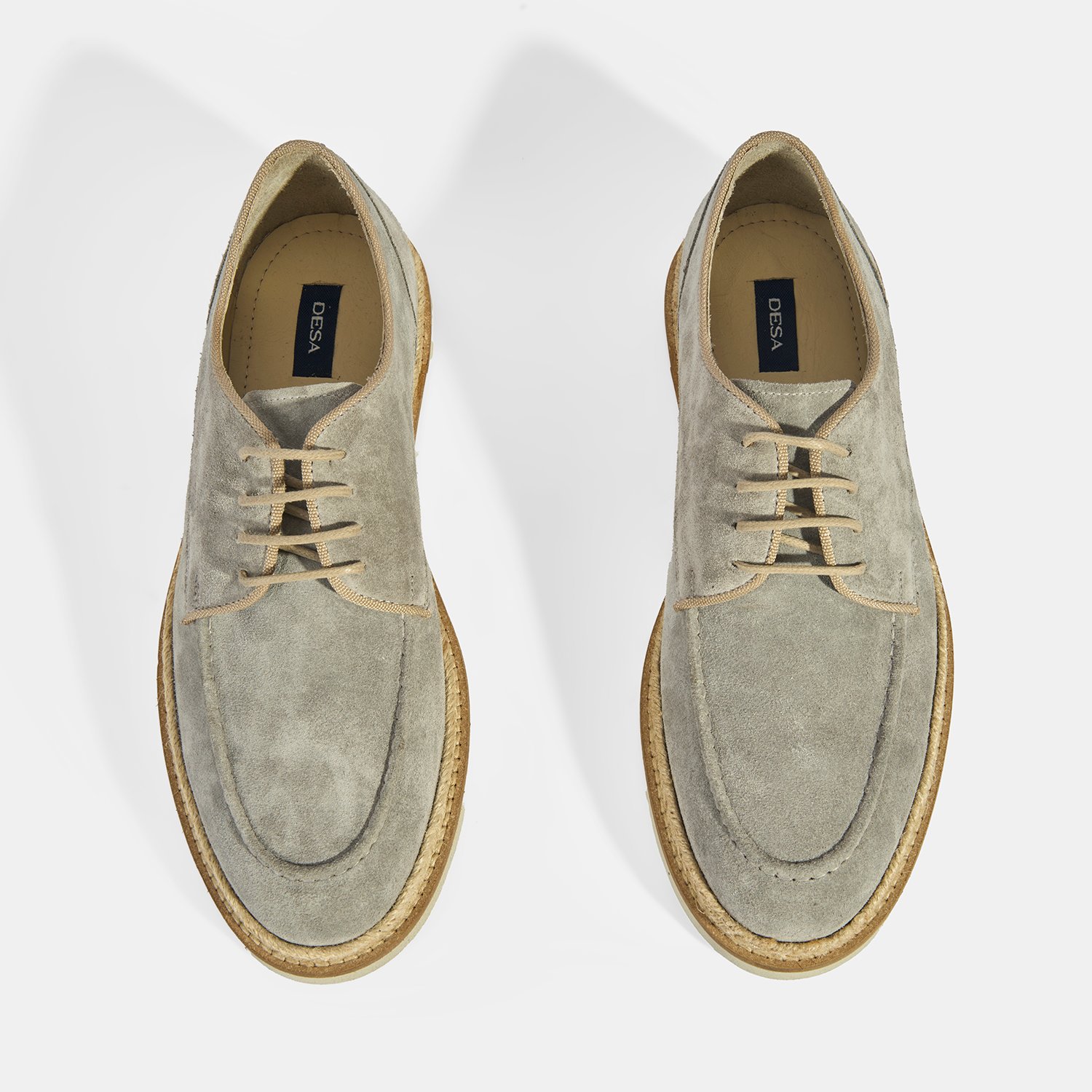 %100 süet deri, %100 deri astar ve mostra, eva tabanlı bağcıklı erkek ayakkabı.