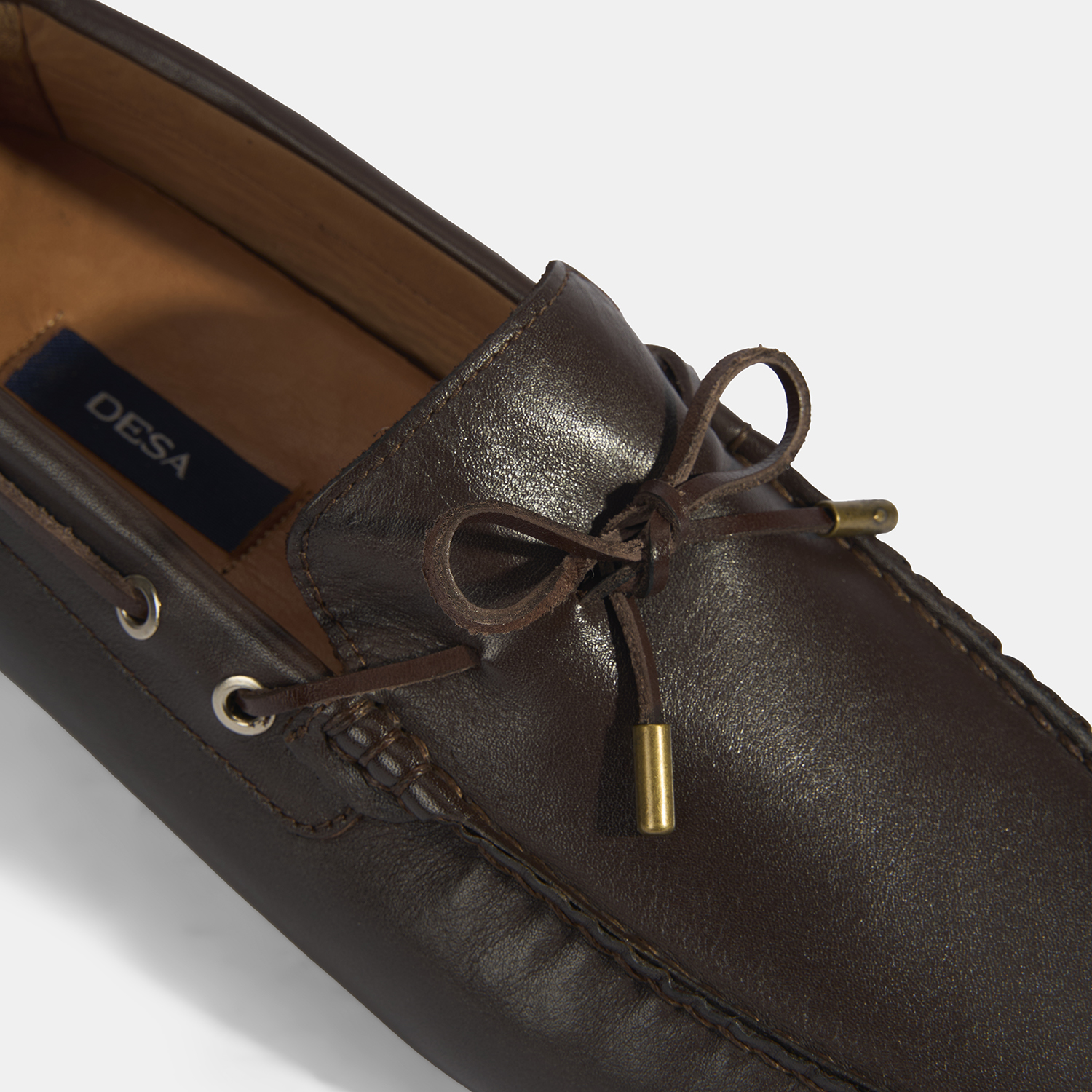 %100 deri, %100 deri astar ve mostra kauçuk tabanlı süs bağcıklı erkek loafer.