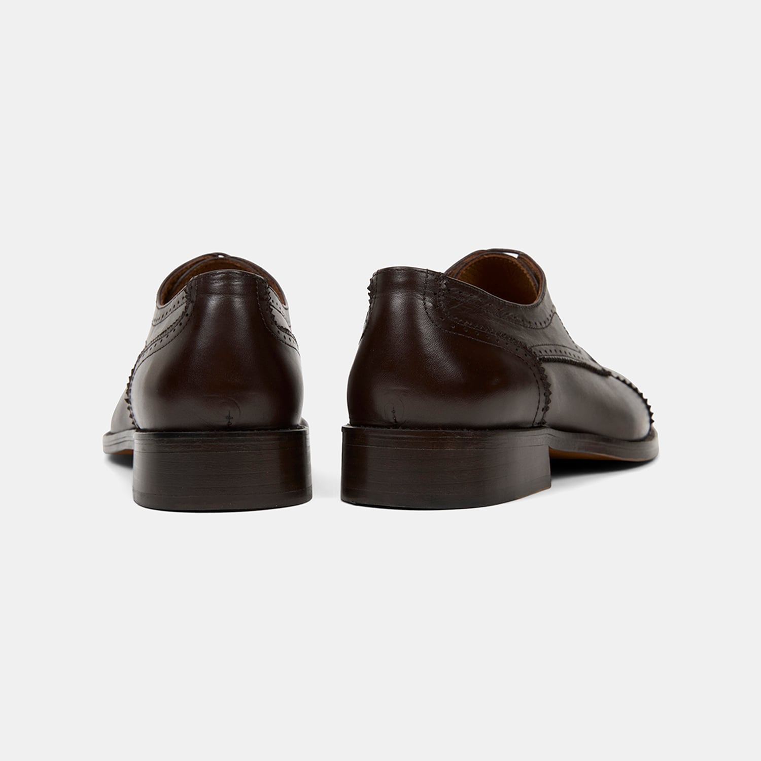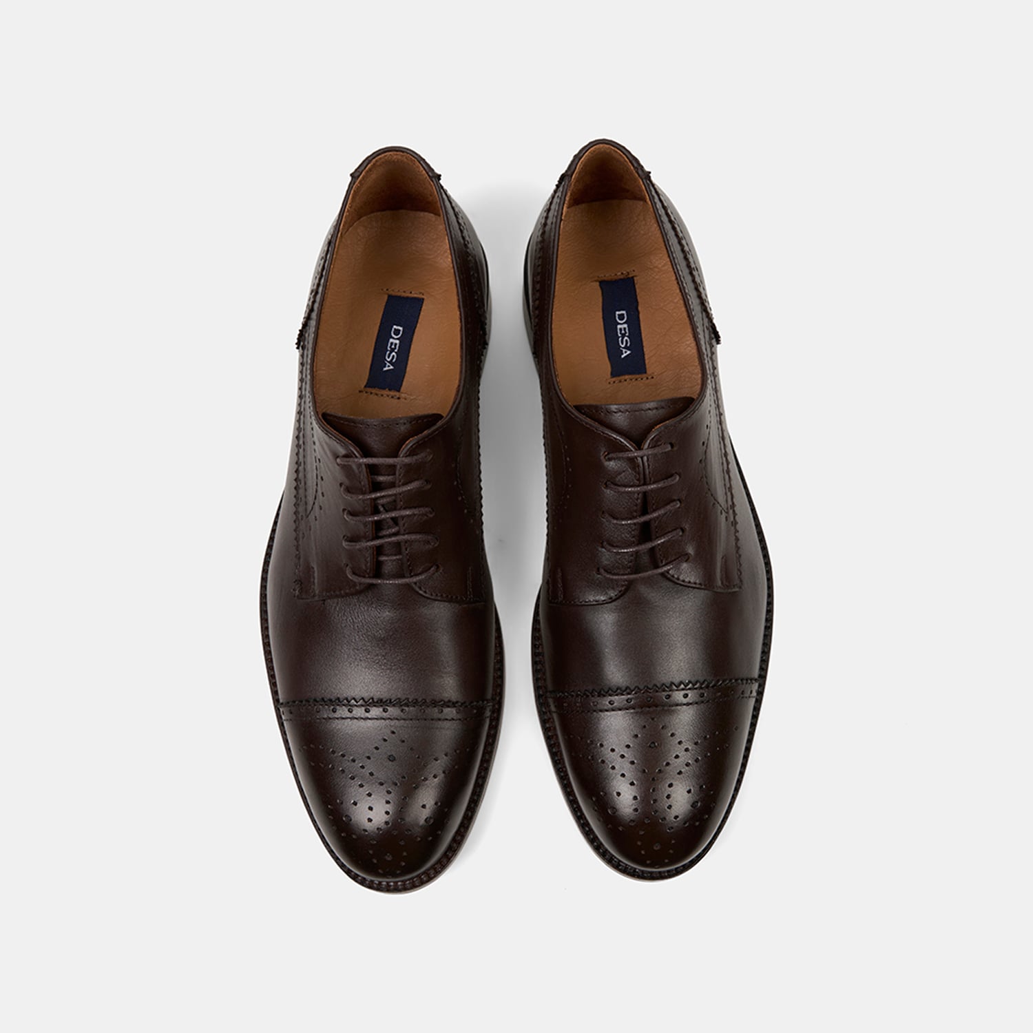 Erkek Kahve Bağcıklı Brogue Klasik Deri Ayakkabı