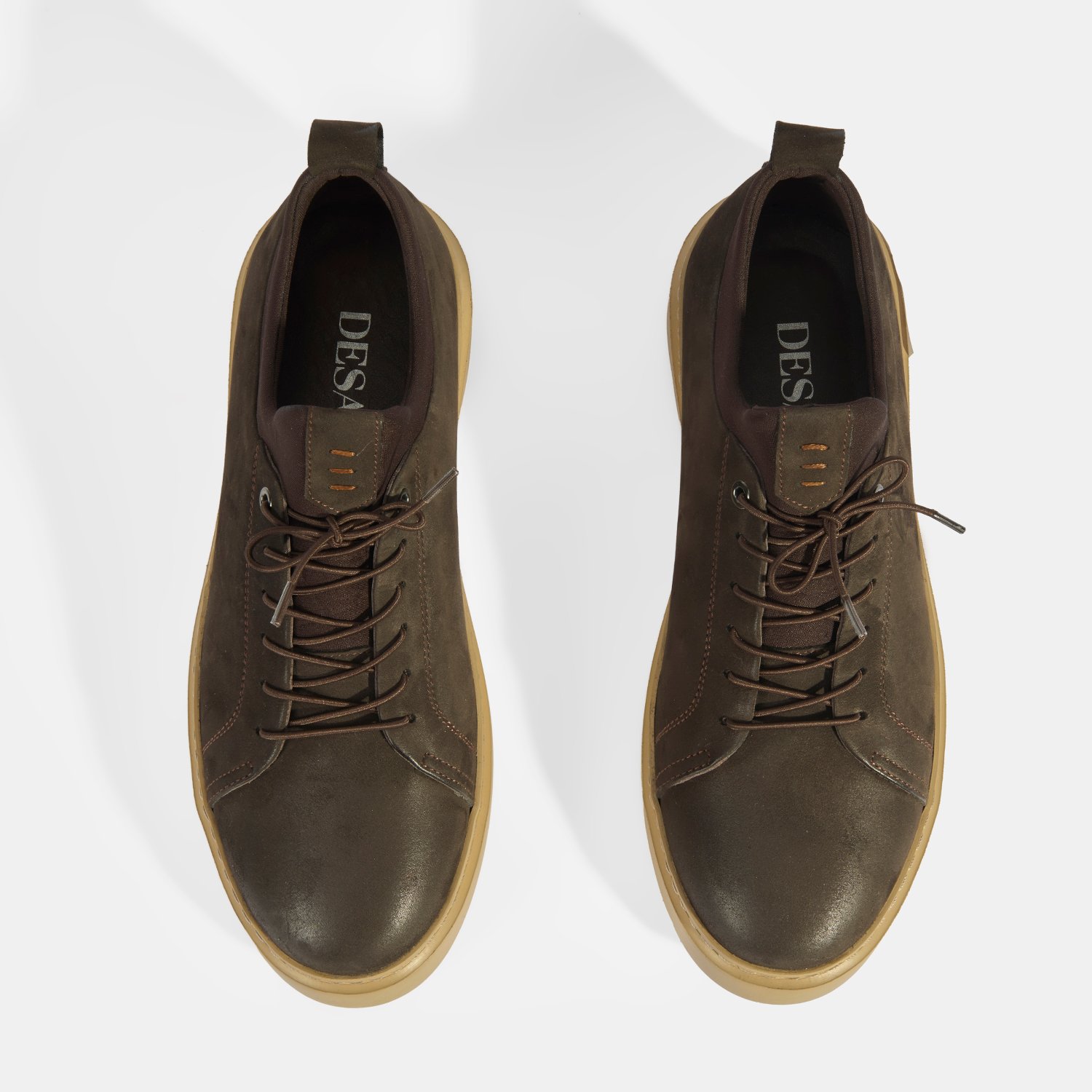 %100 nubuk deri, ağız kısmında scuba detaylı %100 deri mostra ve tekstil astarlı, eva tabanlı bağcıklı erkek ayakkabı.