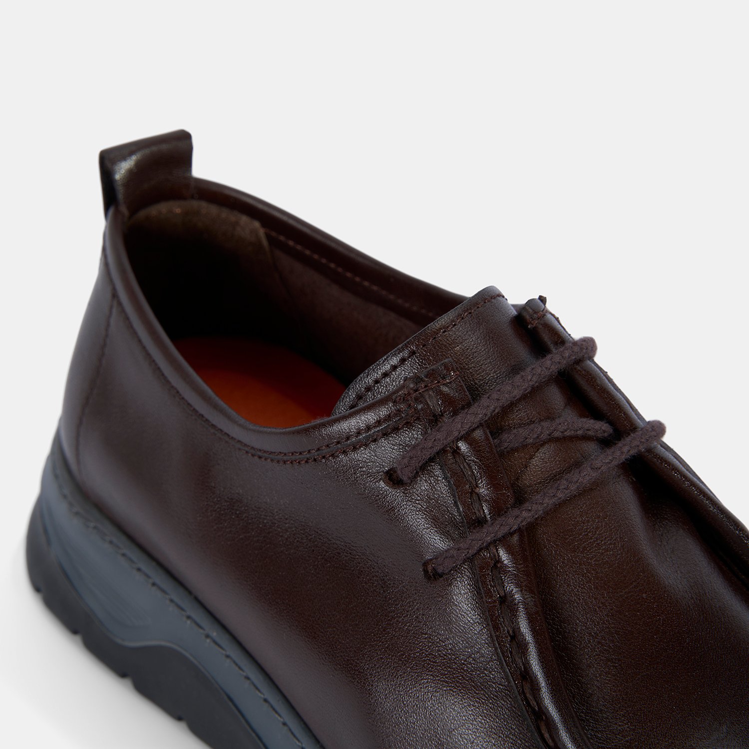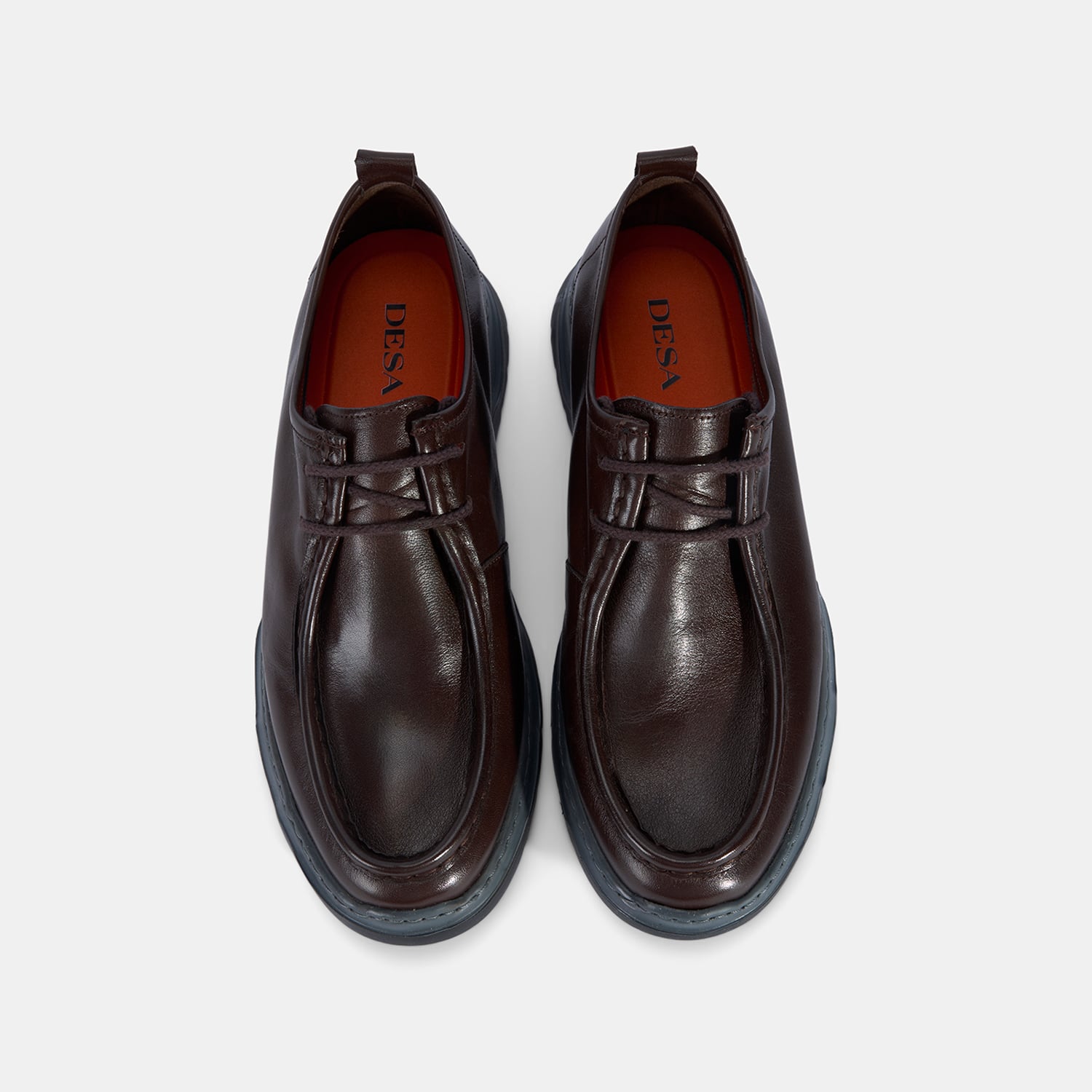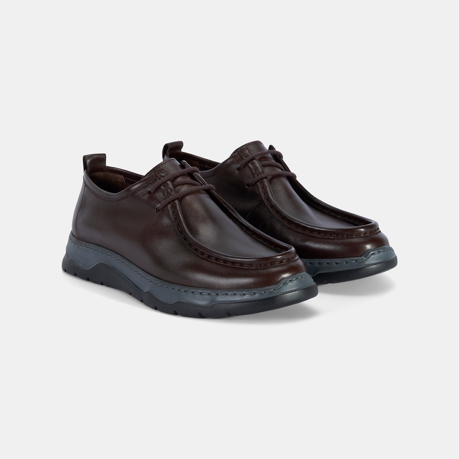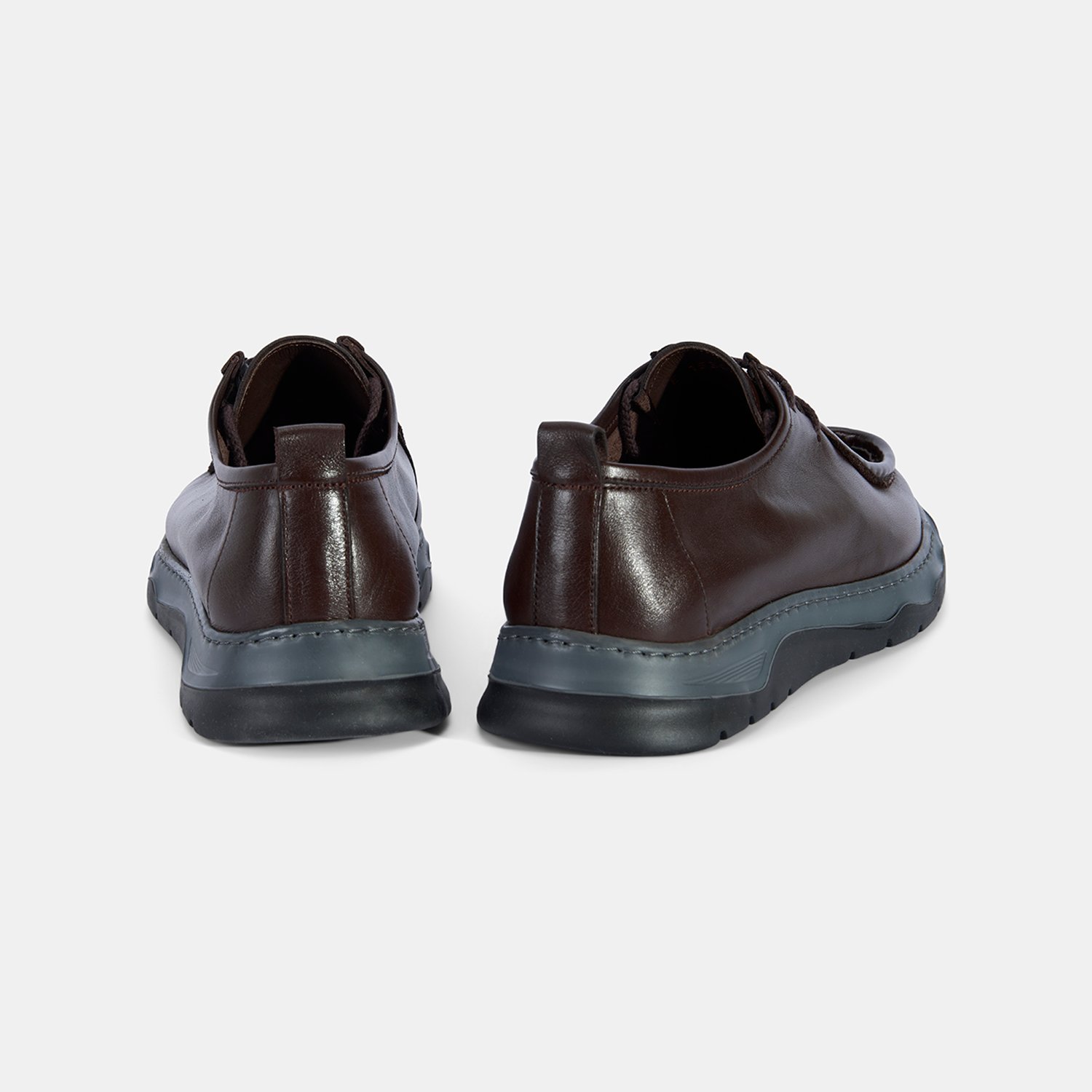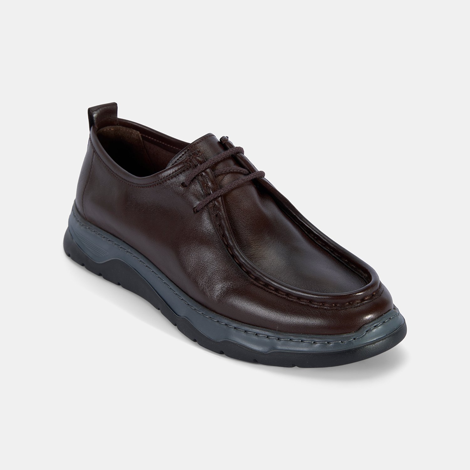 Erkek Kahve Bağcıklı Kalın Tabanlı Deri Günlük Ayakkabı