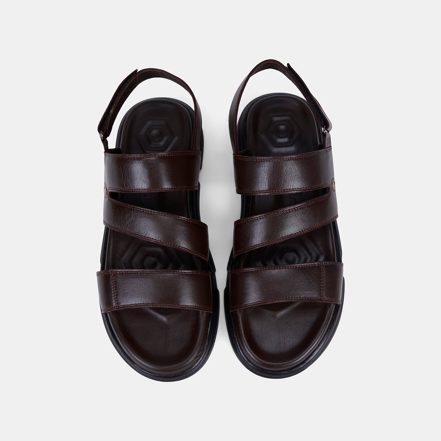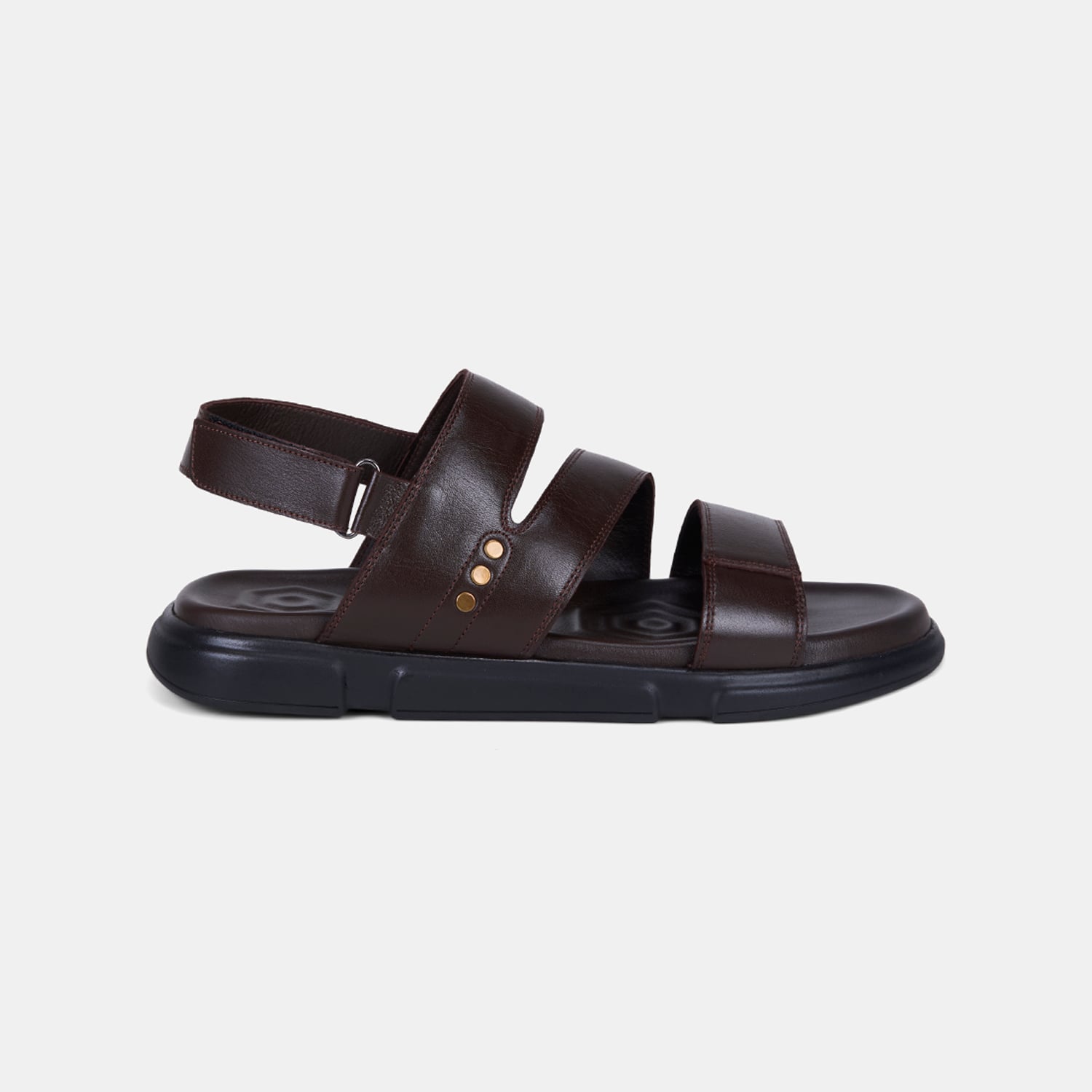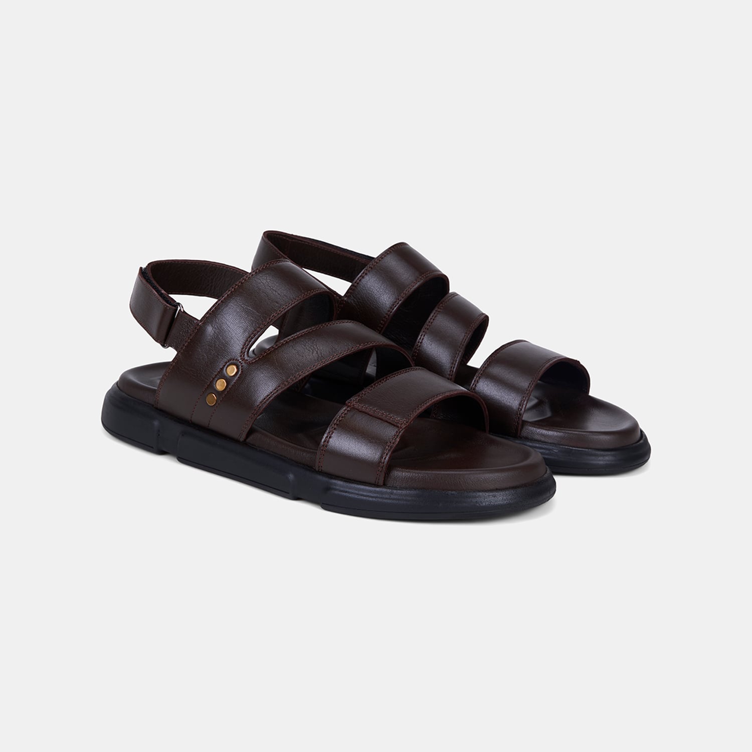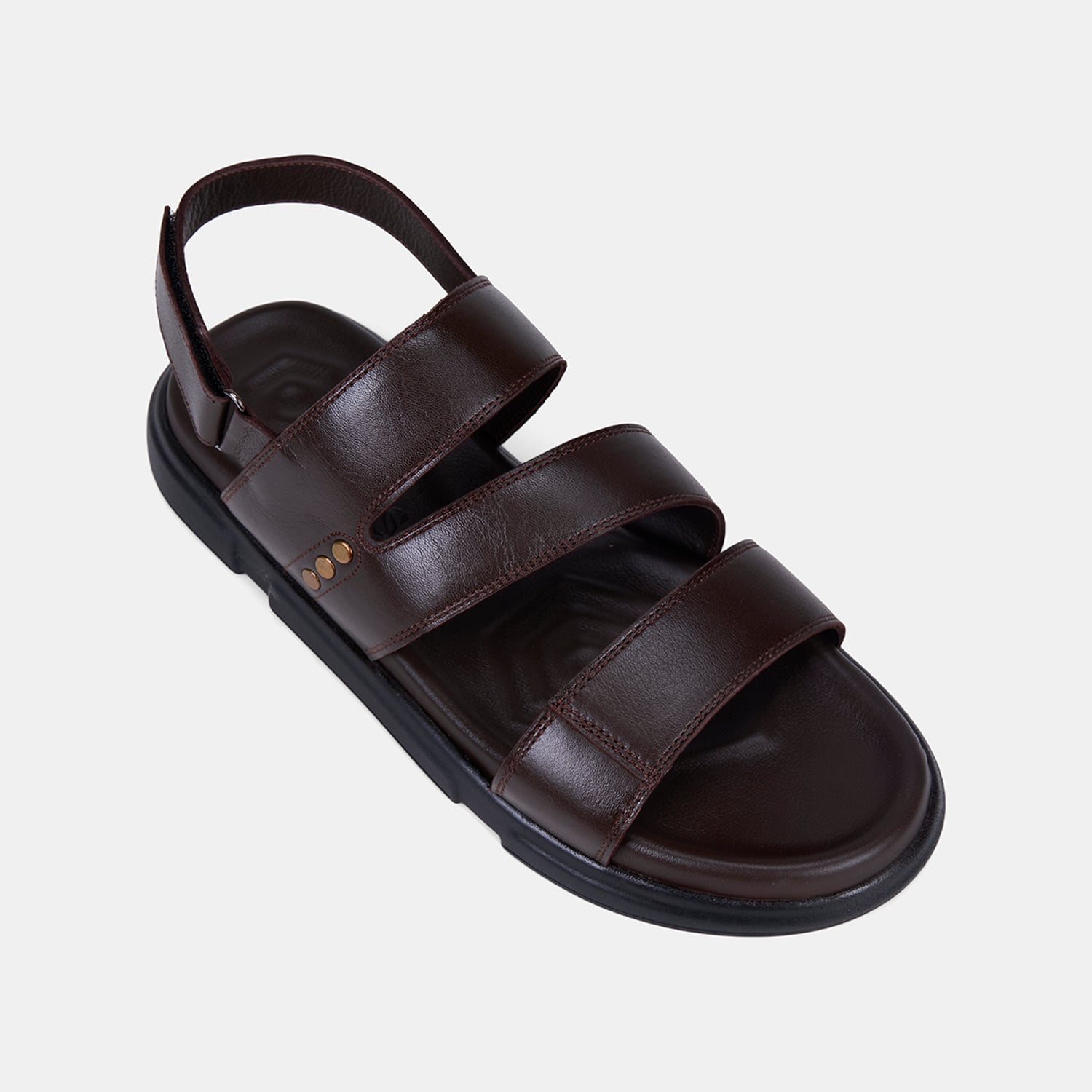 Erkek Kahve Cırt Cırtlı Zımba Detaylı Deri Sandalet