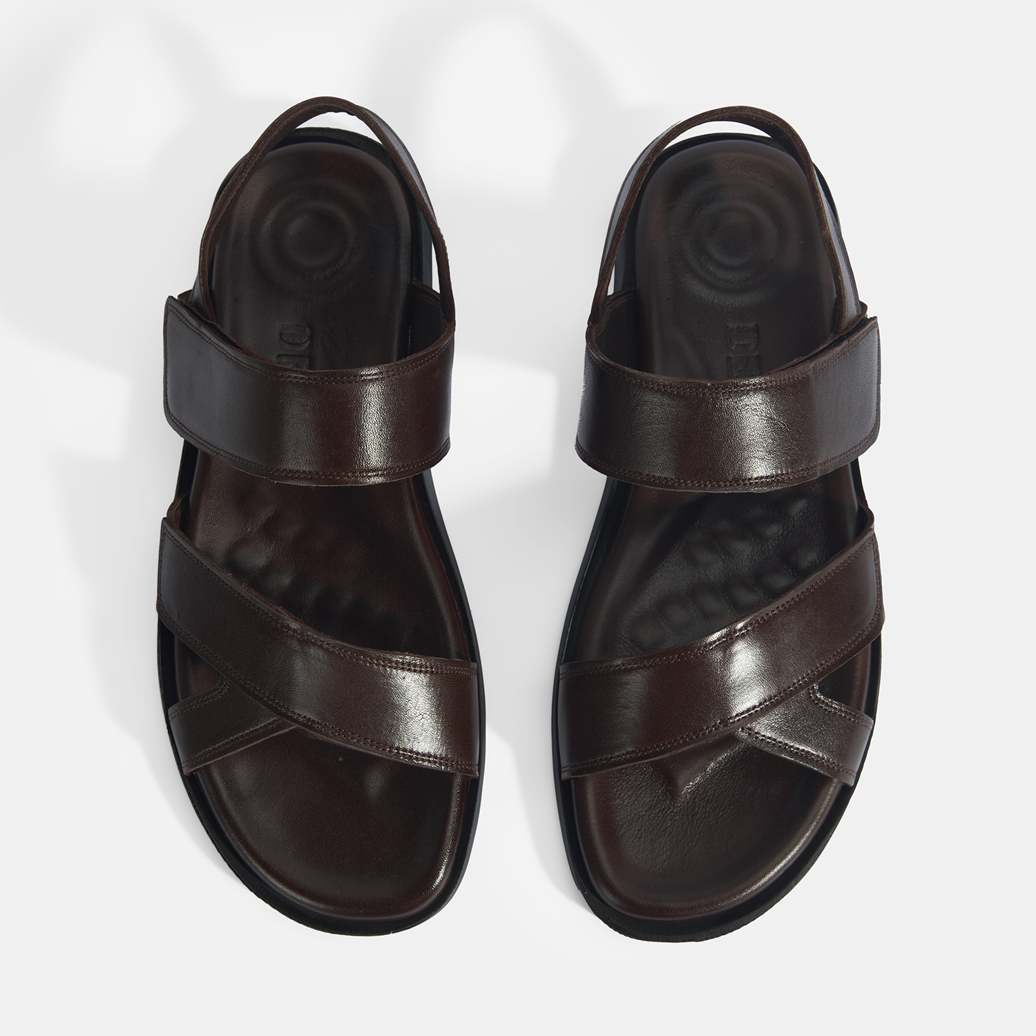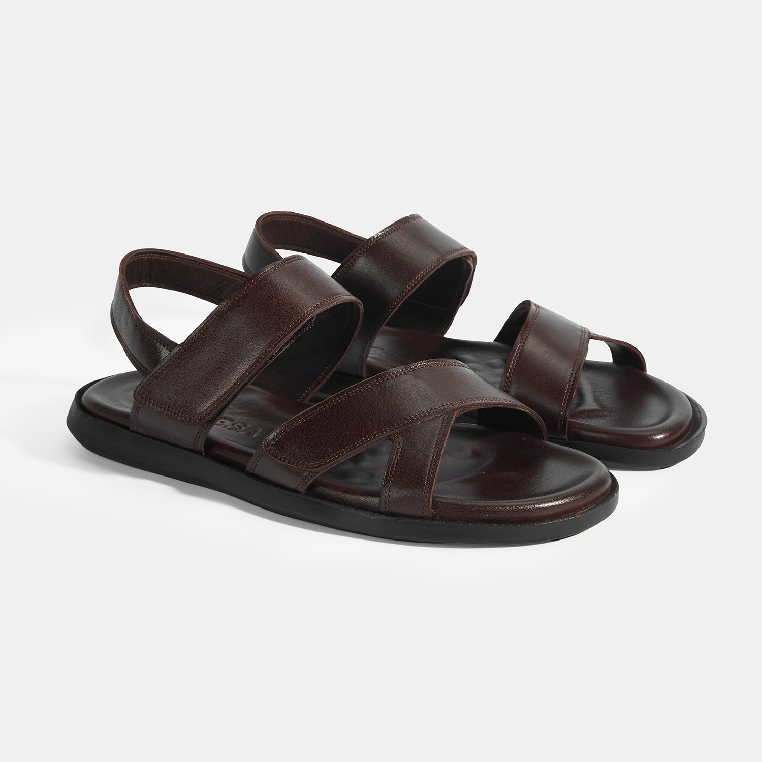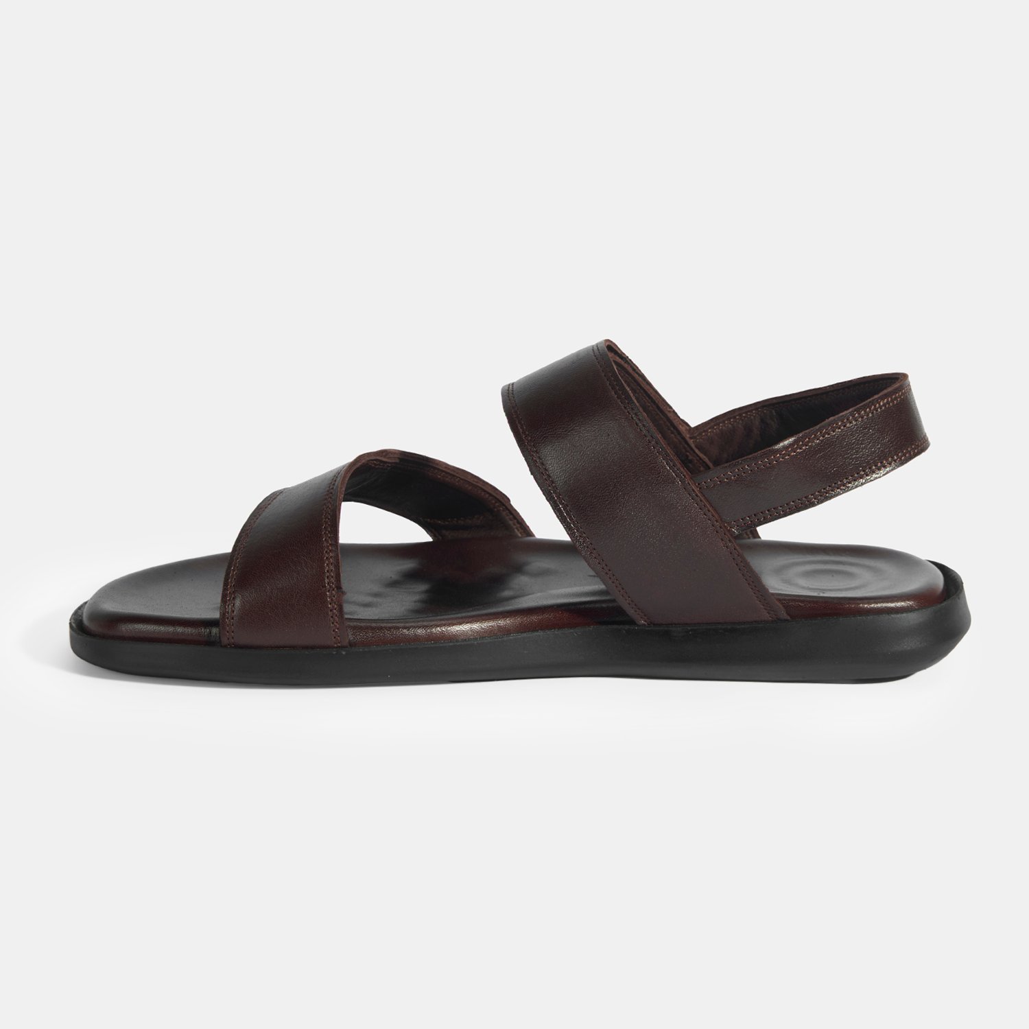 Erkek Kahve Cırt Detaylı Deri Sandalet