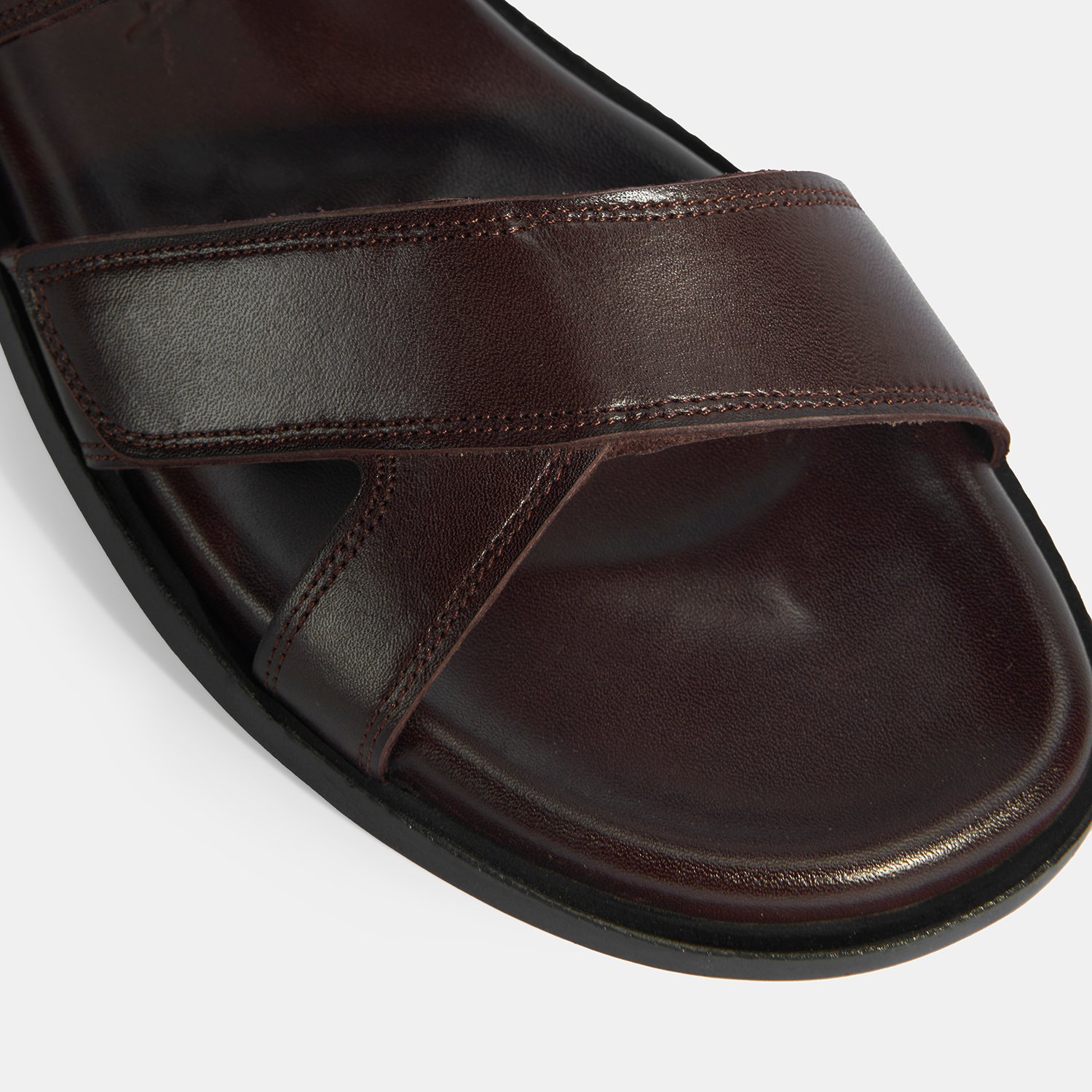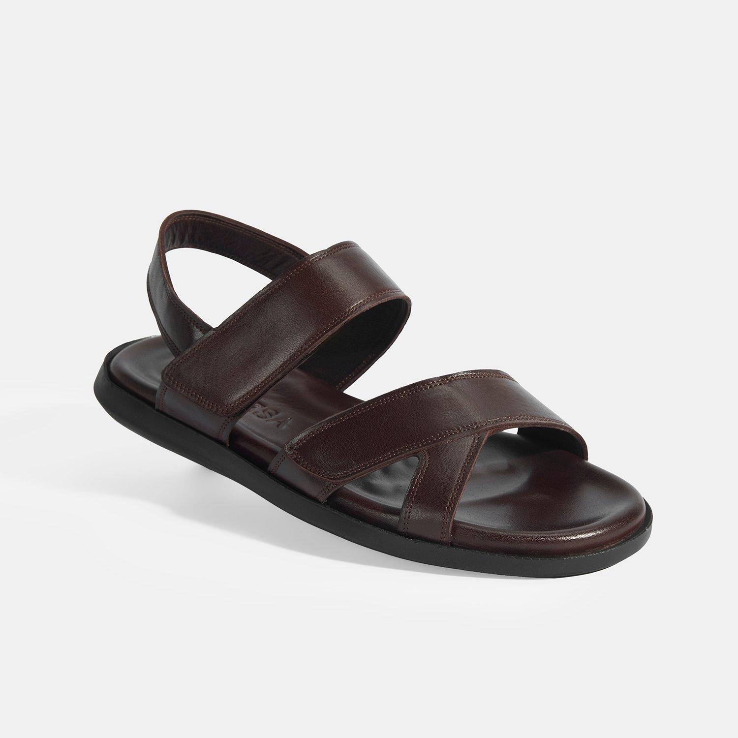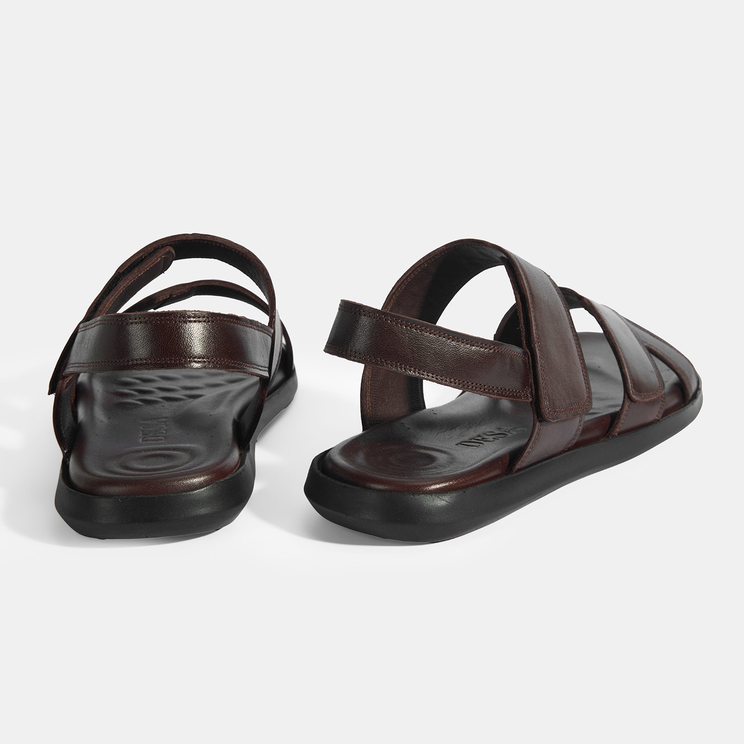 Erkek Kahve Cırt Detaylı Deri Sandalet